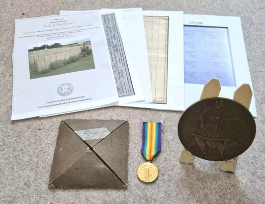 SOLD! WW1 Death Plaque & Medal Group to Author Edward Albert Redman, 156th Brigade, Royal Field Artillery