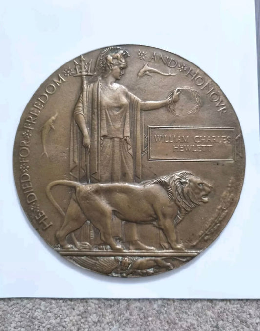SOLD! WW1 Death Plaque to Lance Corporal William Charles Hewlett, 1st Middlesex Regiment