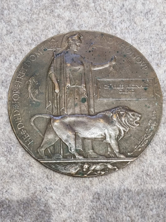 SOLD! WW1 Death Plaque to Shipwright Charles Clemo, Royal Navy- KIA aboard HMS Prize