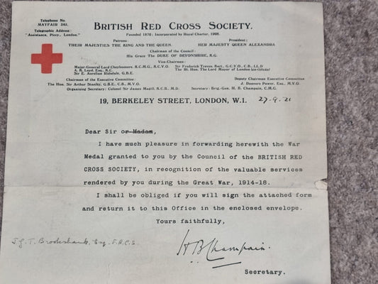 SOLD! WW1 British Red Cross Society Medal and Certificate for War Service 1914-18