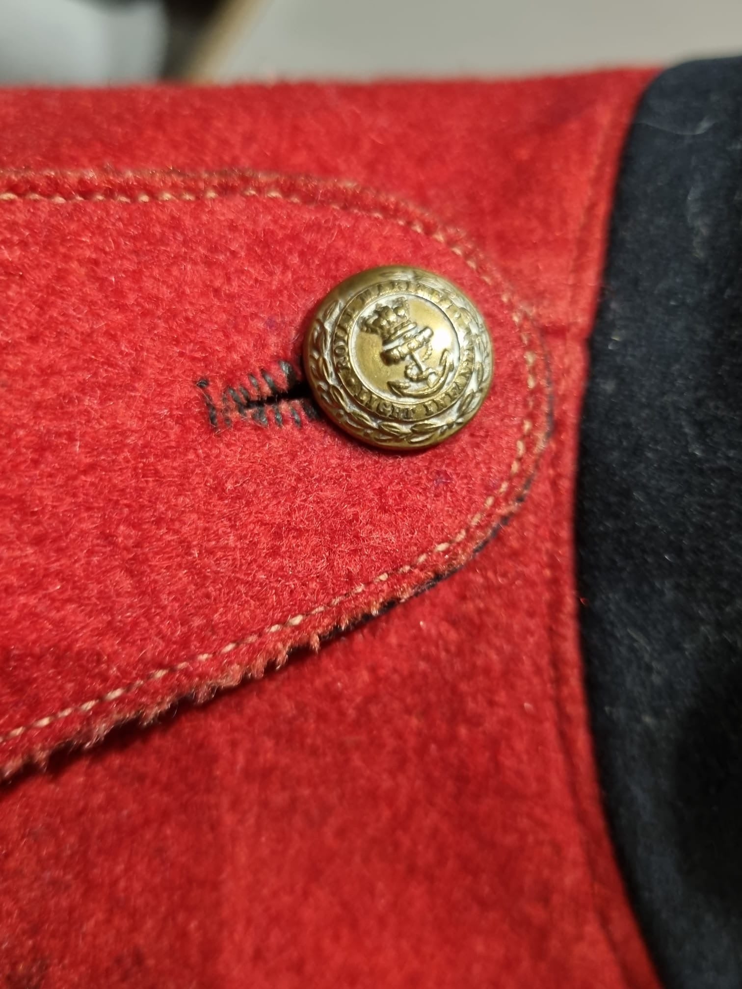 Simple shoulder epaulets fastened with Victorian Royal Marines buttons, otherwise with Cinque Ports buttons.