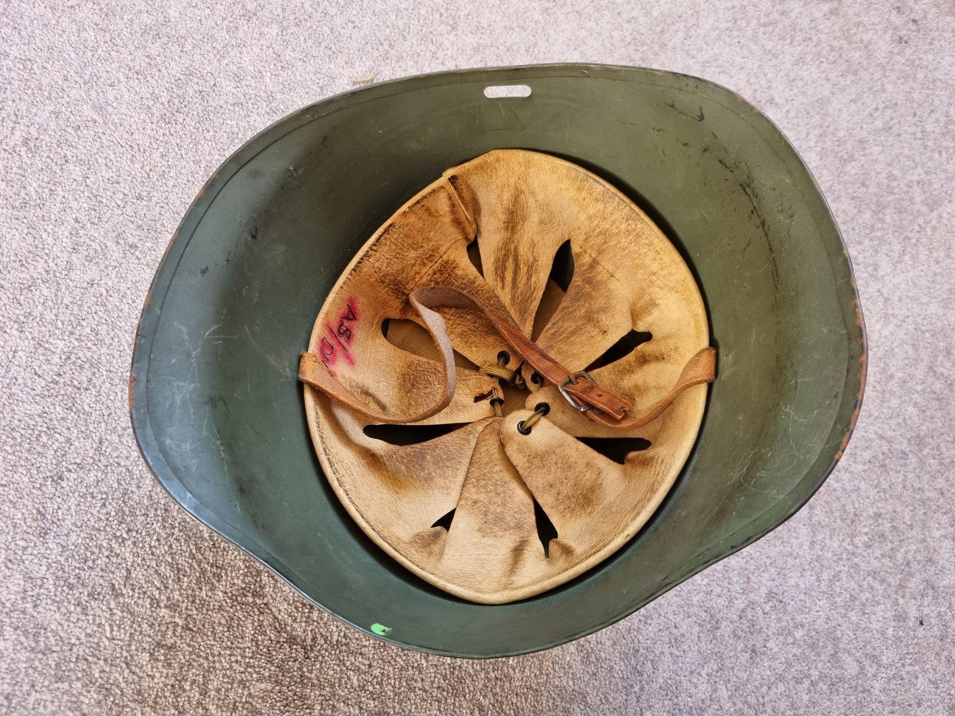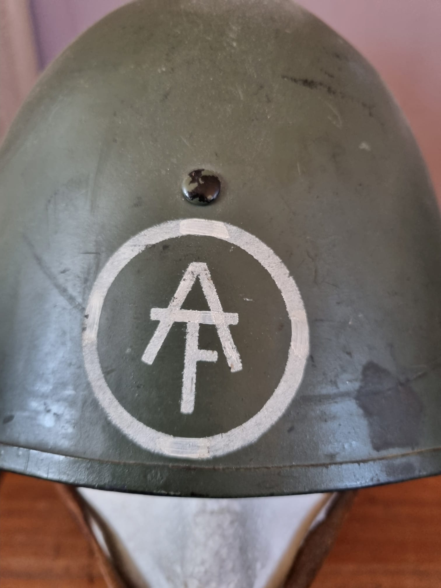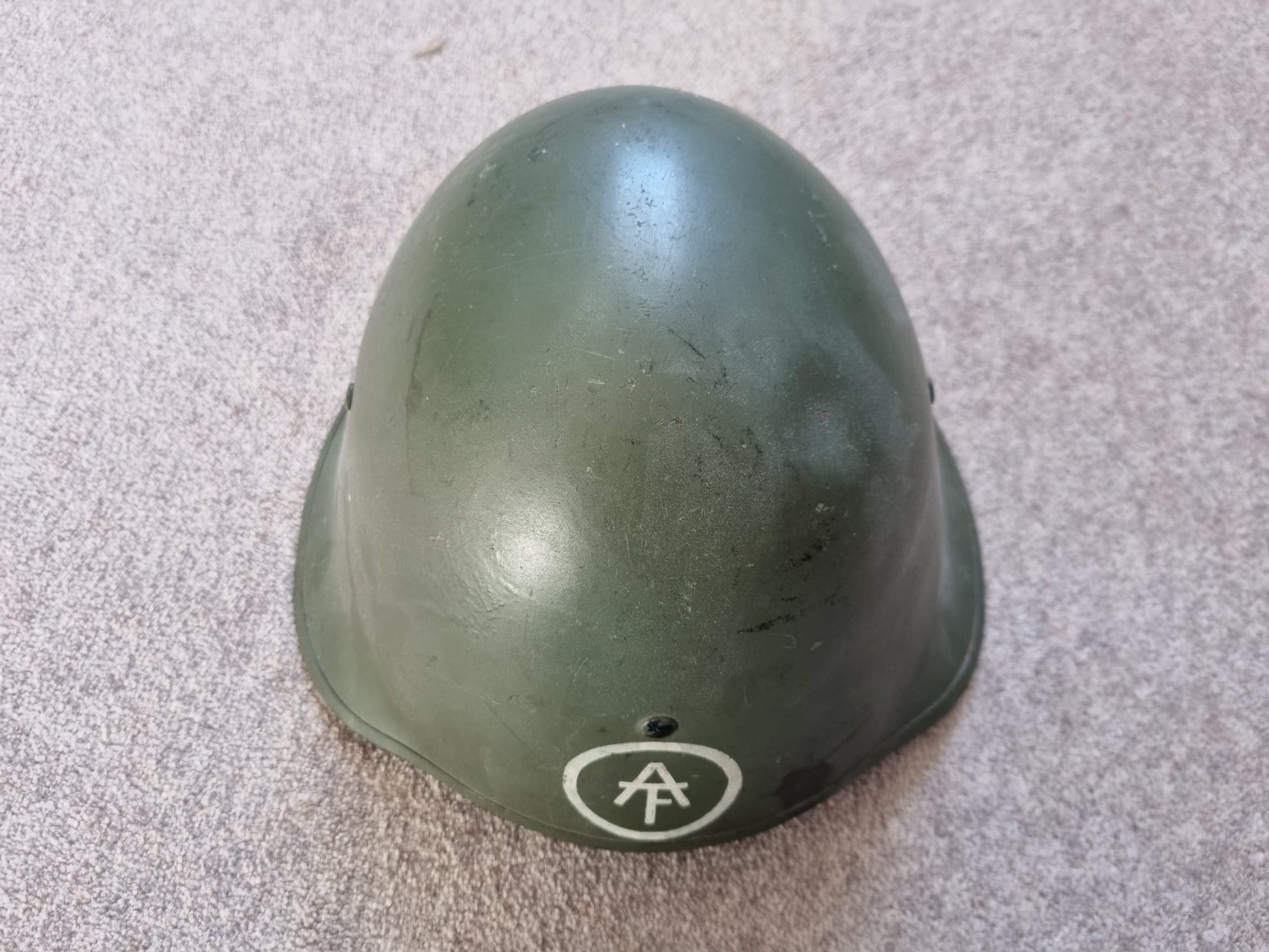 An unusual WW2 Danish M23/41 Civil Defence Academy "AFT" helmet.