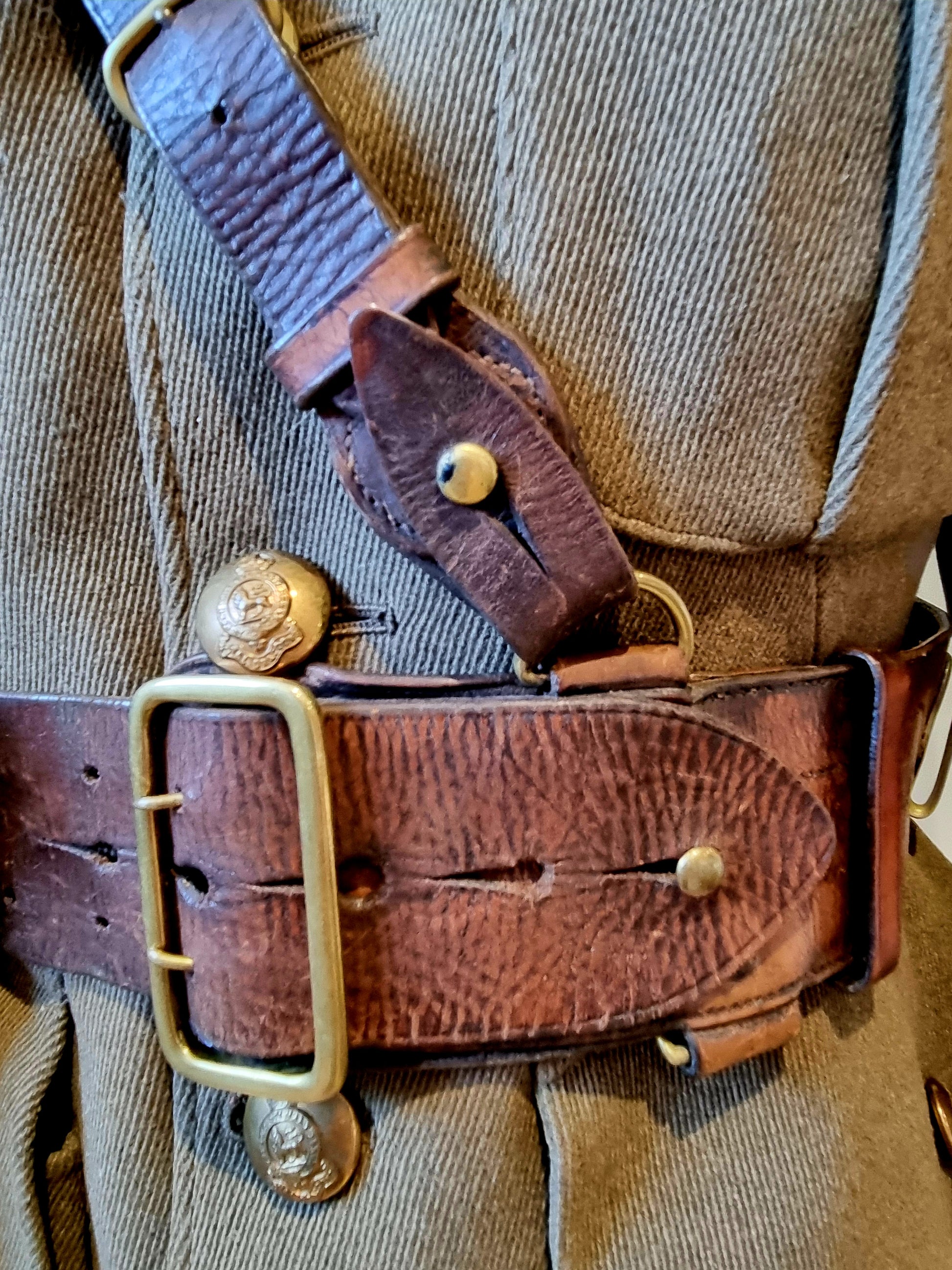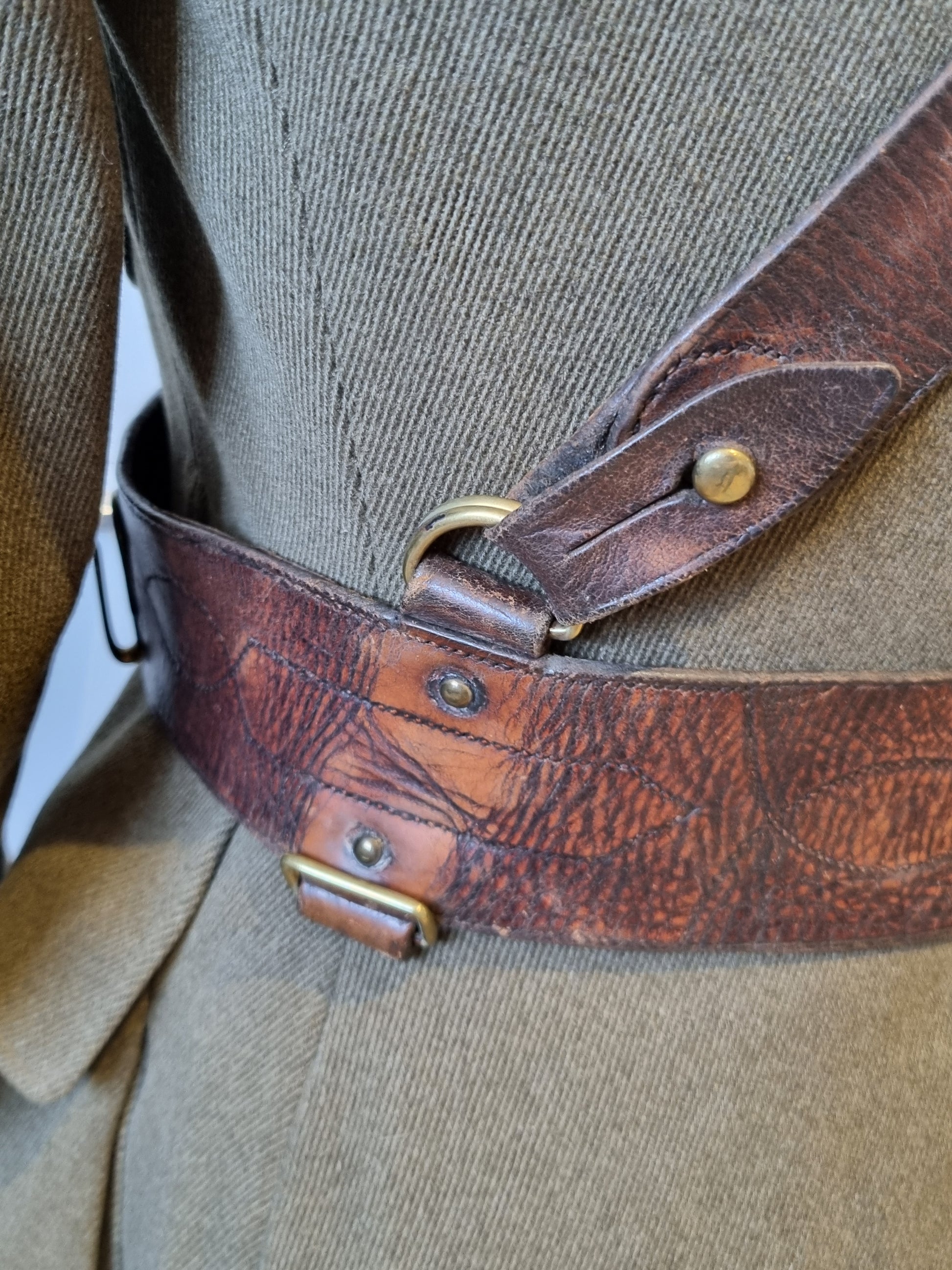 A completely unique WW1 cuff rank officers uniform jacket/tunic, Sam Browne belt, and Pistol holster to Lt Colonel Frederick William 'Fritz' Wormald, DSO, commander of the Royal Dragoons Dec 1915- Nov 1918, Hero of the Battle of Omdurman, and Bechuanaland & Boer War veteran. He was also a personal friend of Churchill's, serving with him in the Sudan and appearing in many of his books and writings. His portrait is held by the Imperial War Museum.