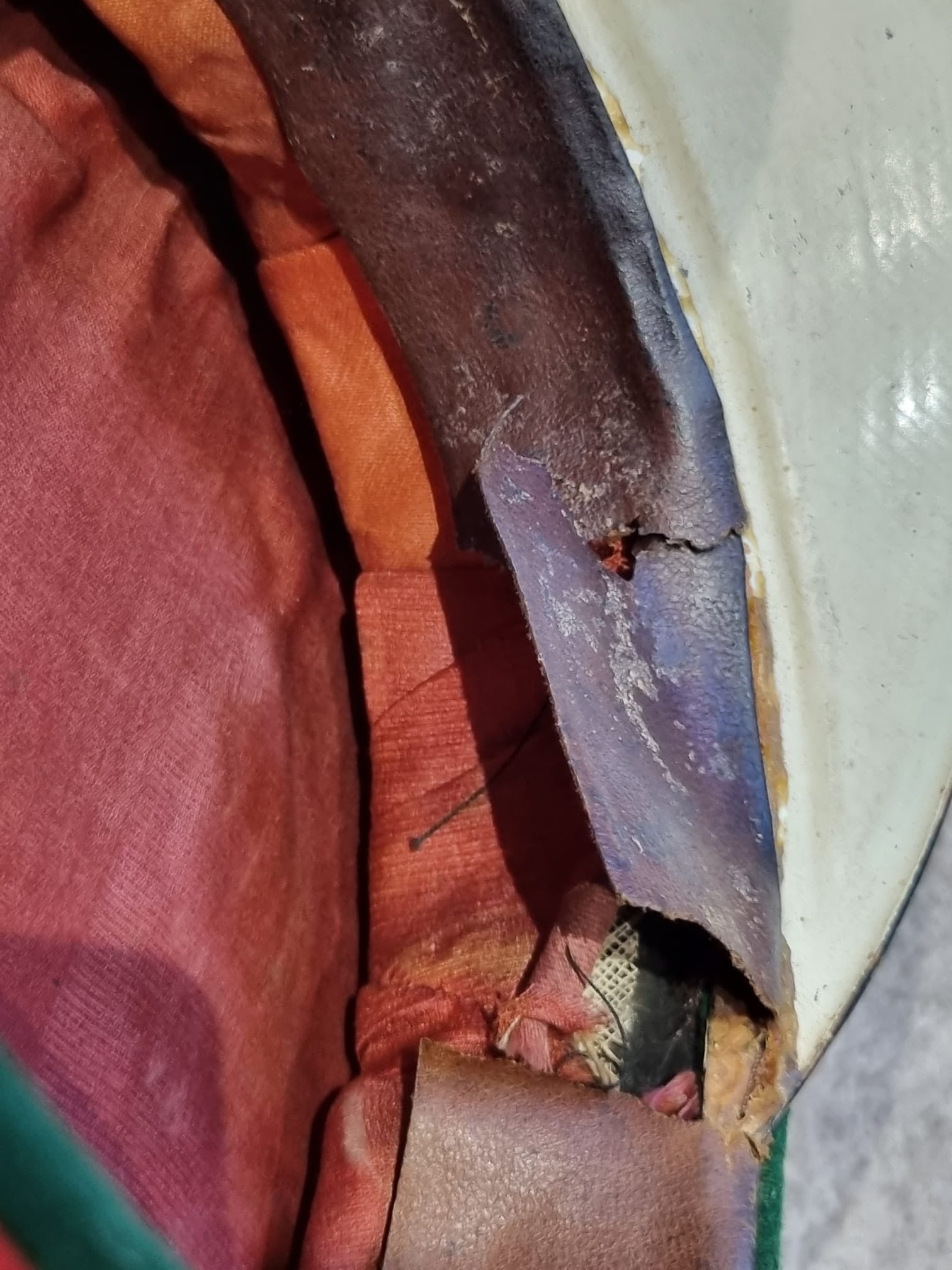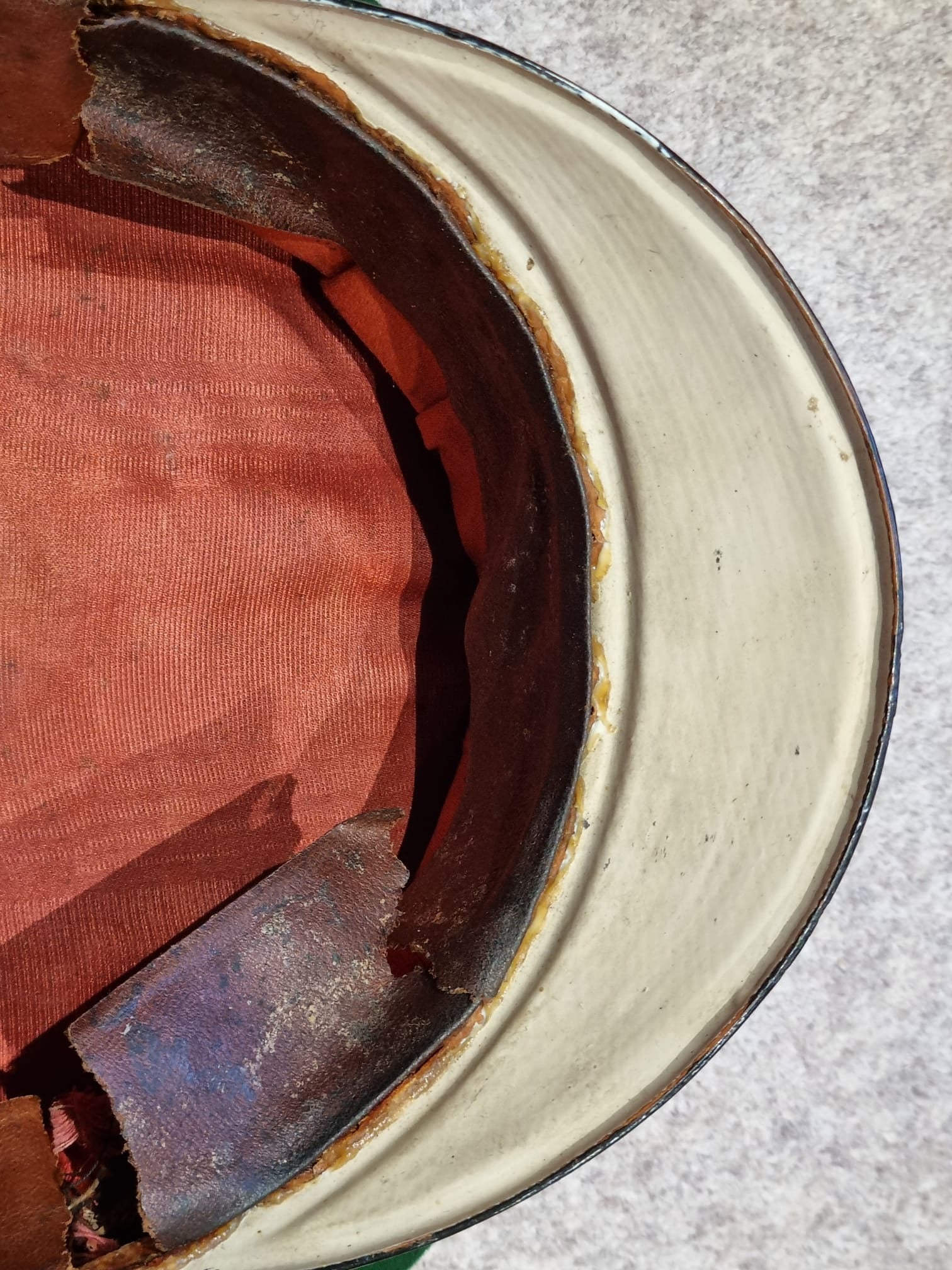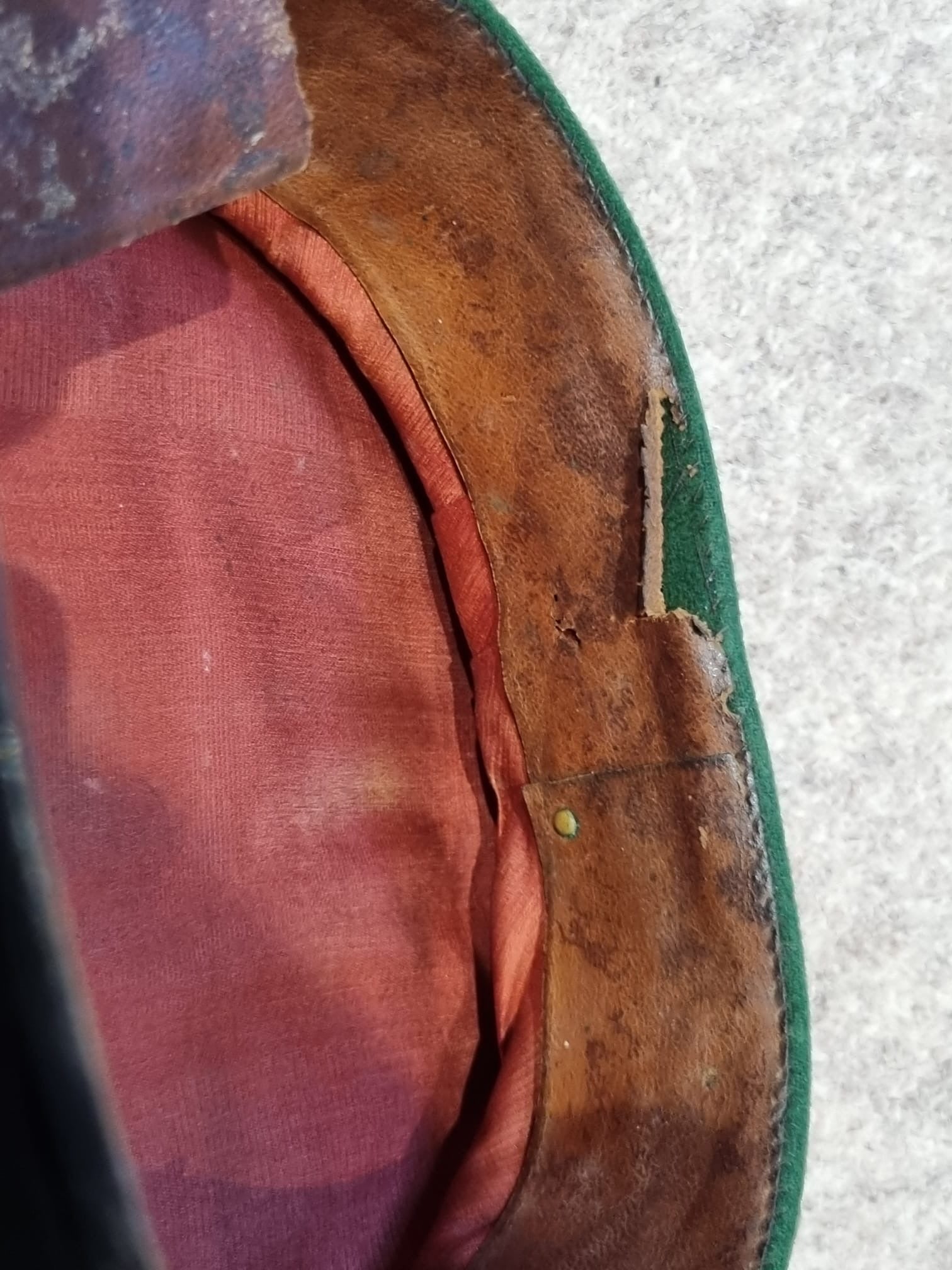 Condition generally very good - no mothing at all - inner sweatband has some curling / damage and there is stain / patch of some deposit on the top which could likely be sympathetically removed.