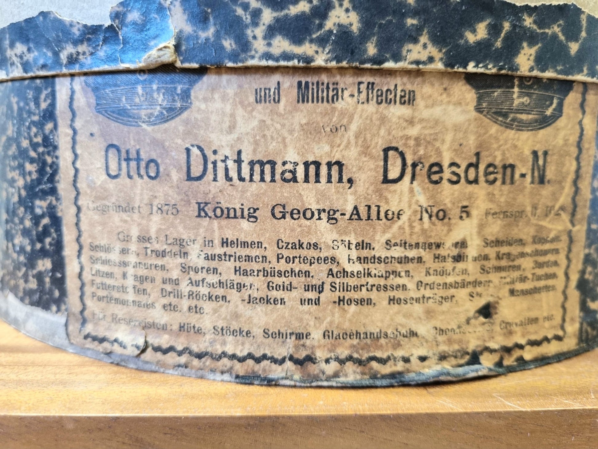 A beautiful and rare WW1 Imperial German (Saxony) visor cap for a pioneer/artillery officer, with its original makers Box.