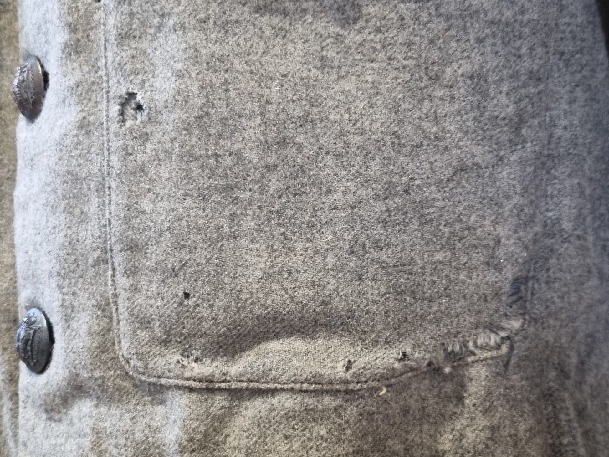 Condition is good for its age - some small moth holes / tears, mainly on one of the breast pockets. Some slight browning discoloration. Nicely lined inside