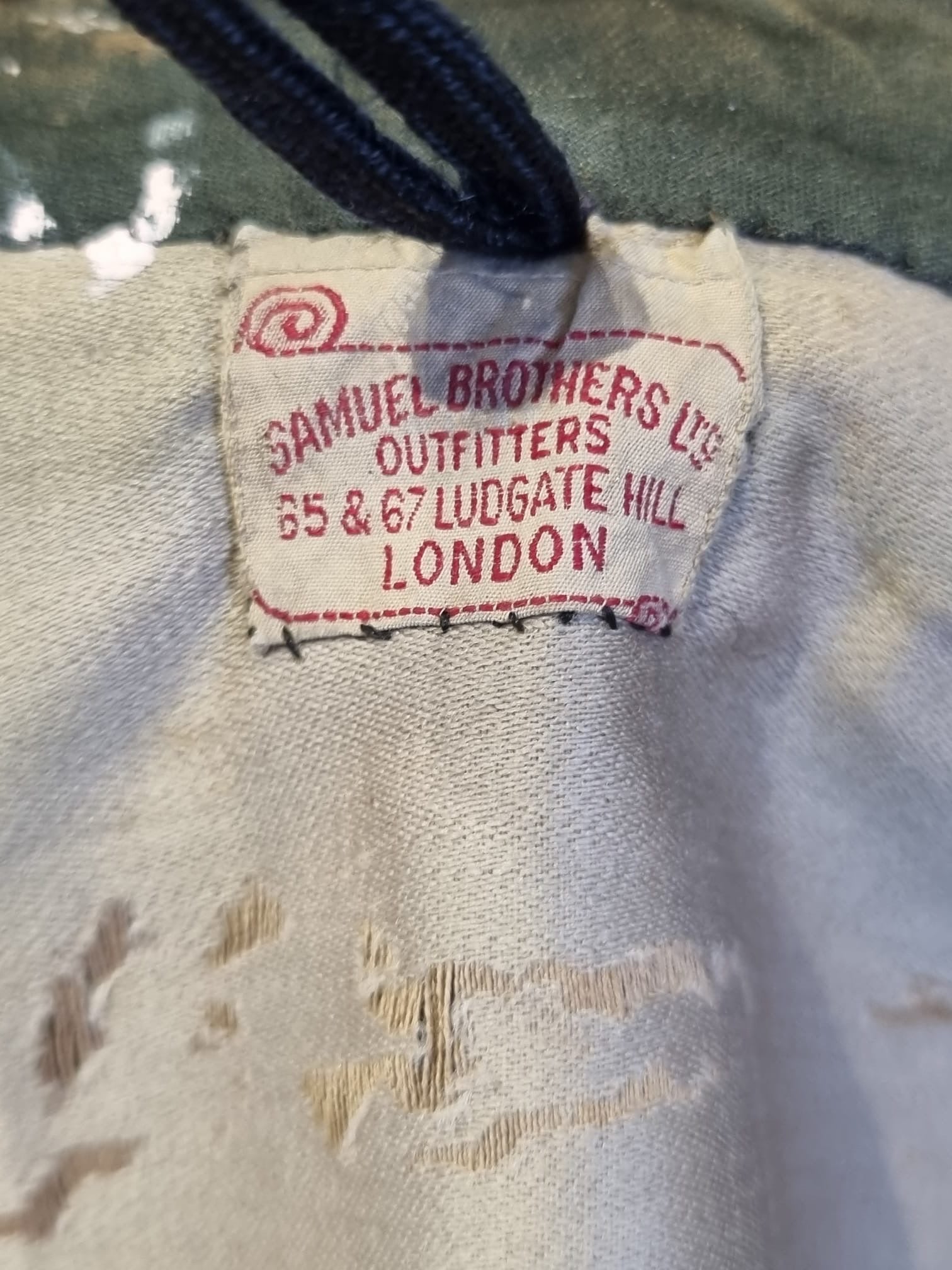 With Victorian crown buttons - all present except one on one of the breast pockets. With makers label for Samuel Brothers ltd