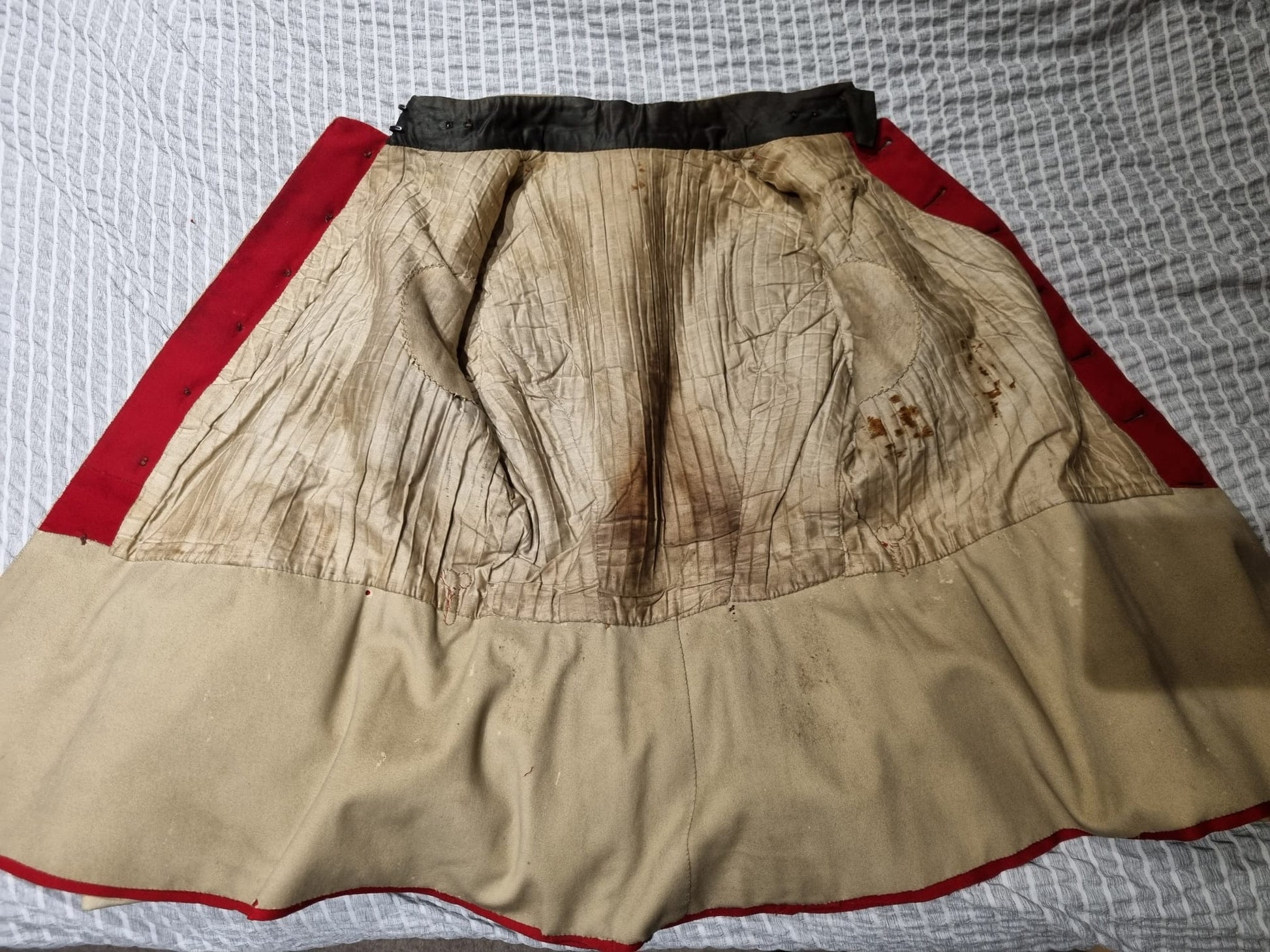 Jacket Condition - generally very good with very limited mothing trails at the bottom of the back. Some black staining at the back nelow the collar. Some small loose brocade on one cuff.