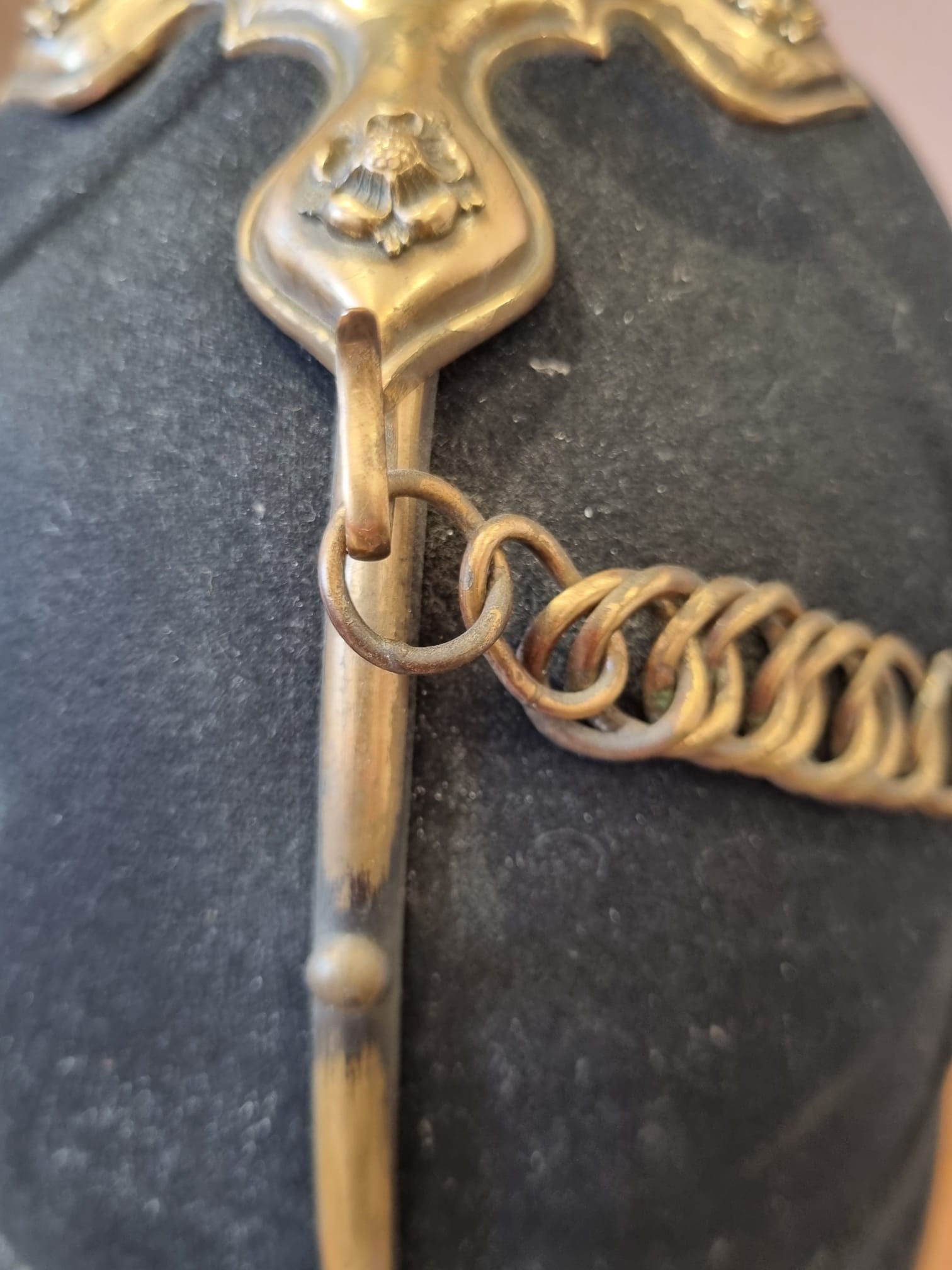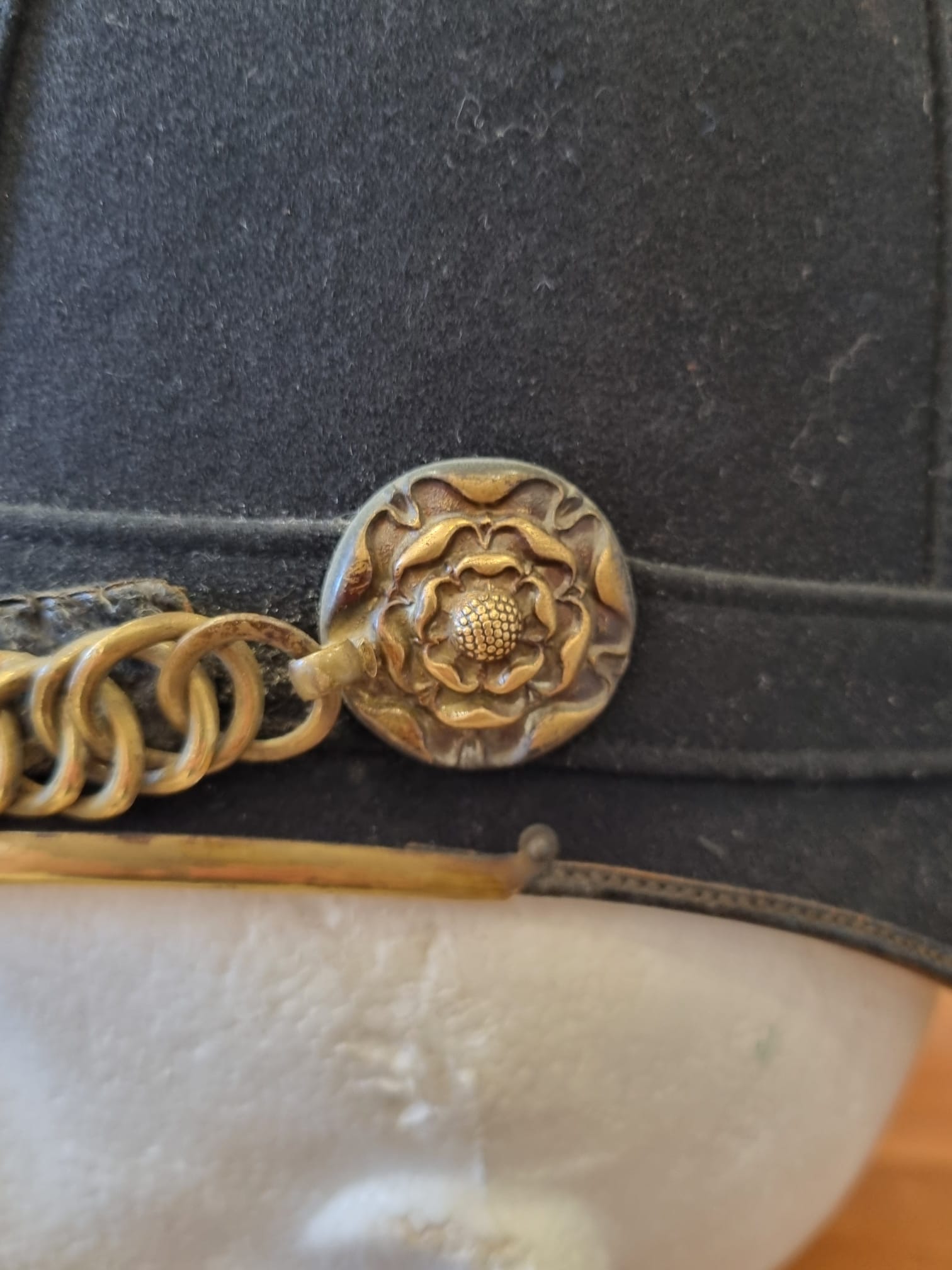 Complete with all elements - chinstrap, hangers, roses.