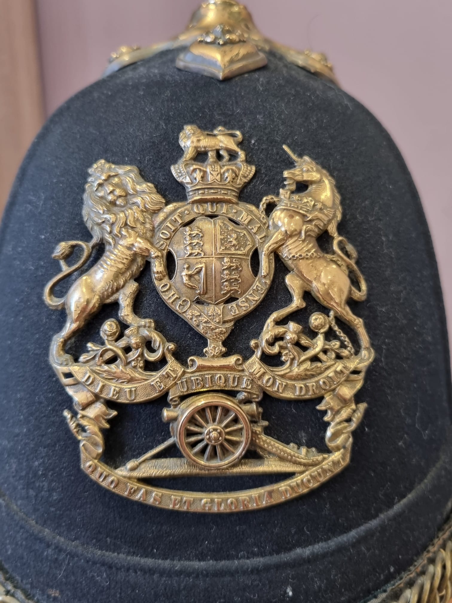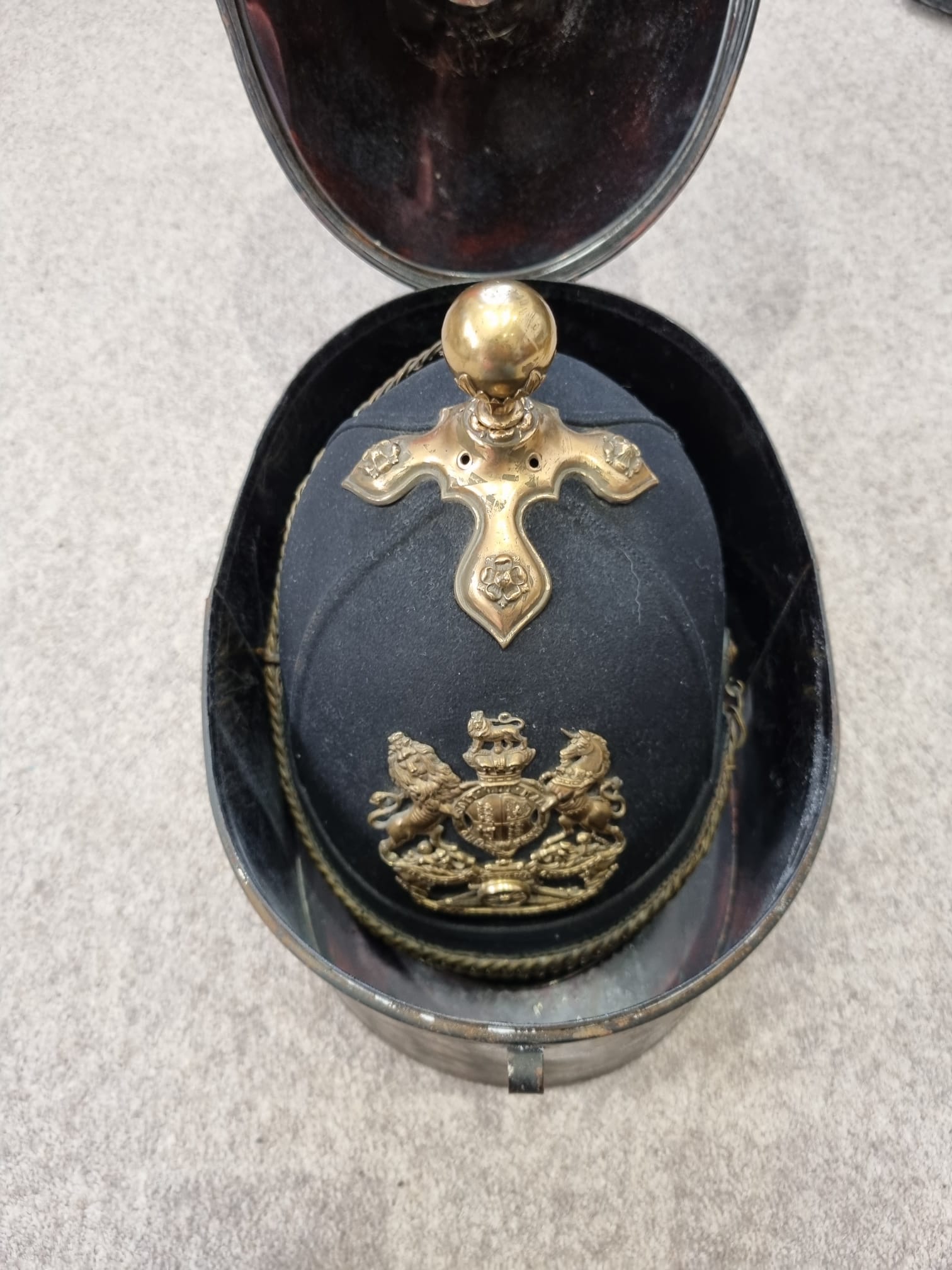 SOLD! Victorian Royal Artillery Officer’s Home Service Helmet and Tin