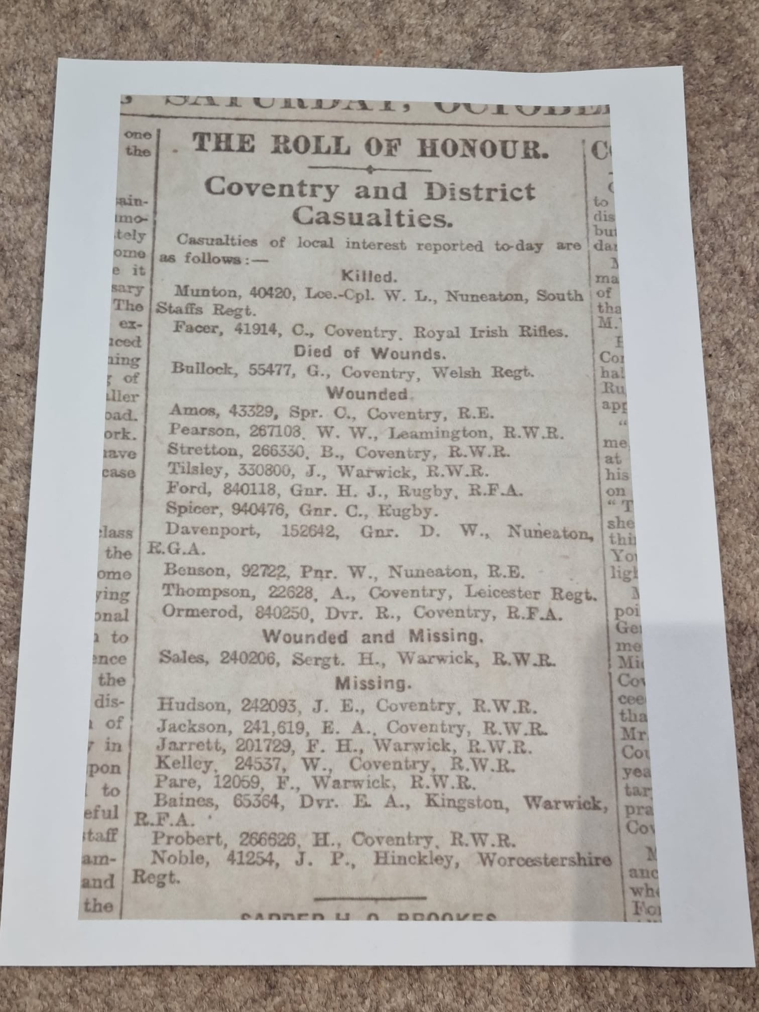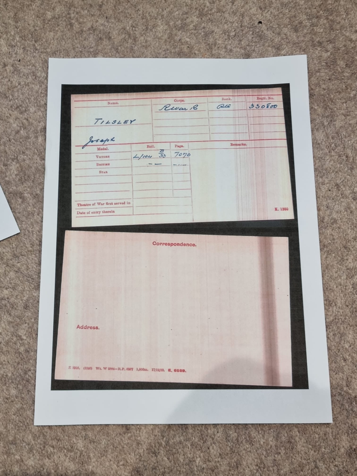 Joseph enlisted originally in the 1/8th Battalion, Royal Warwickshire Regiment, likely sometime from late 1916 to the start of 1917 judging by h service number. He later transferred to the 1/6th, although it is unclear when this was, it is likely he took part in the Battle of Langemarck in August 1917, Battle of Polygon Wood in September 1917 and the Battle of Broodseinde in October 1917.