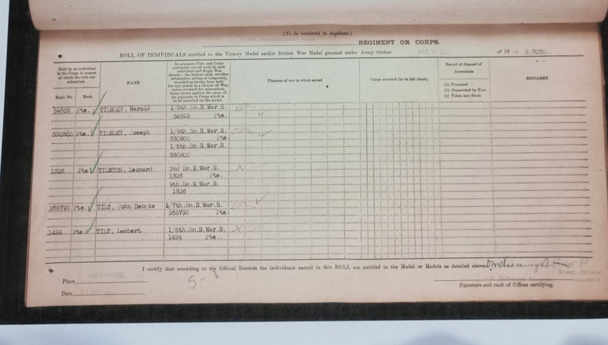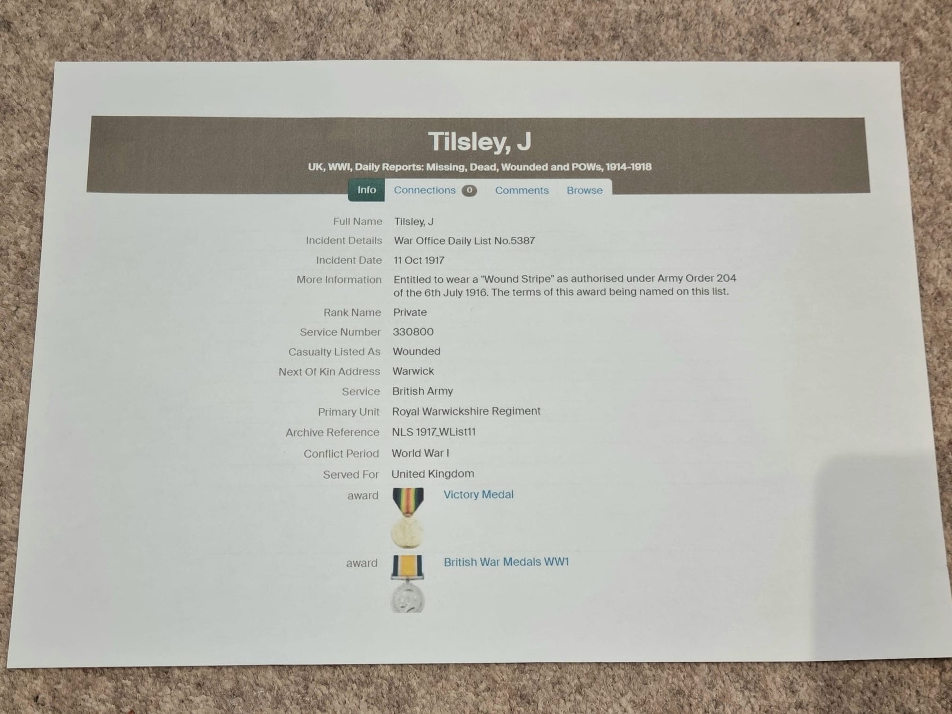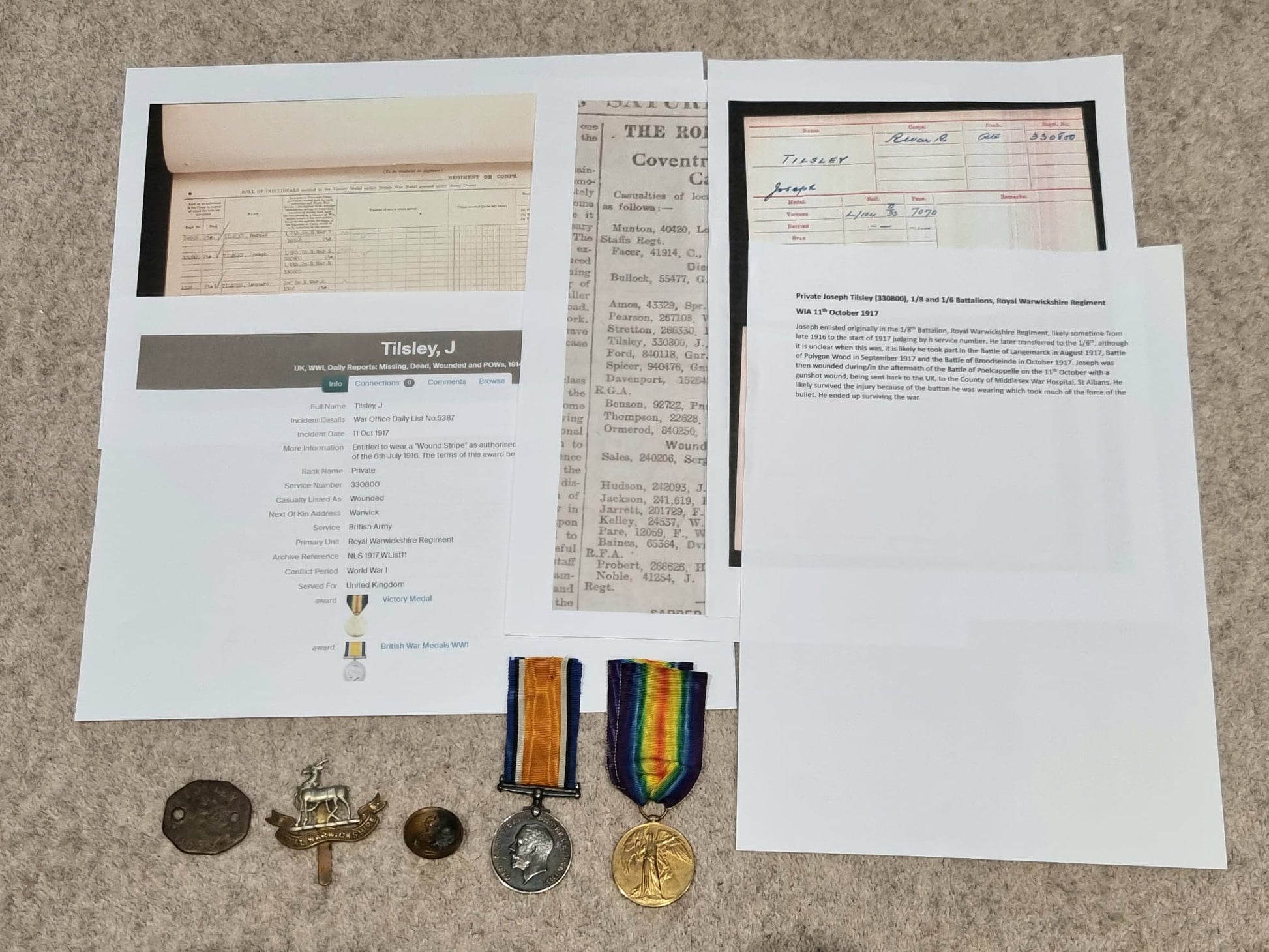 Private Joseph Tilsley (330800), 1/8 and 1/6 Battalions, Royal Warwickshire Regiment, WIA 11th October 1917