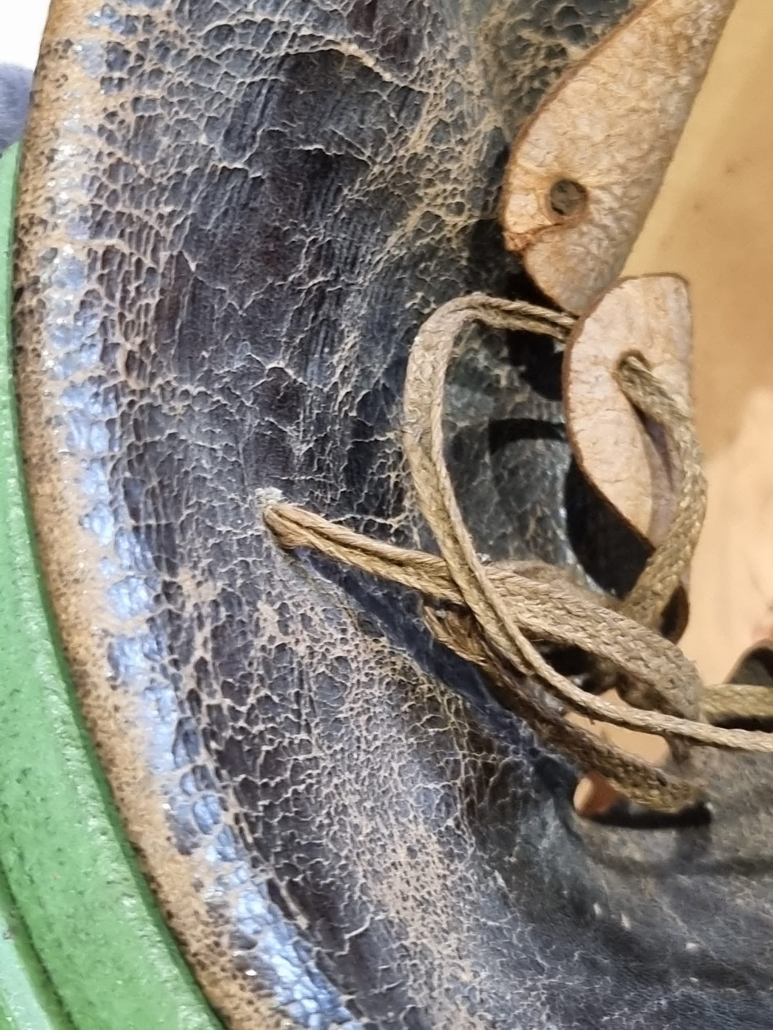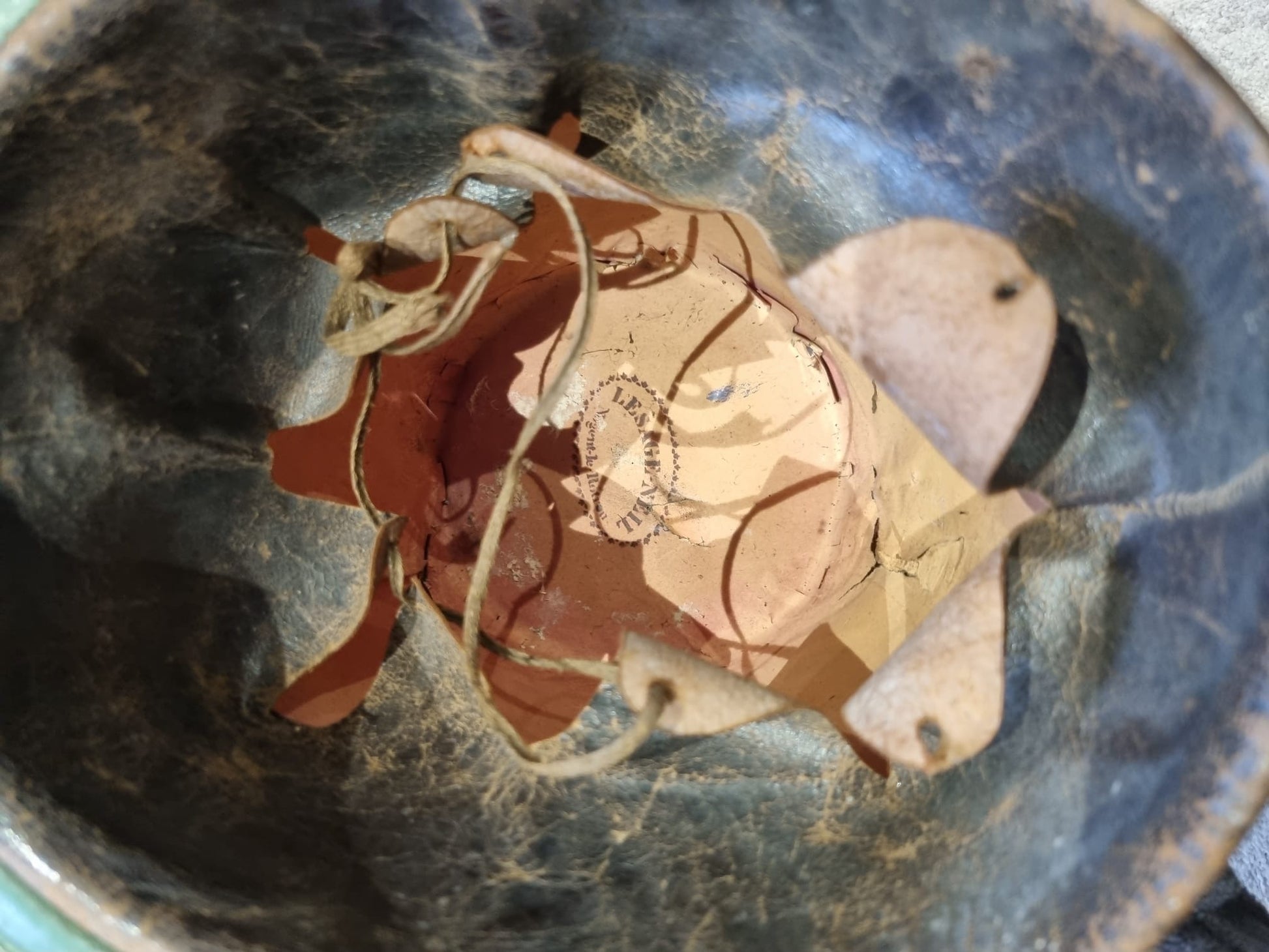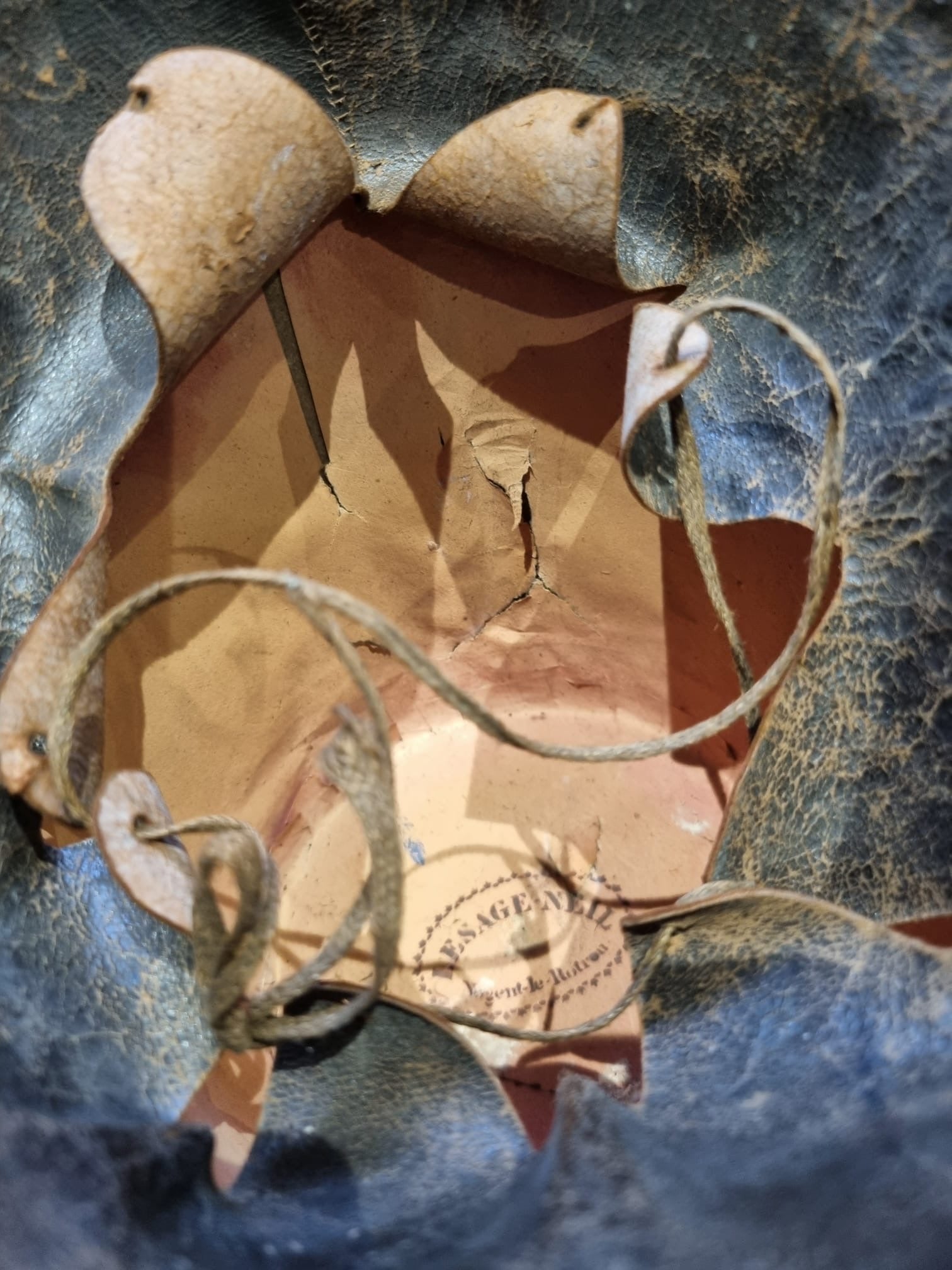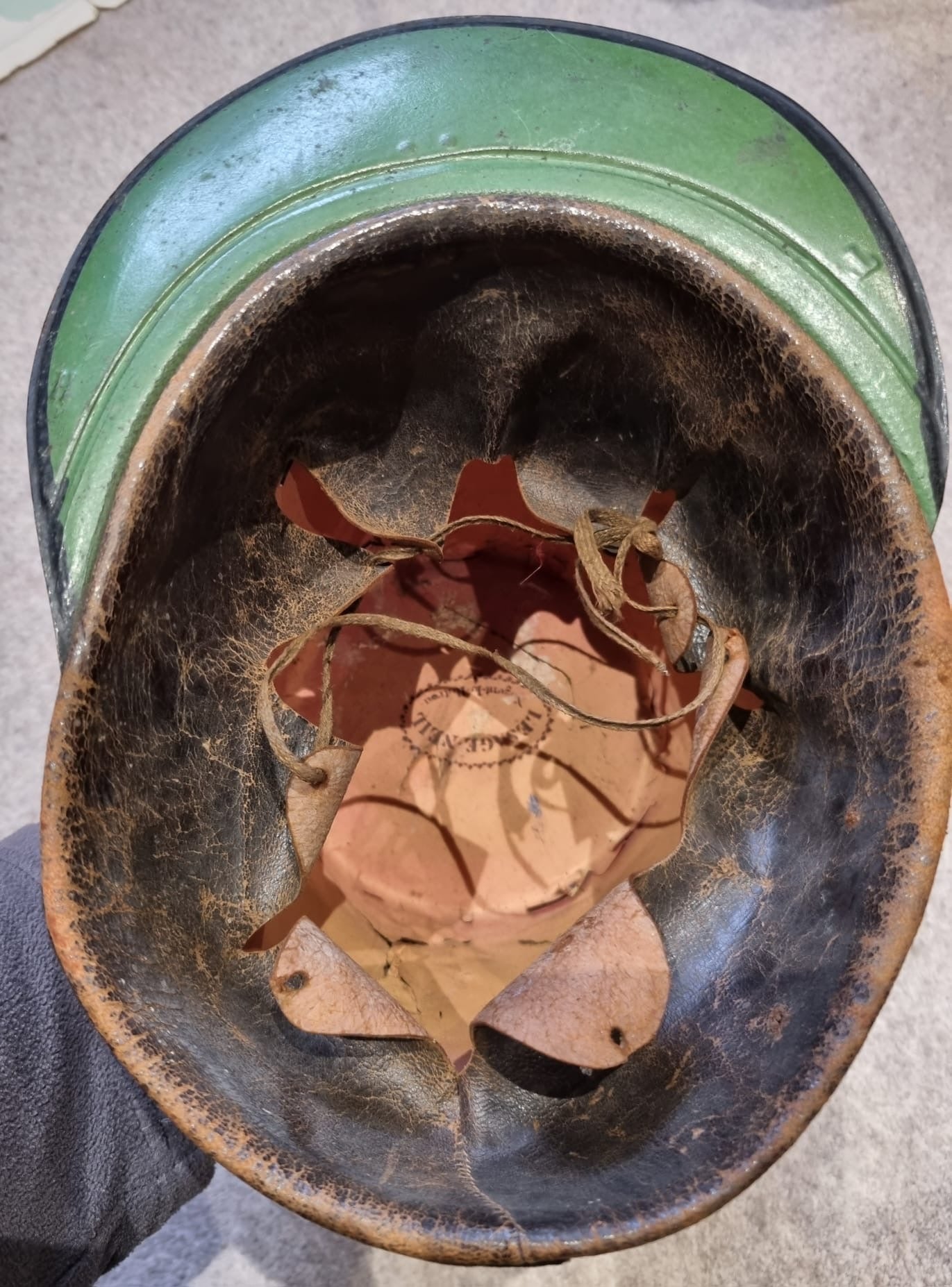 Leather liner still present, though a little curled