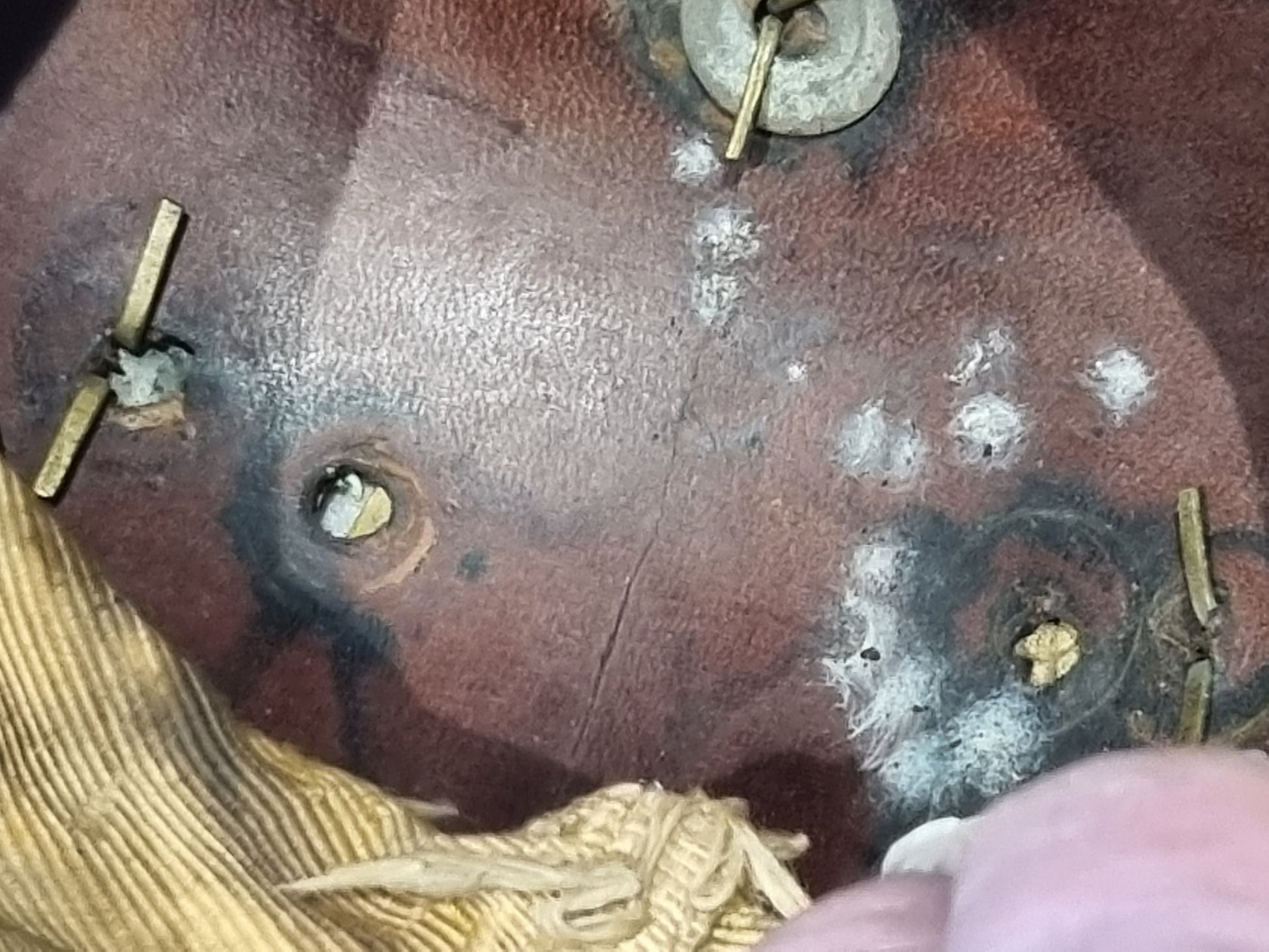 Slight rippling of the leather on the visor and the metal visor rim is very slightly loose