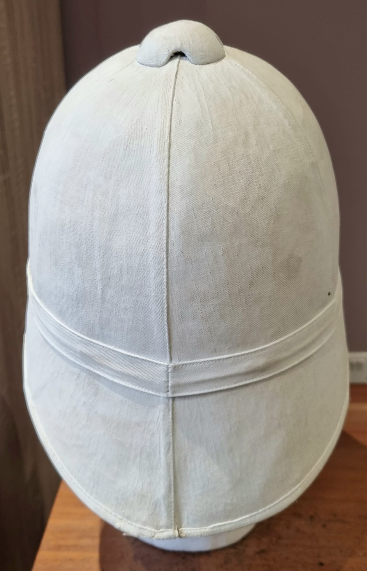 With cork construction covered in whitewashed cotton cloth - small dented patch on the rear where the cork shell is damaged