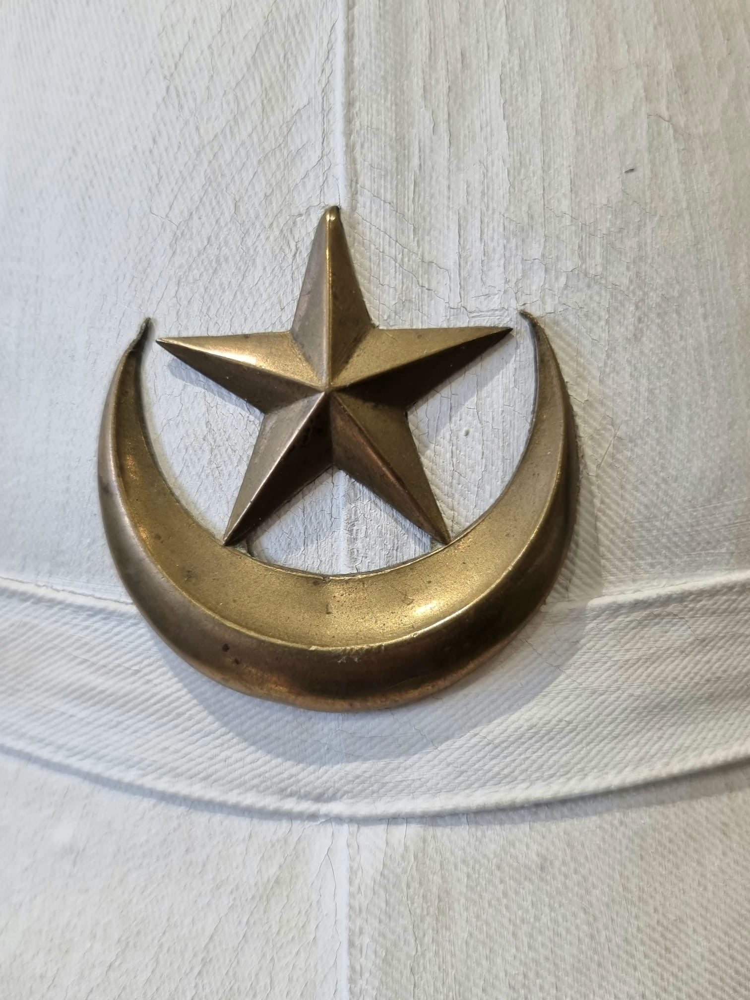 With original metal Star and Cresent badge for a Spahi regiment (North African, Moroccan, Algerian). It could also be Tirailleur, but is more likely Spahis.