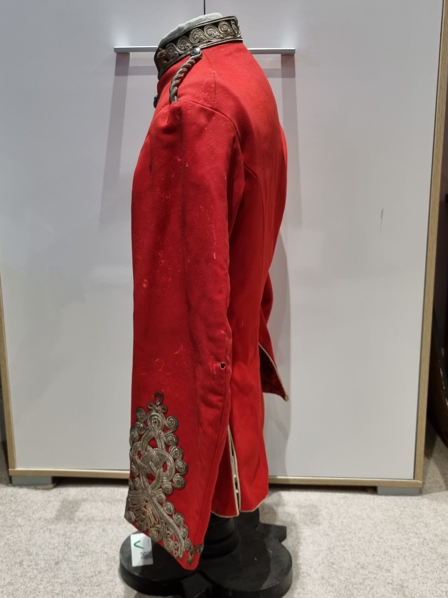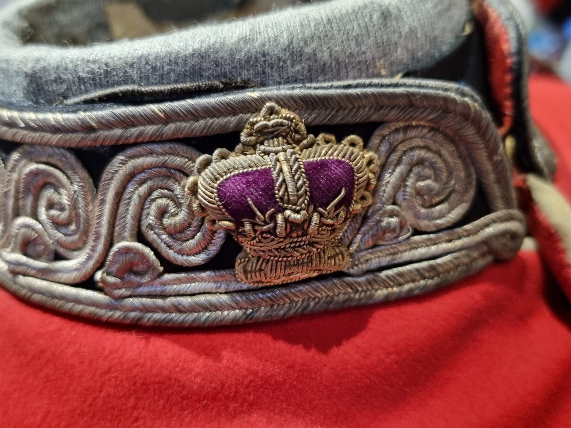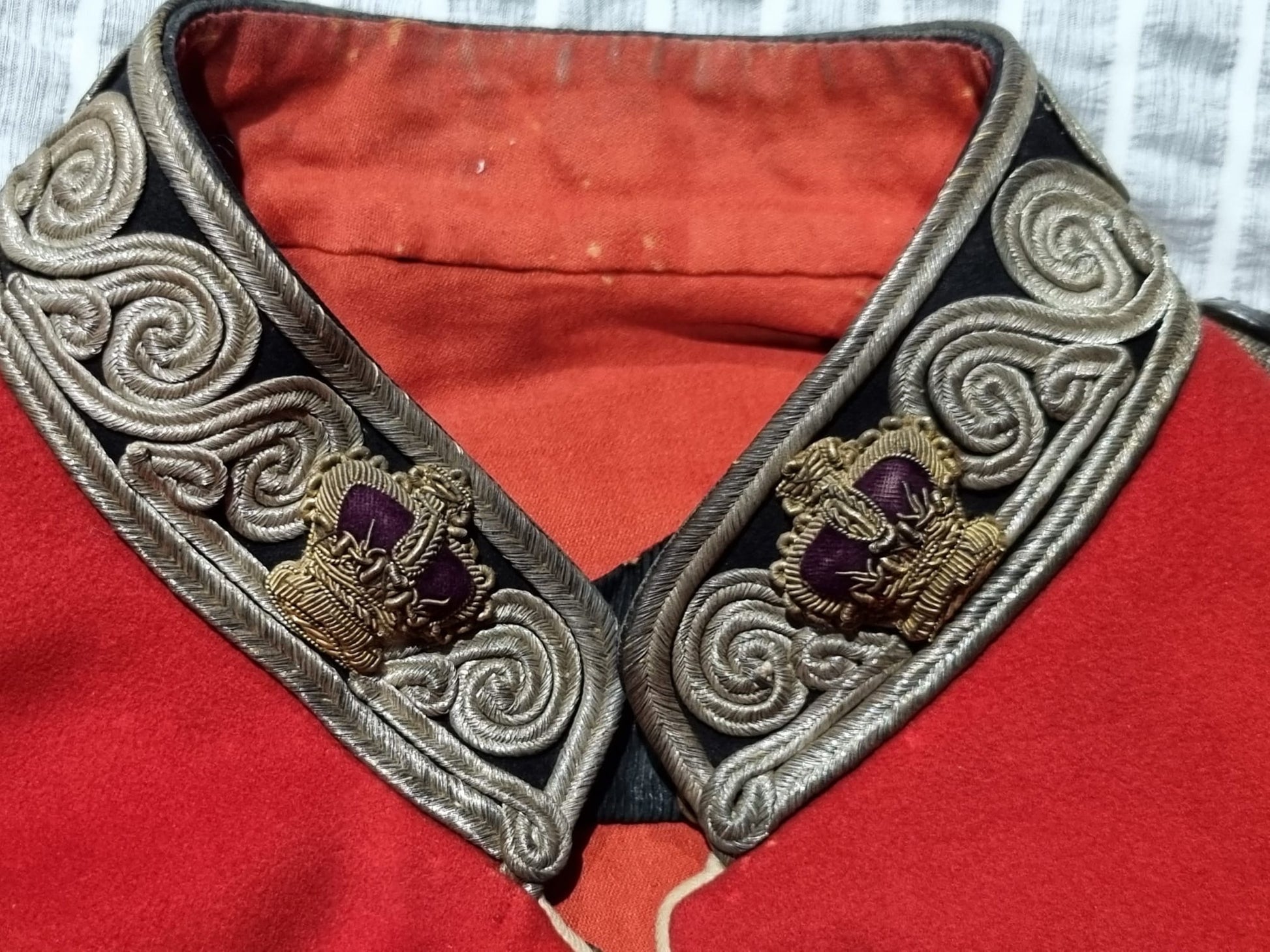 With beautiful brocaded collar and cuffs with Major's rank crowns on the collar rather than the epaulets, denoting this as pre 1881. Uniforms from this period are incredibly hard to come by.