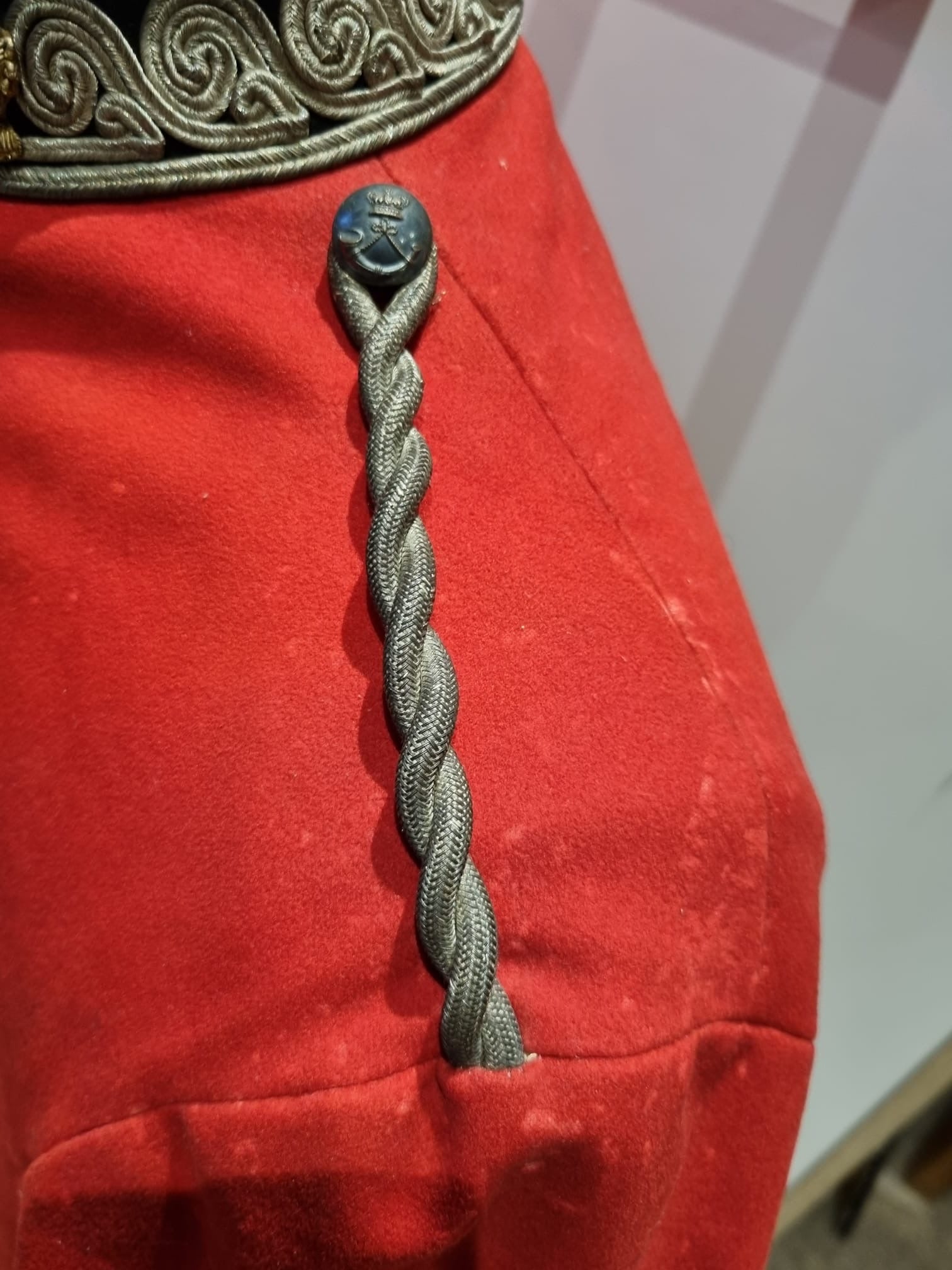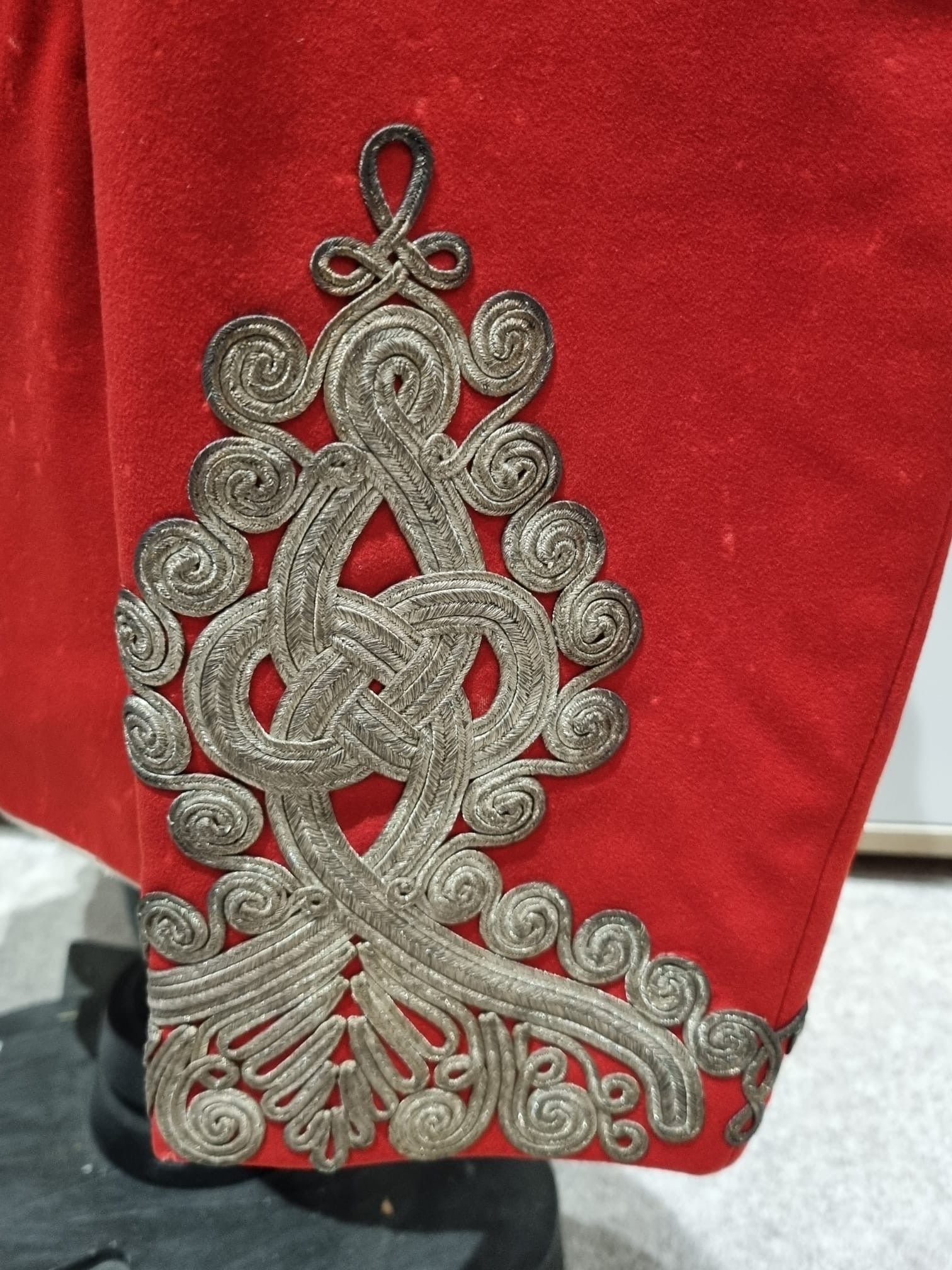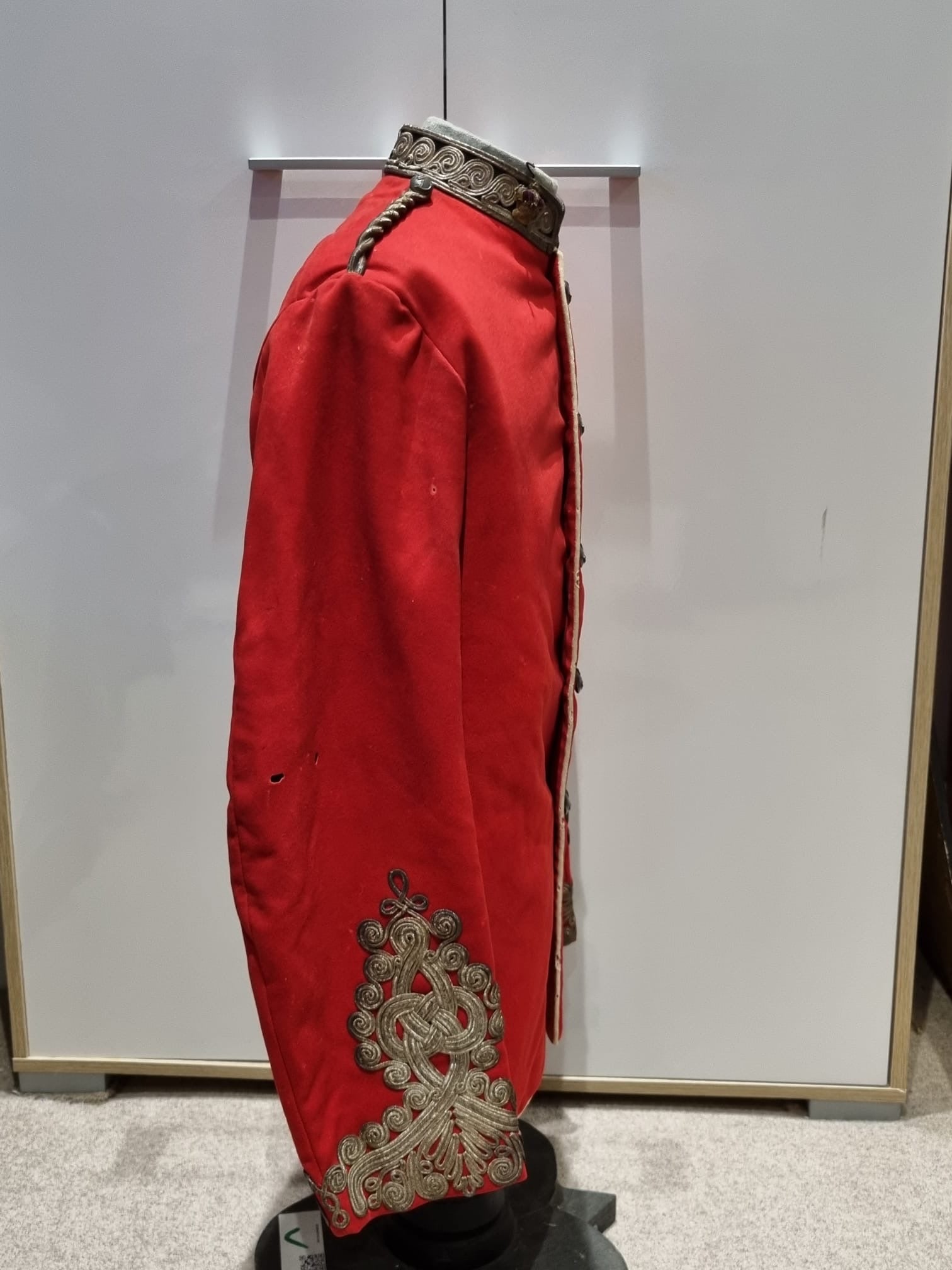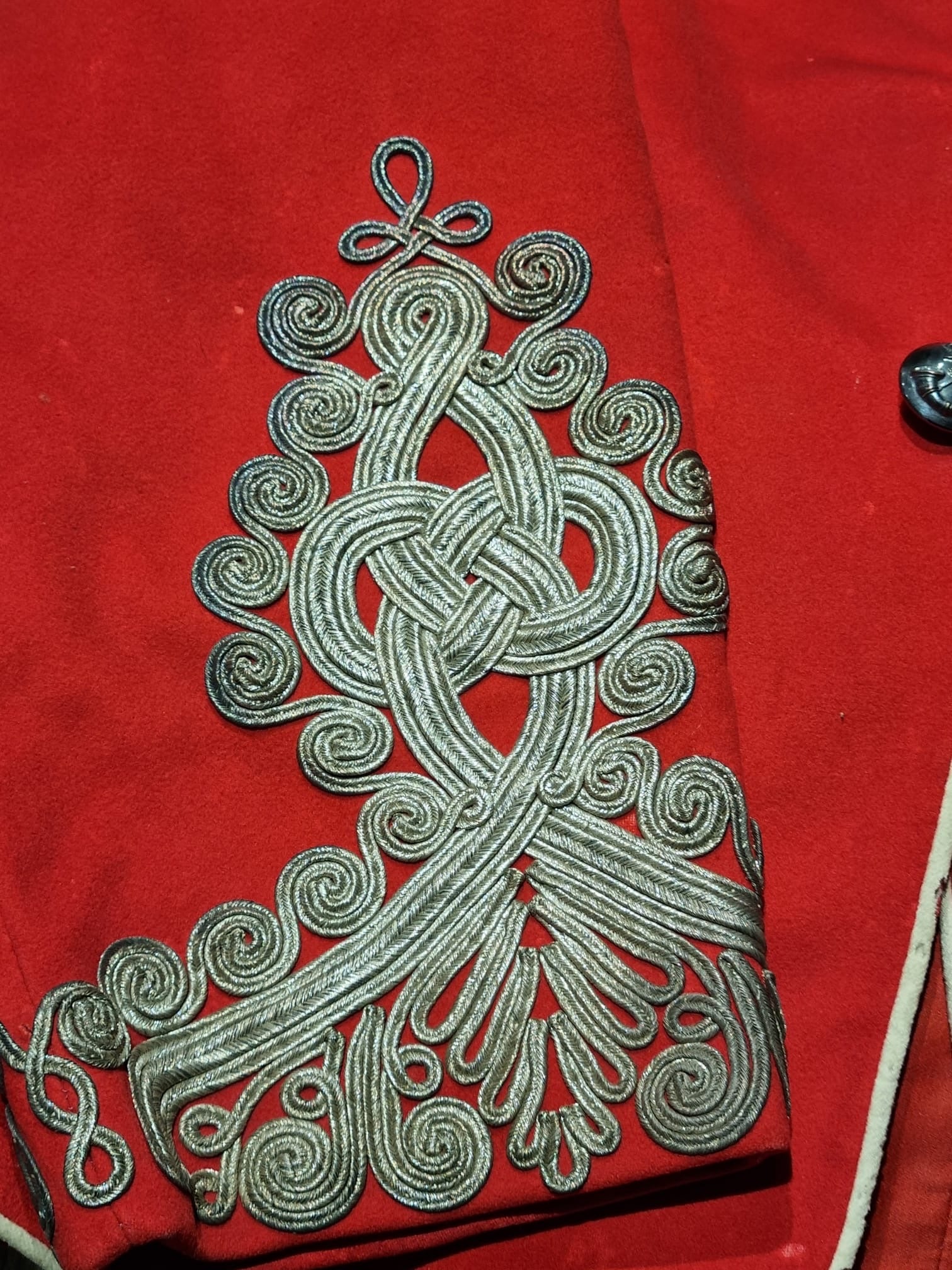 With beautiful brocaded collar and cuffs with Major's rank crowns on the collar rather than the epaulets, denoting this as pre 1881. Uniforms from this period are incredibly hard to come by.