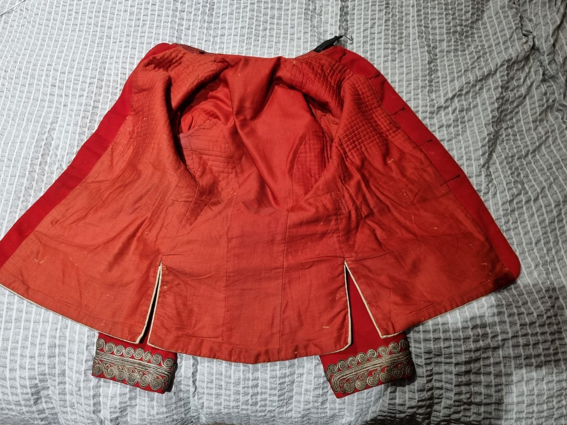 Jacket condition- small moth holes on the elbows and one smaller moth hole on the belly- many moth trails across the jacket, some fraying to one of the epaulets, otherwise in very good structural condition, especially for its age.