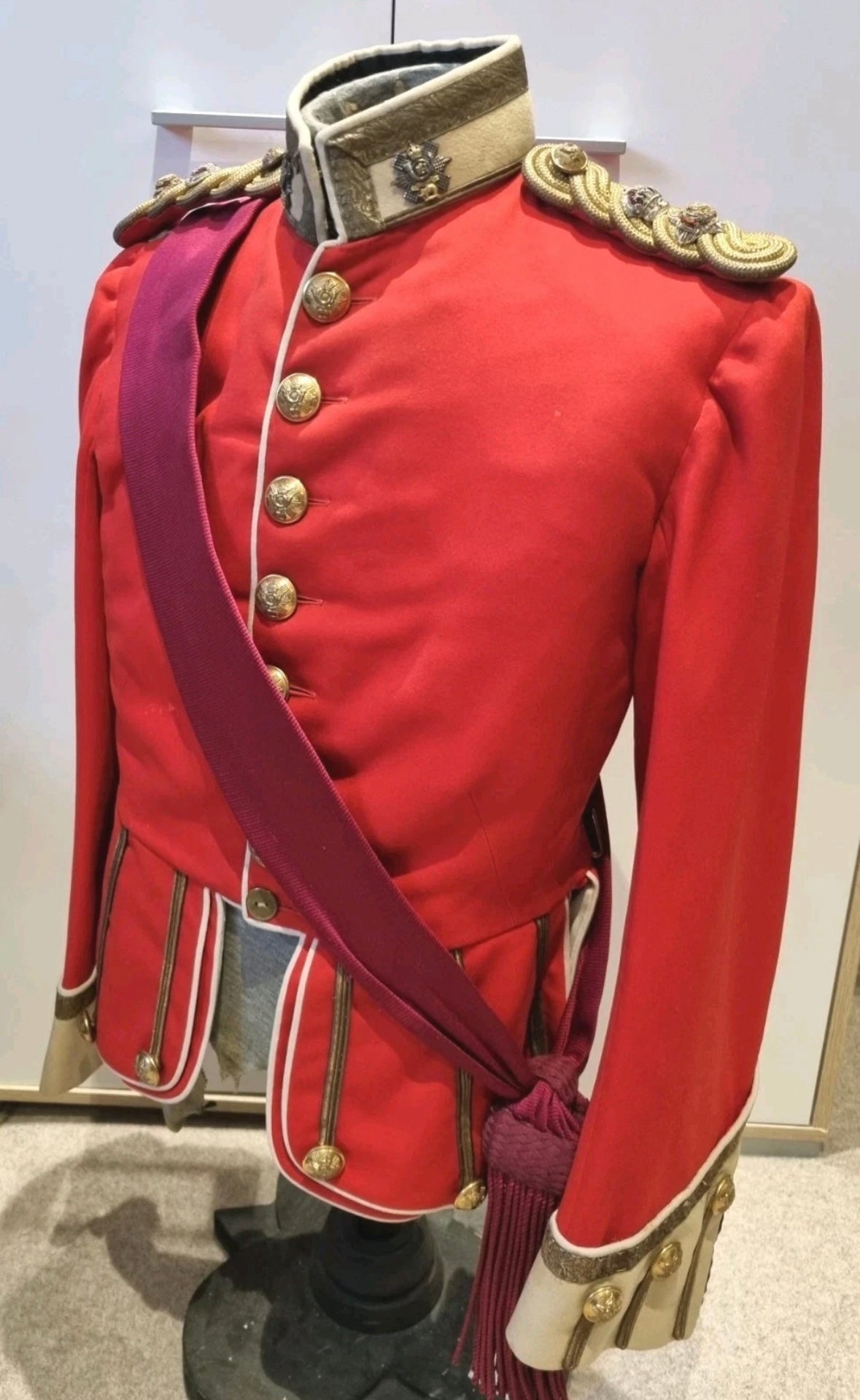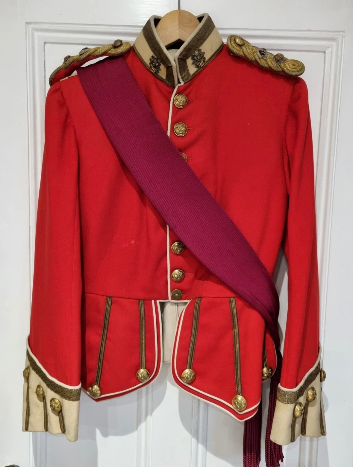 A fantastic and rare pre-WW1 (Edwardian) Highland Light Infantry Lt Colonel full dress Scarlet Doublet & burgundy coloured Sash.