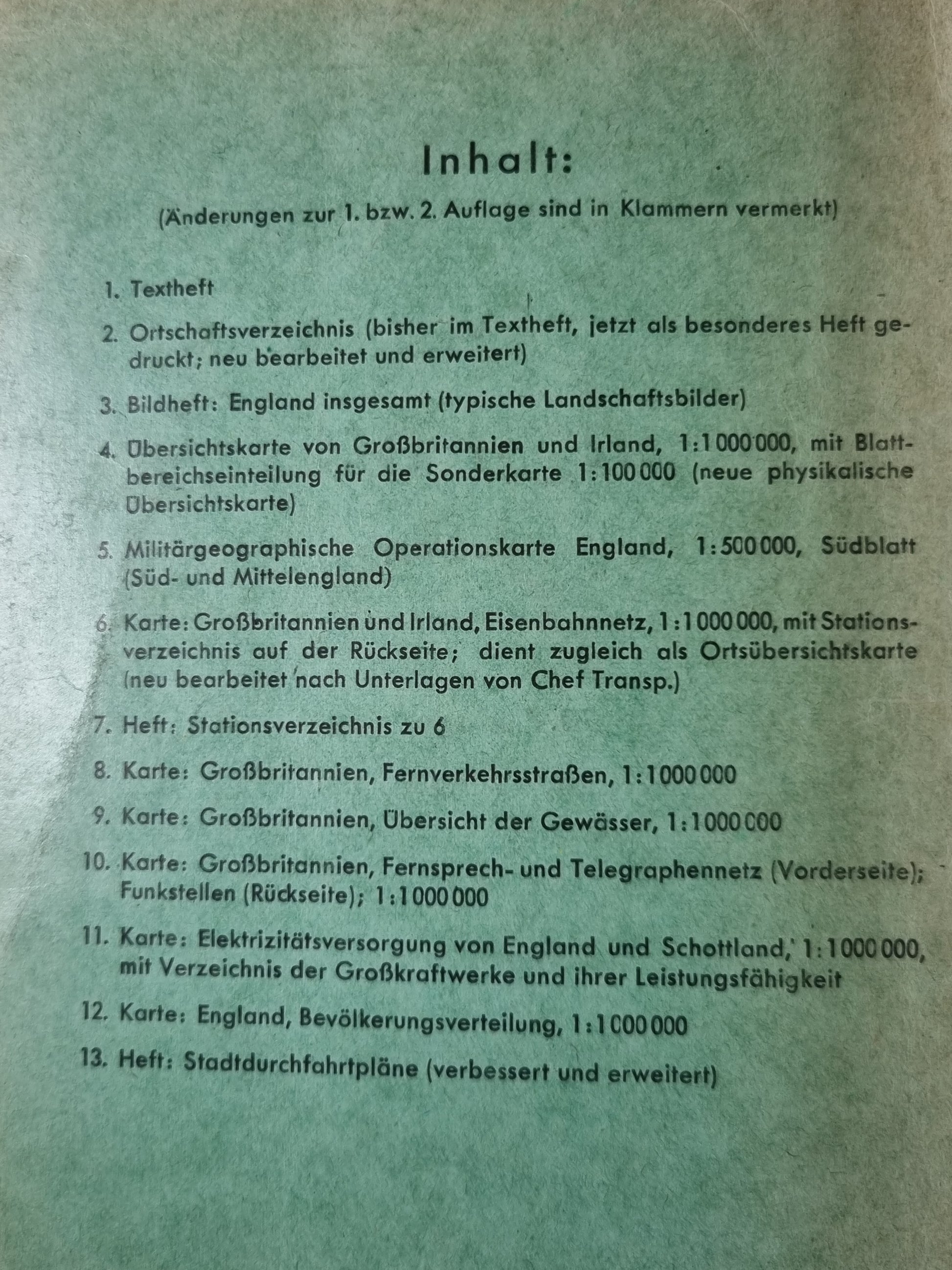 The booklets include the Textheft which details the strategic values of each part of the UK, and the Bildheft which has pictures of key parts of the UK and particularly harbours