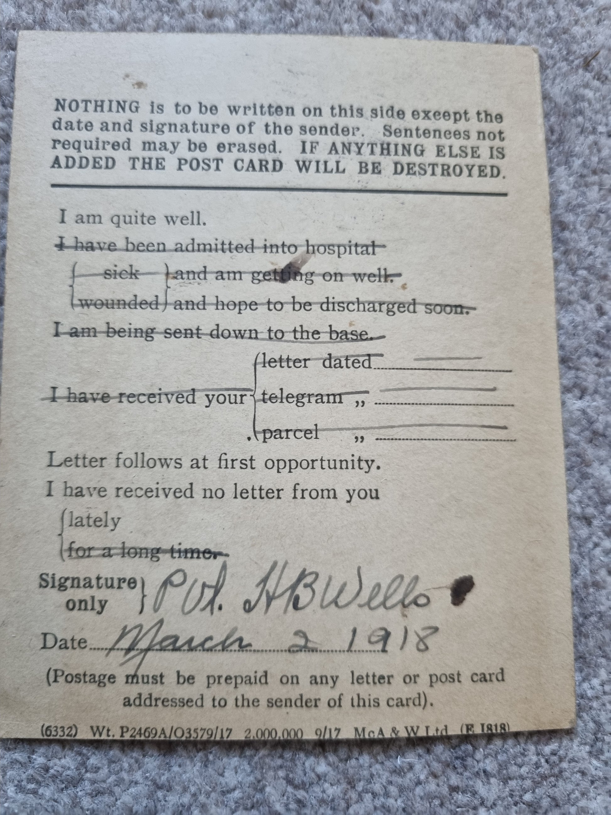 Album attributed to Private H B Wells as there is a field service postcard named to him.