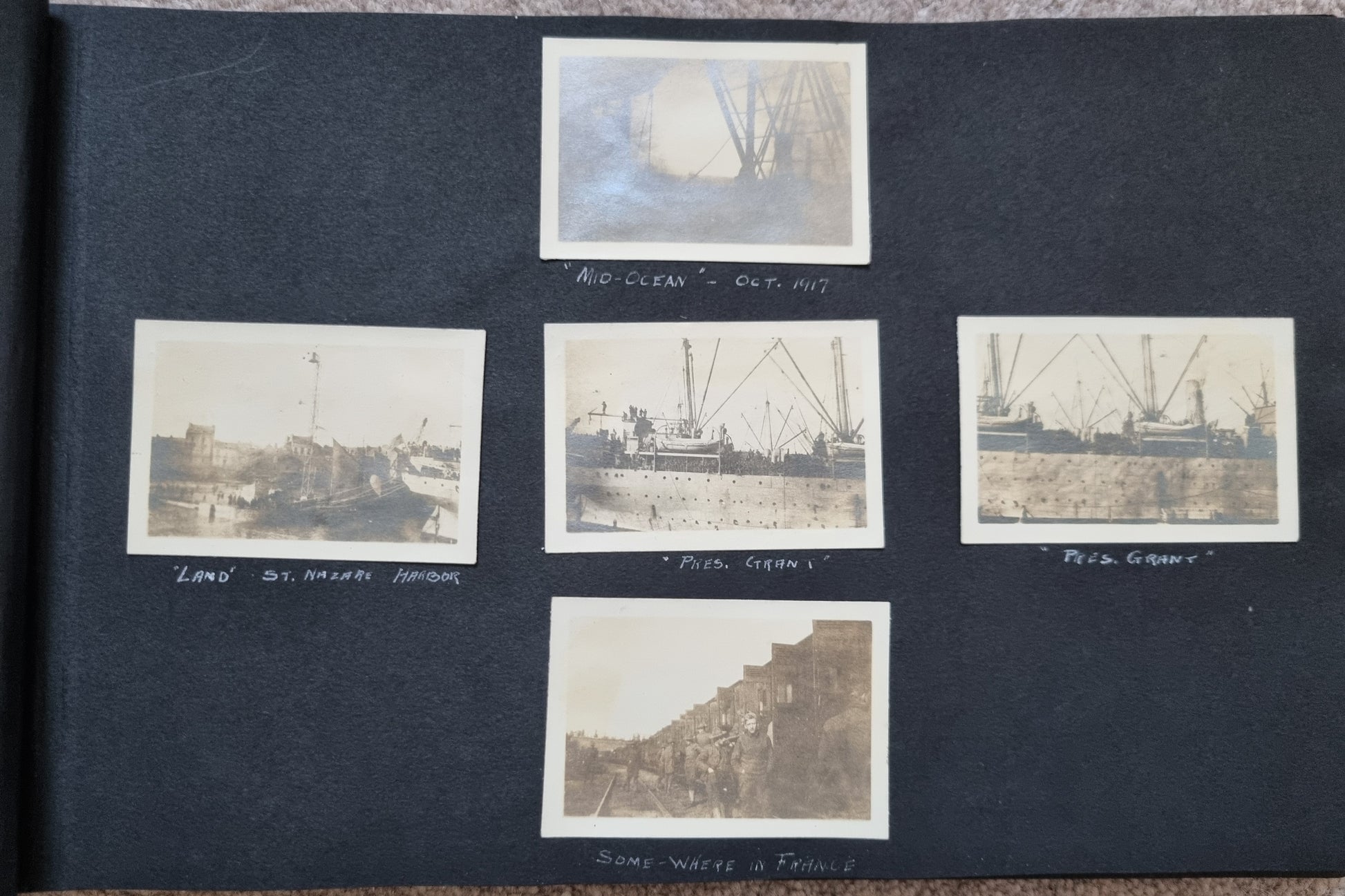 His unit landed at St Nazaire in Brittany France in October 1917. After this there is no annotation in the album presumably for security reasons.