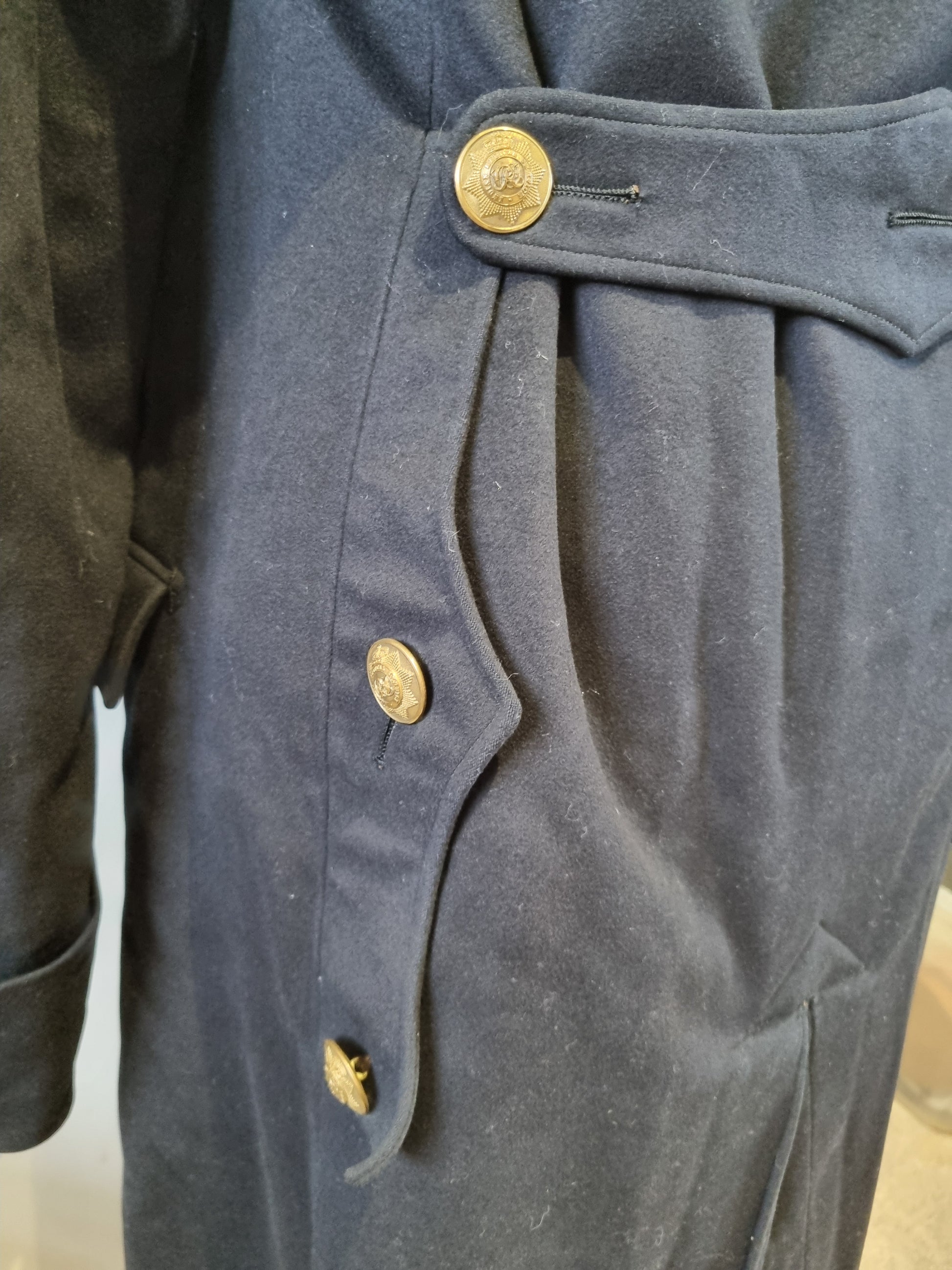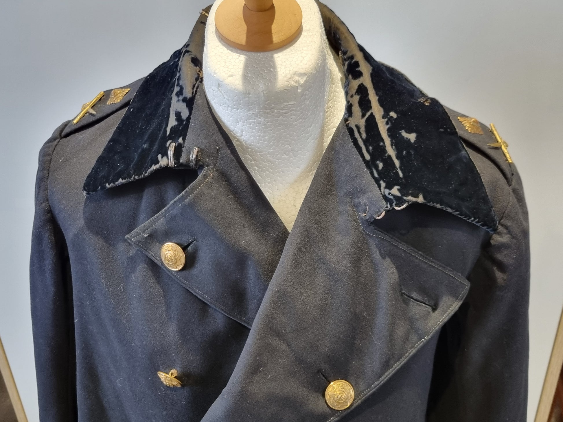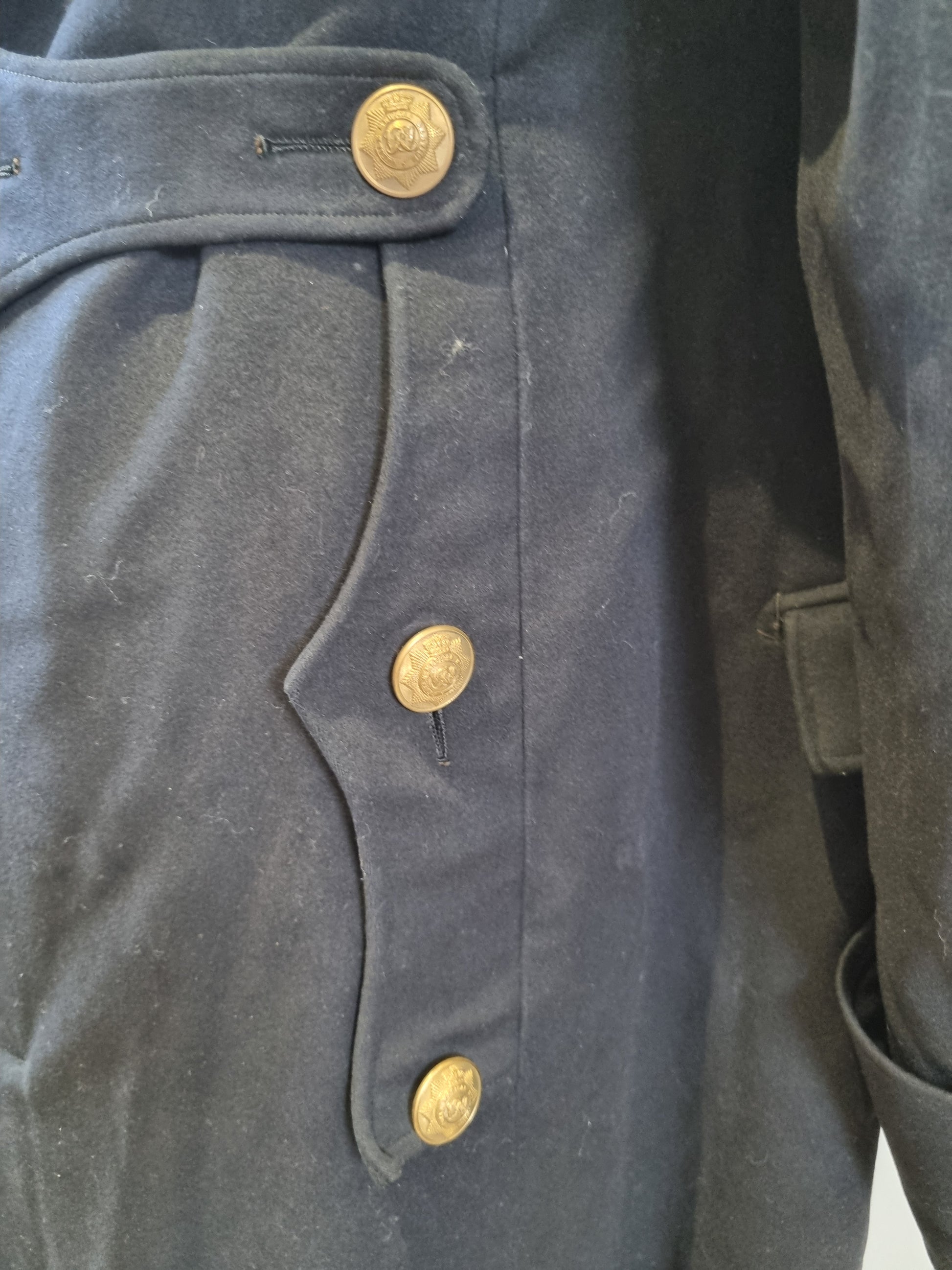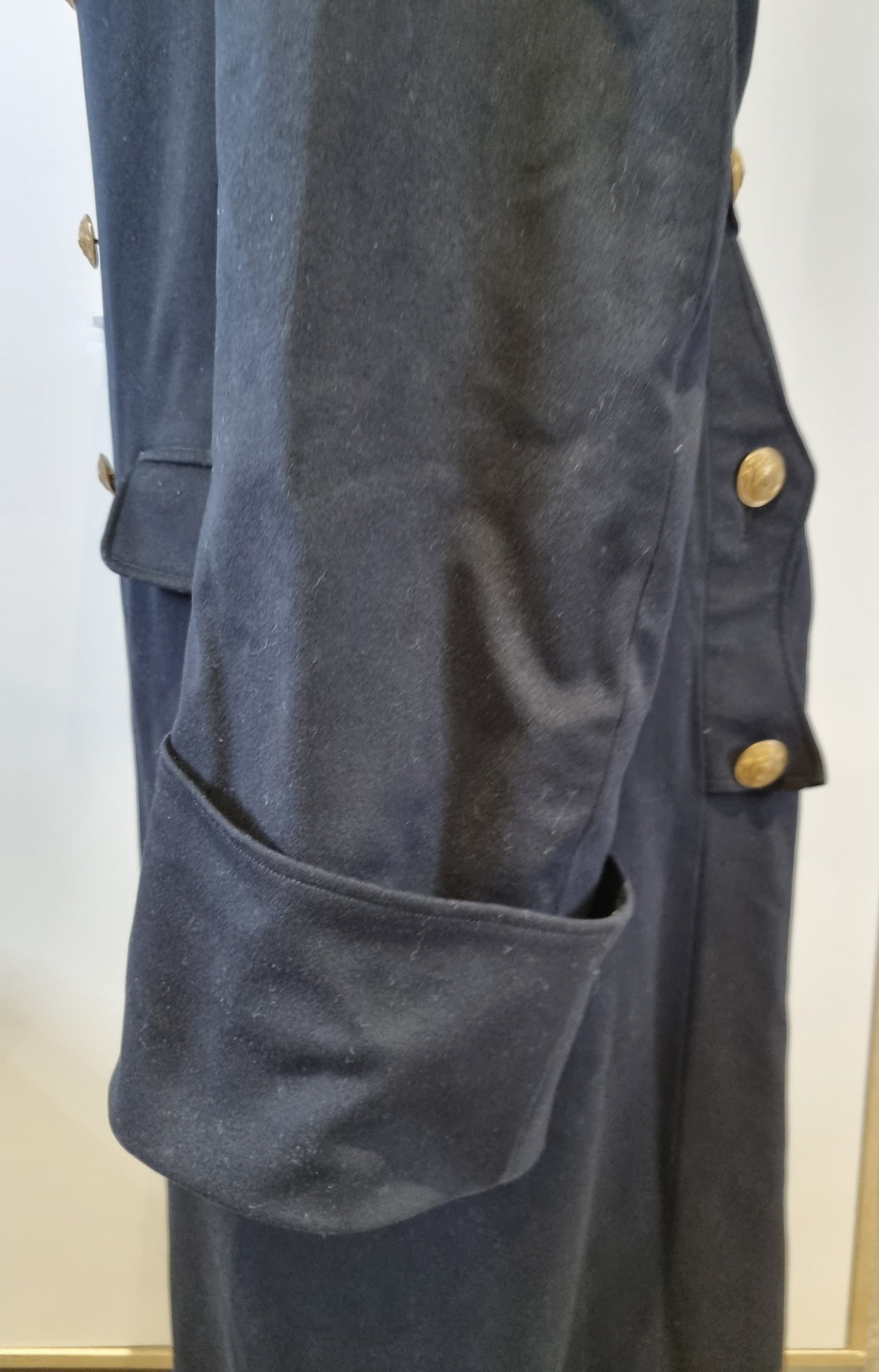 Most of the coat is in very good condition - the velvet faced collar has a lot of wear / bare patches though. One of the armpit seams is unstitched for about 5 cm but could be easily restitched.