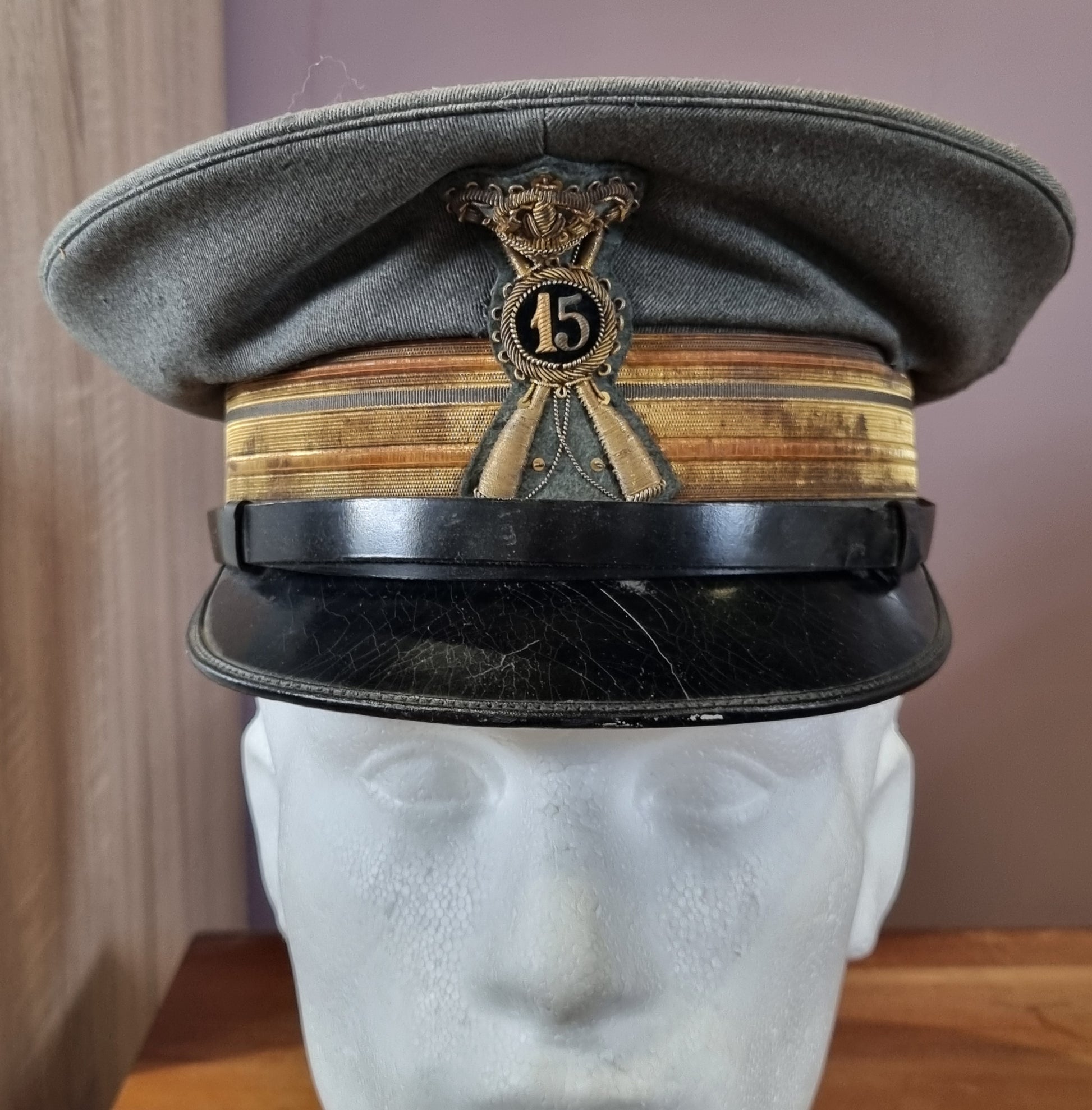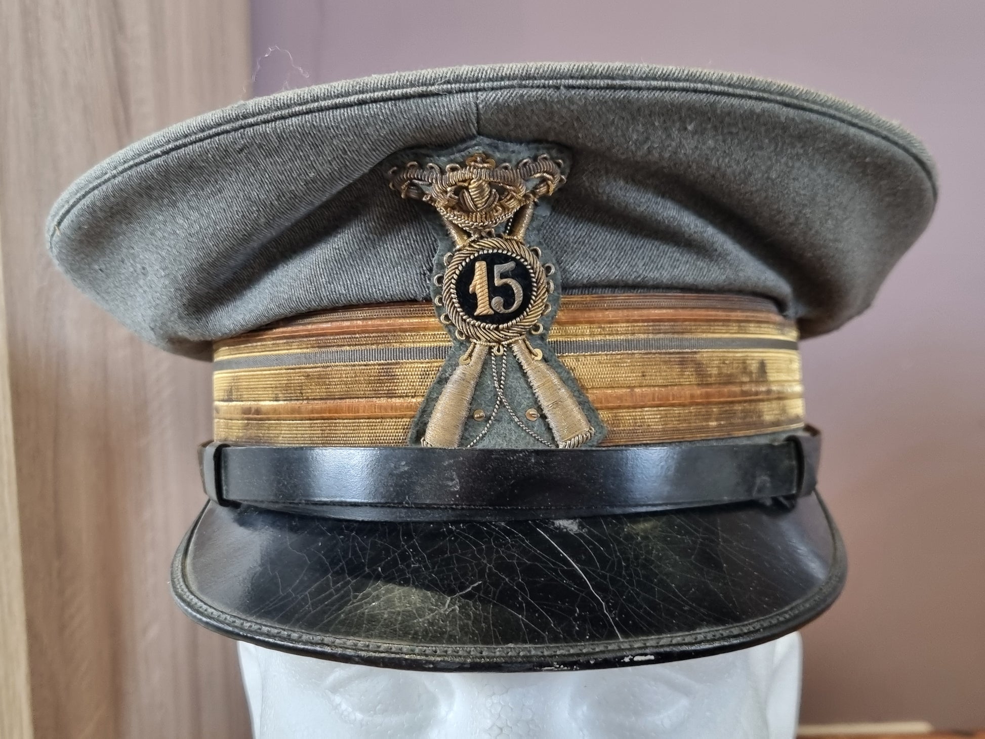 SOLD! WW2 Italian Major’s 15th Infantry Regiment M34 Visor Cap & Box