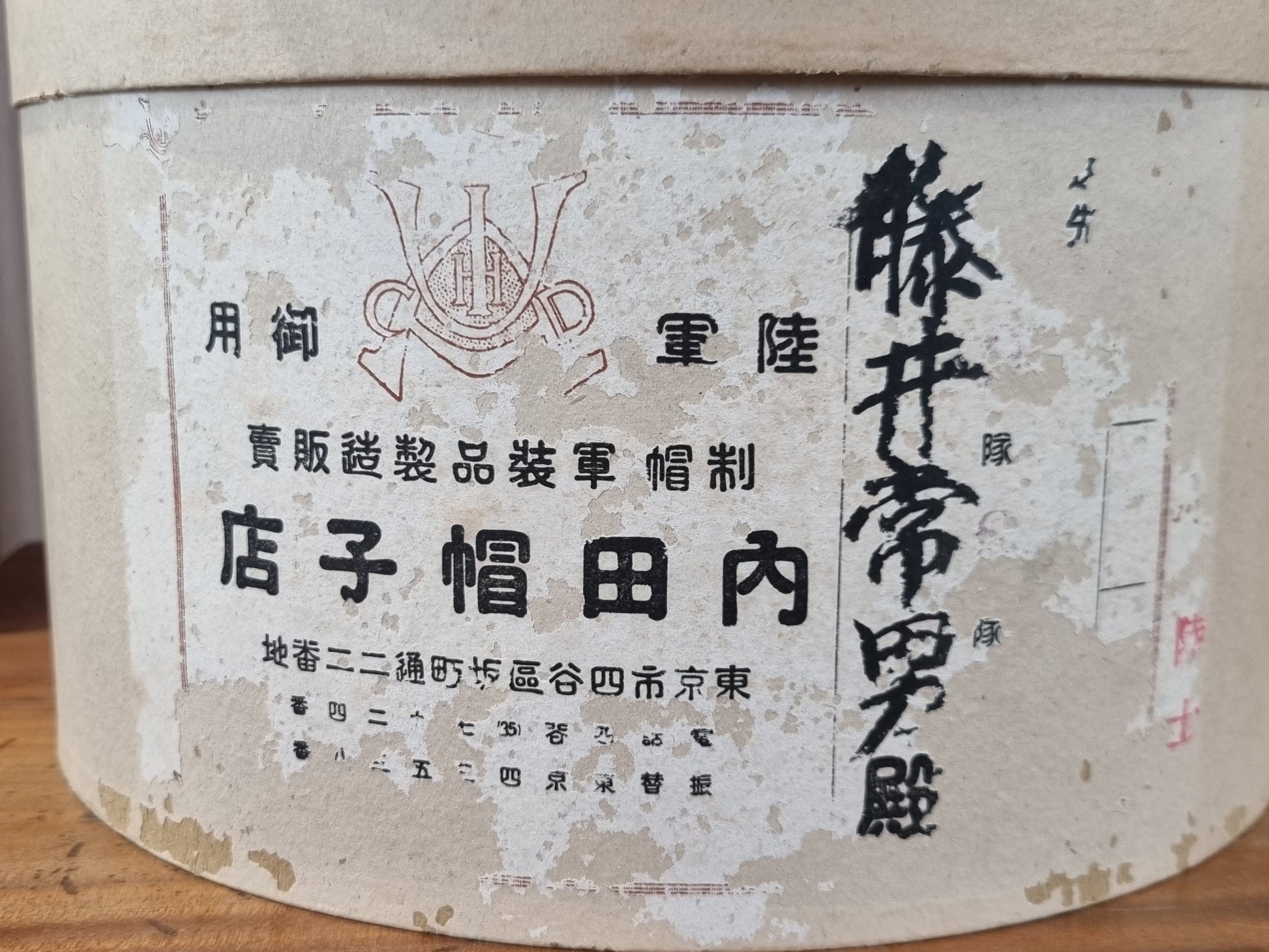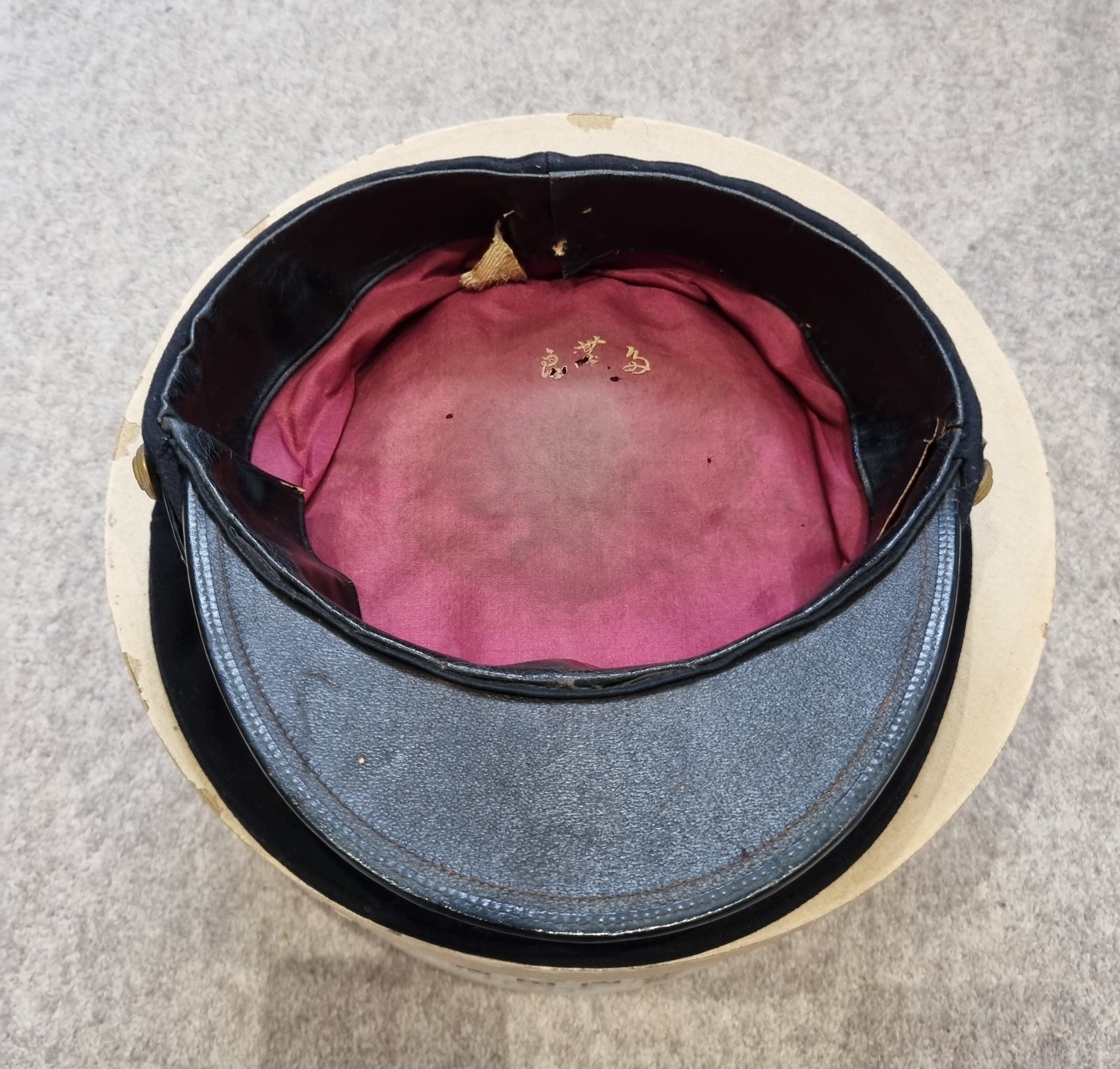 A rare WW2 Japanese Navy Officer’s Visor Cap with Cover & Box, Named