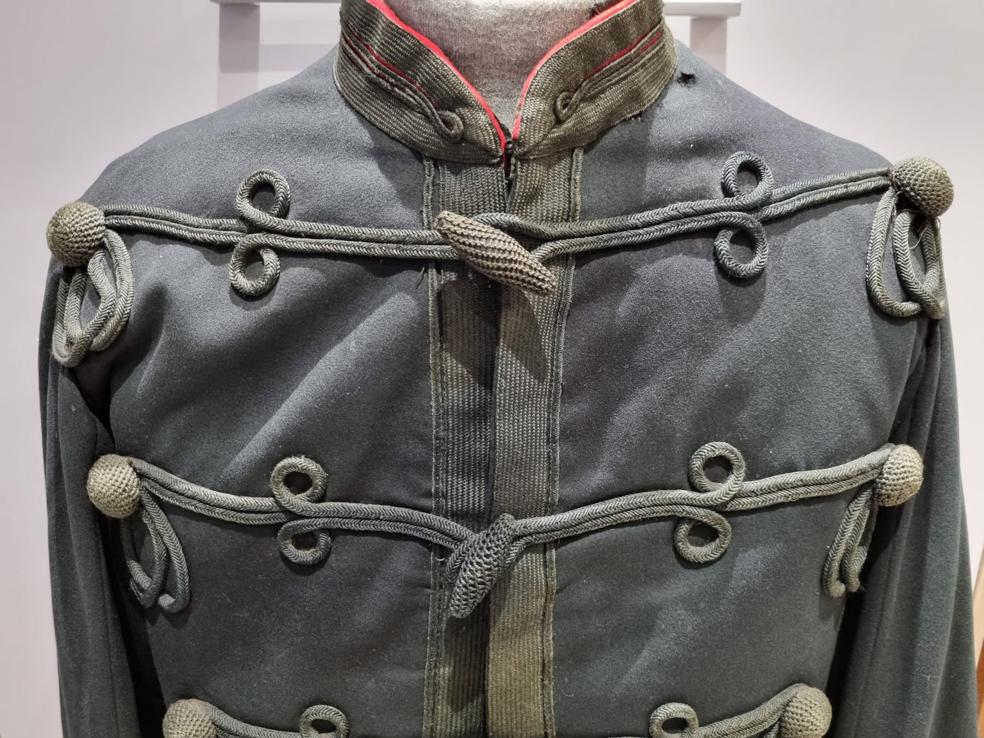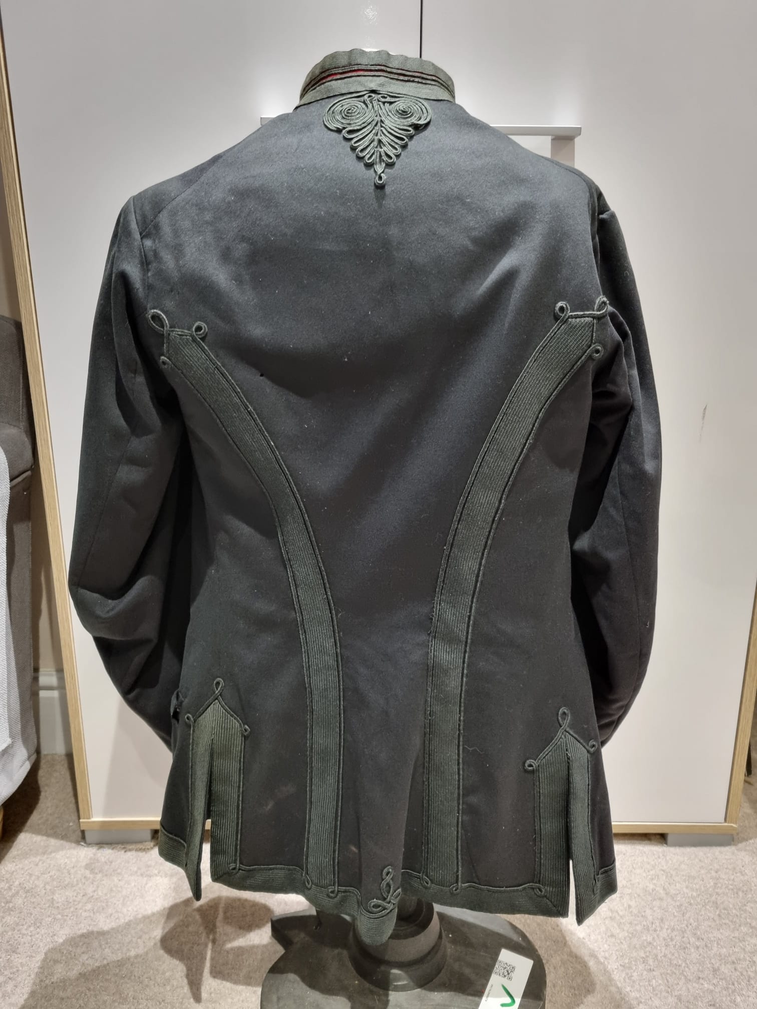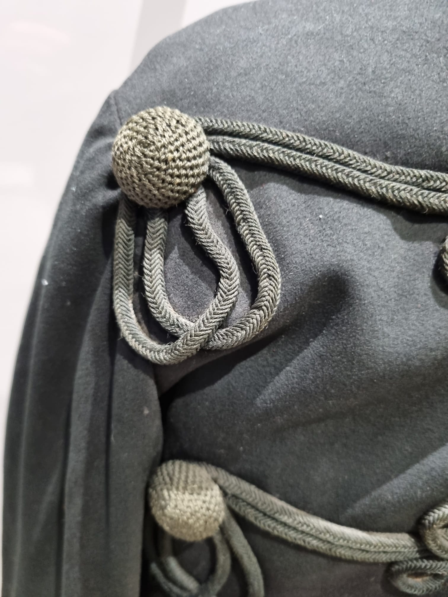 A Victorian King's Royal Rifle Corps officer's frogged jacket and trousers.