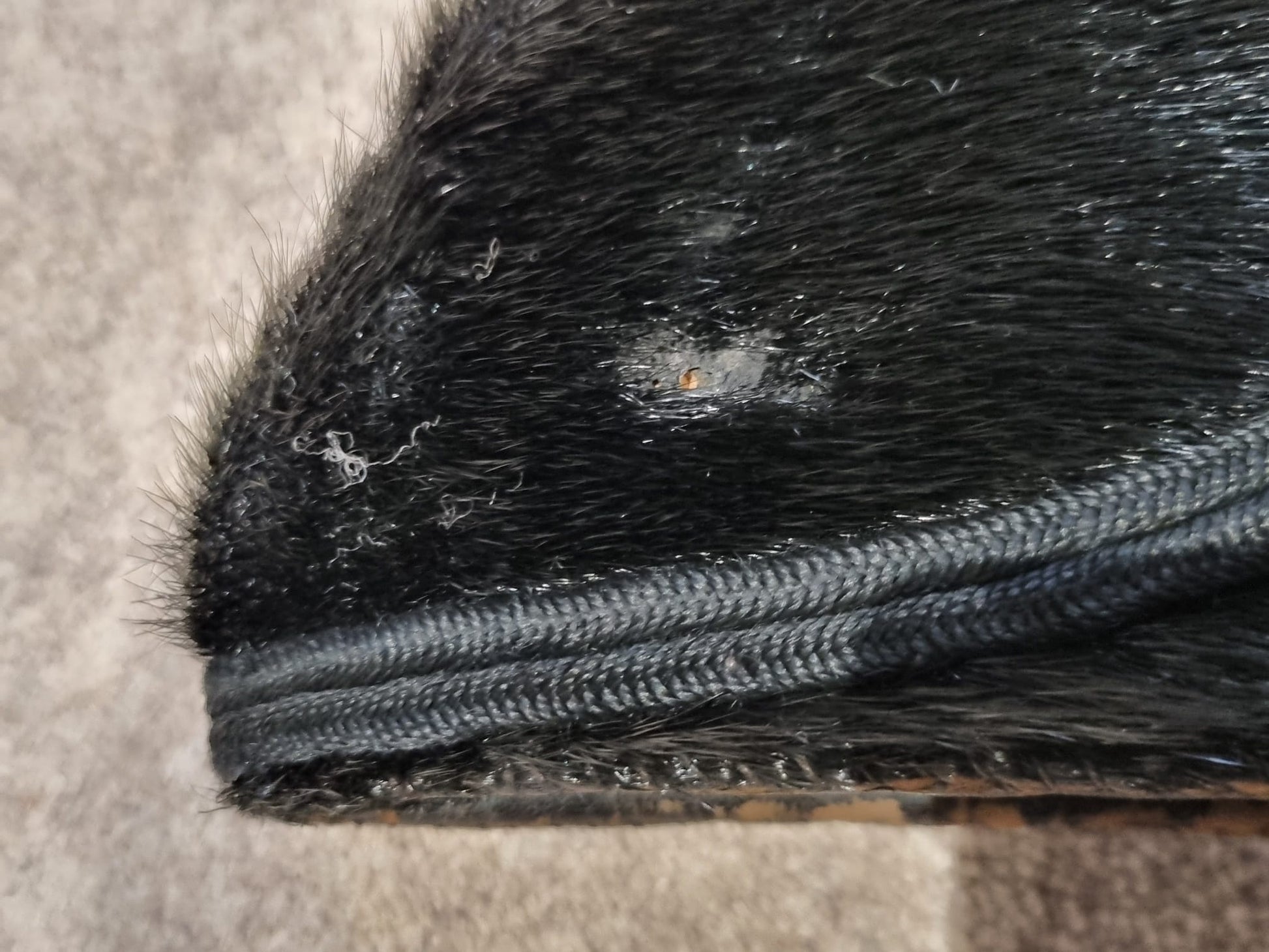 Two small barer patches where moths have attacked it, not too noticeable though.
