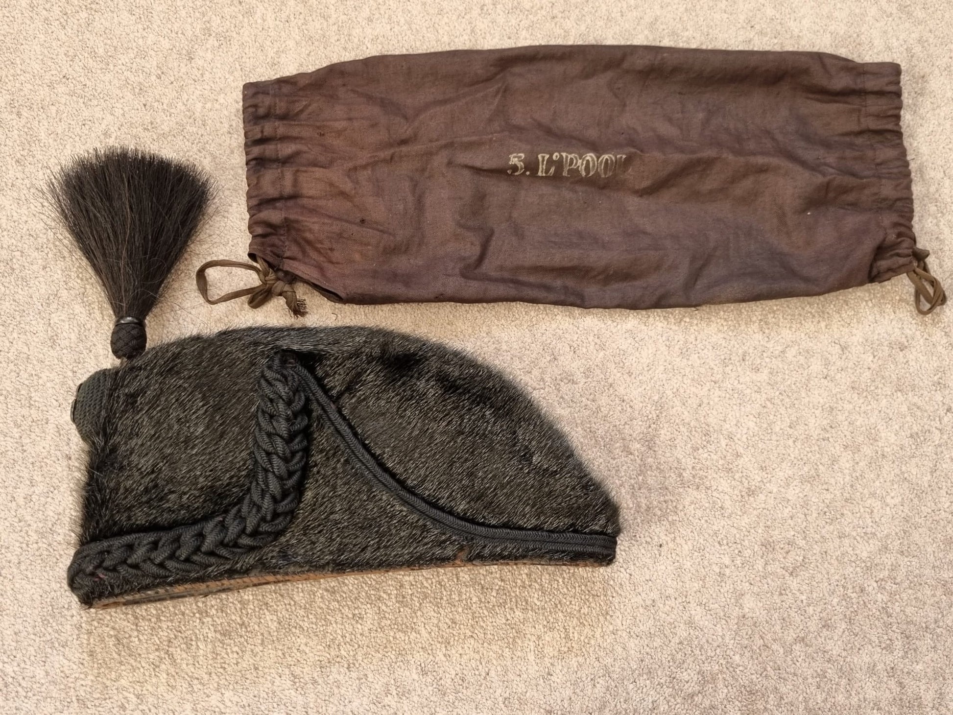 A lovely Pre WW1 British Army other ranks sealskin busby to the 5th (Rifle) Battalion, King's Liverpool Regiment.