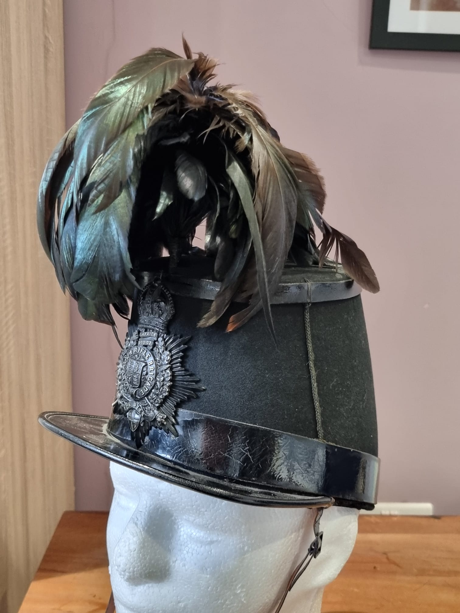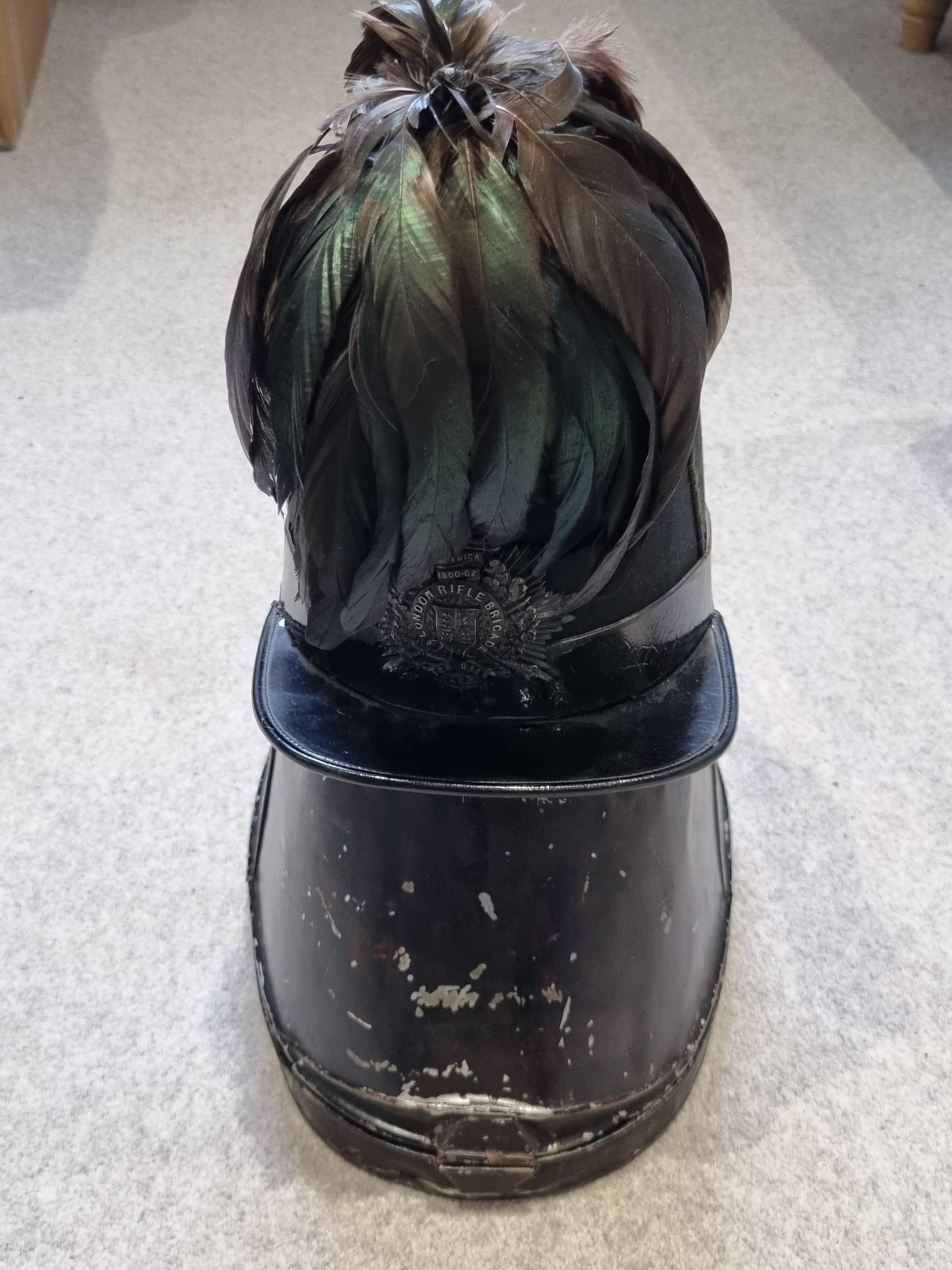A fantastic pre-WW1 (Edwardian) 5th London Rifle Brigade shako with plume and tin.