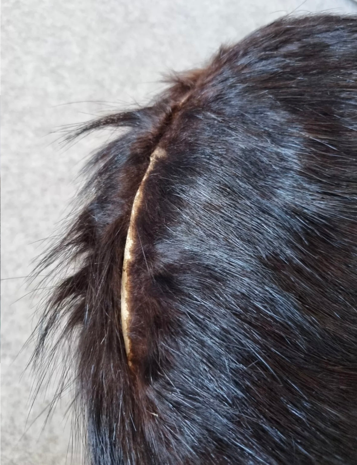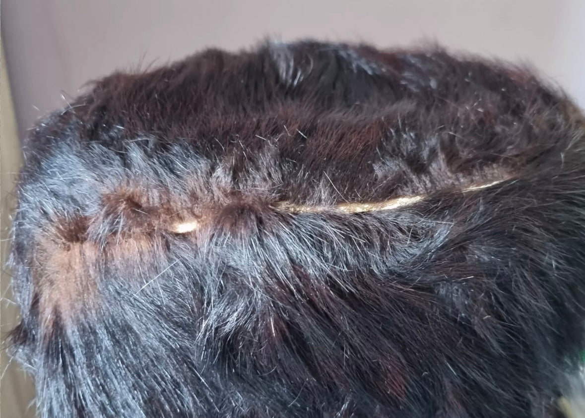 Small amount of fur missing from the top rim.