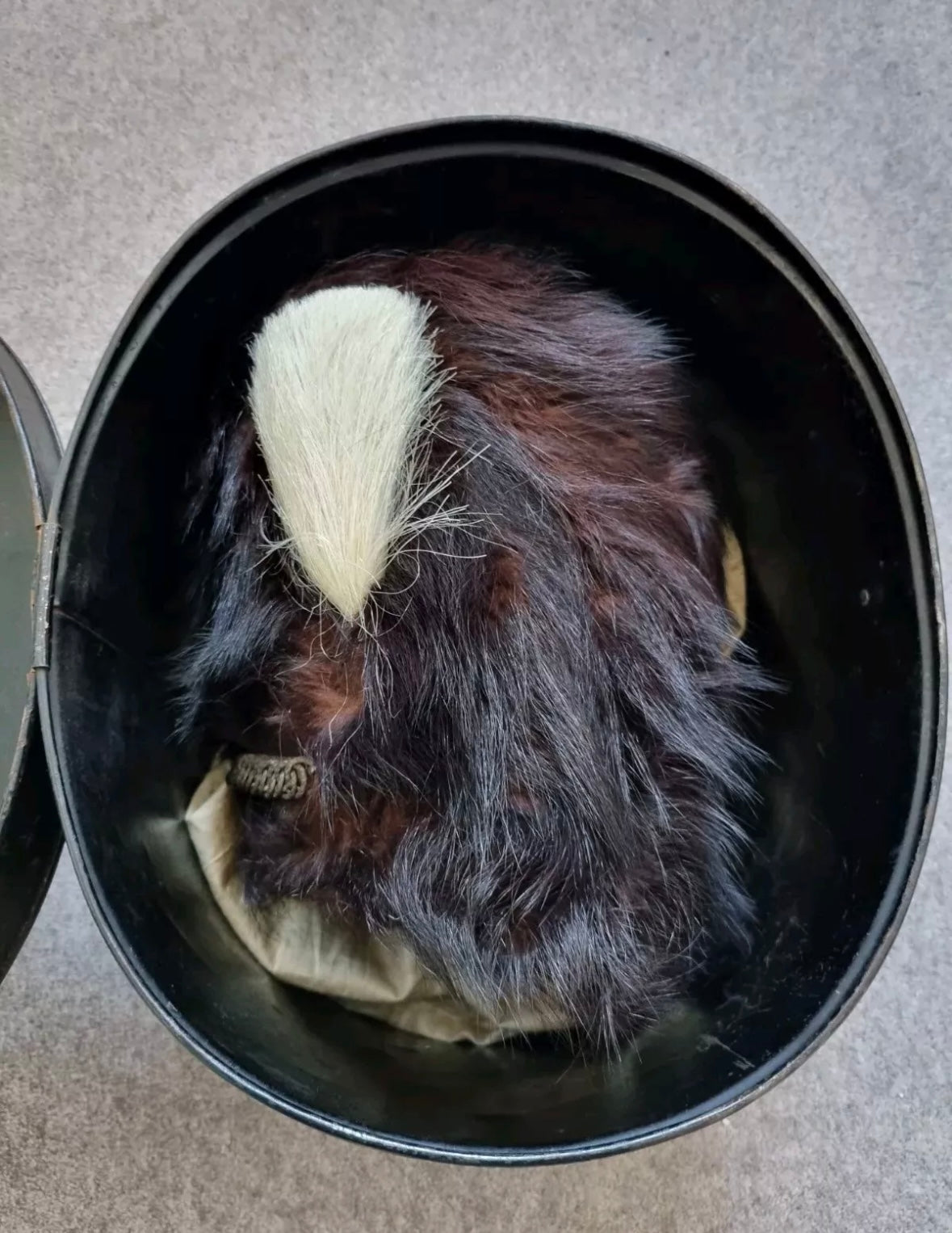 Something really special, an incredibly rare Victorian bearskin busby for the 3rd Militia Battalion, Durham Fusiliers, with its matching tin.