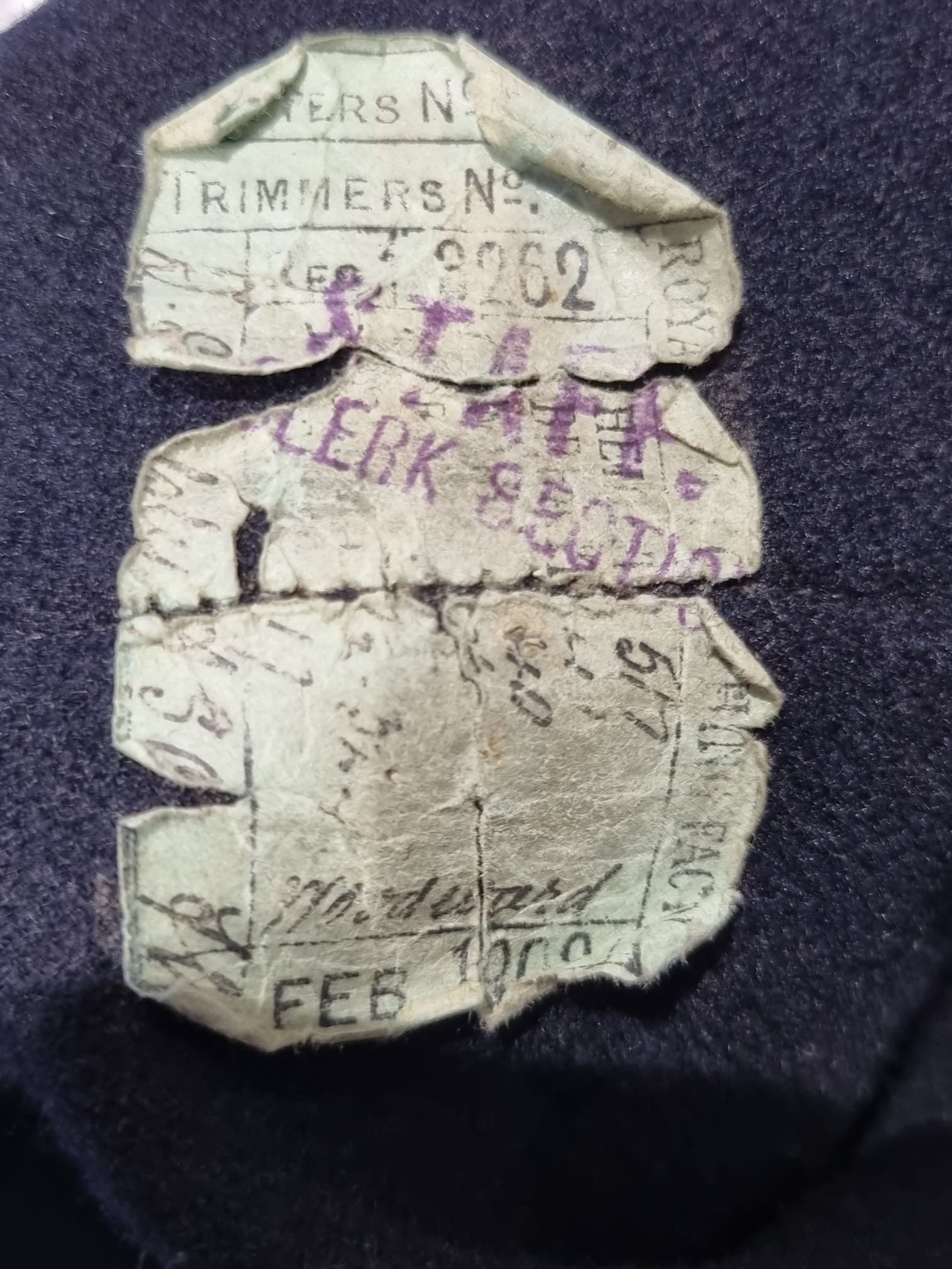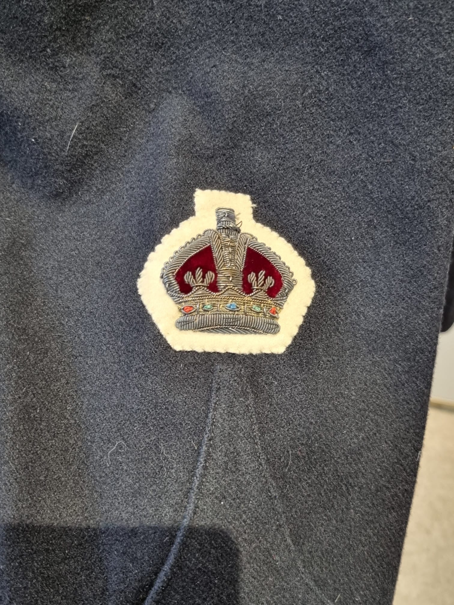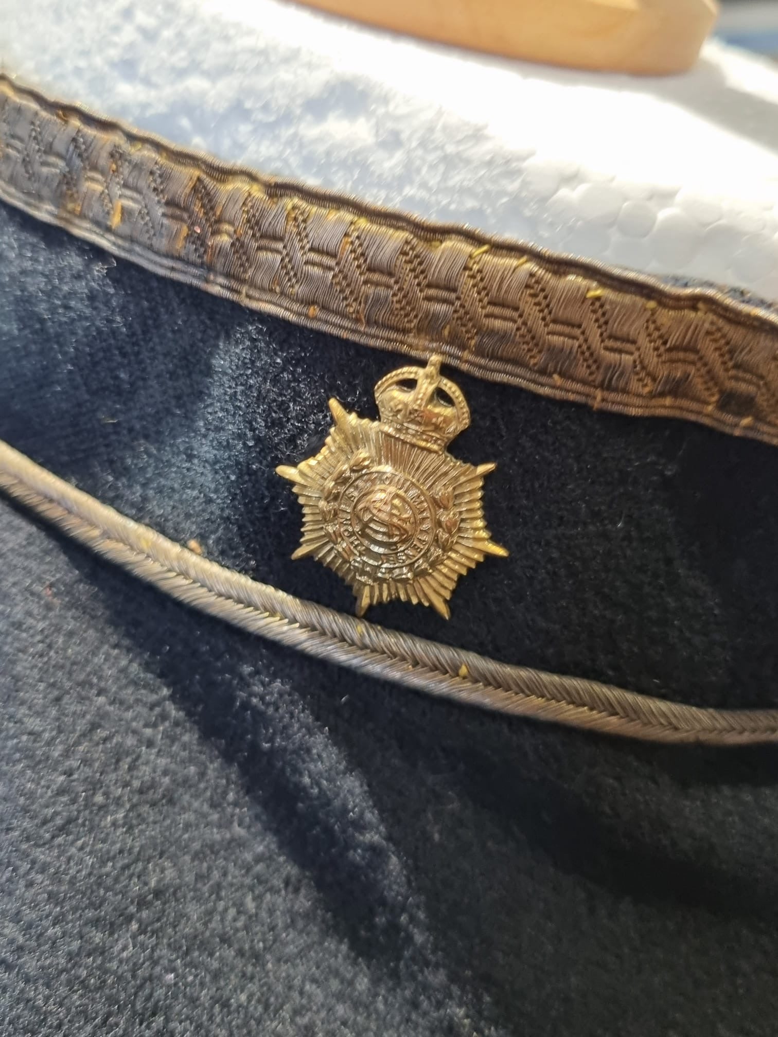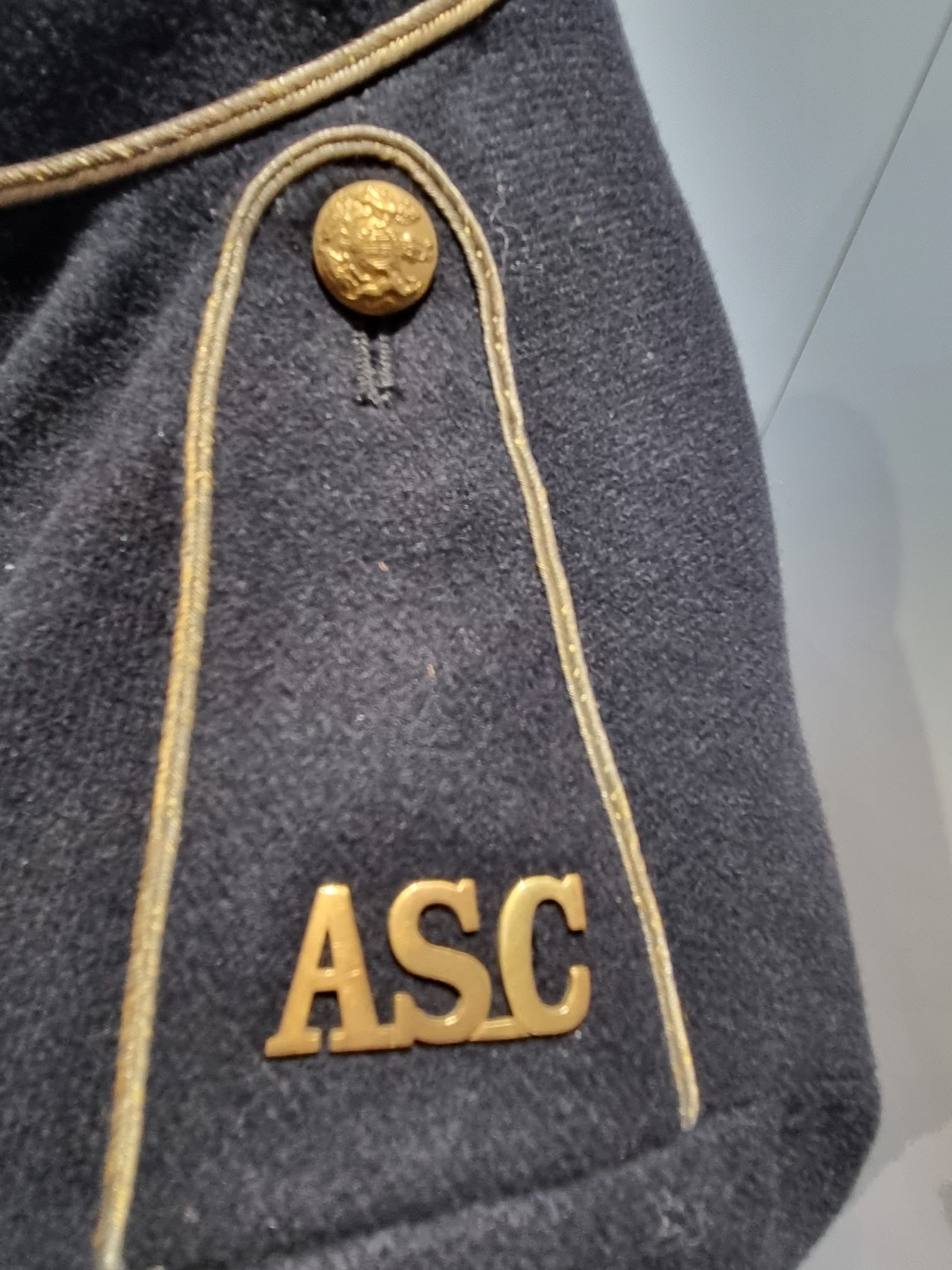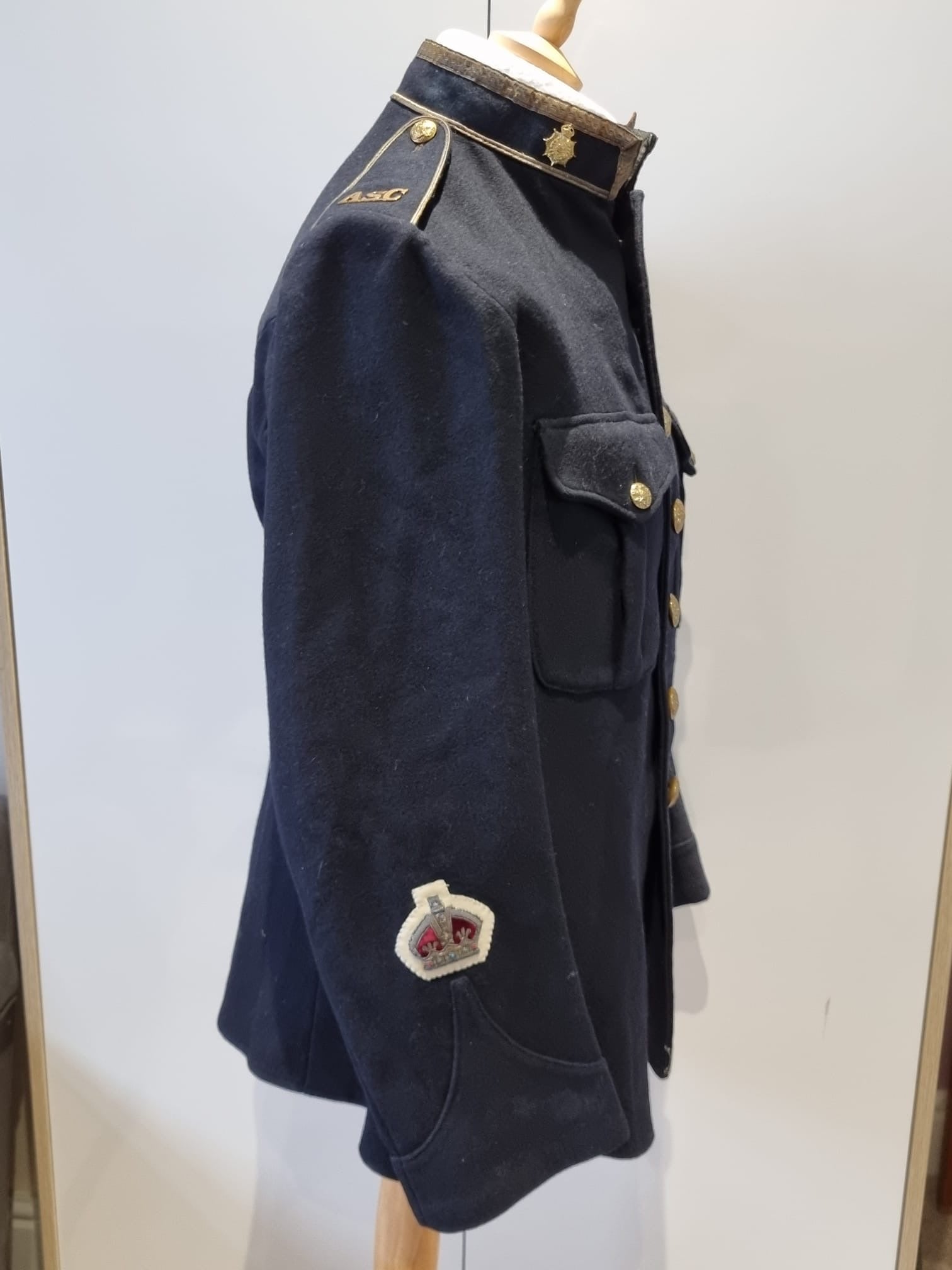Also with brass Army Service Corps shoulder titles, Warrant officer bullion wire king’s crown sleeve and brocaded collar and with KC brass ASC collar badges
