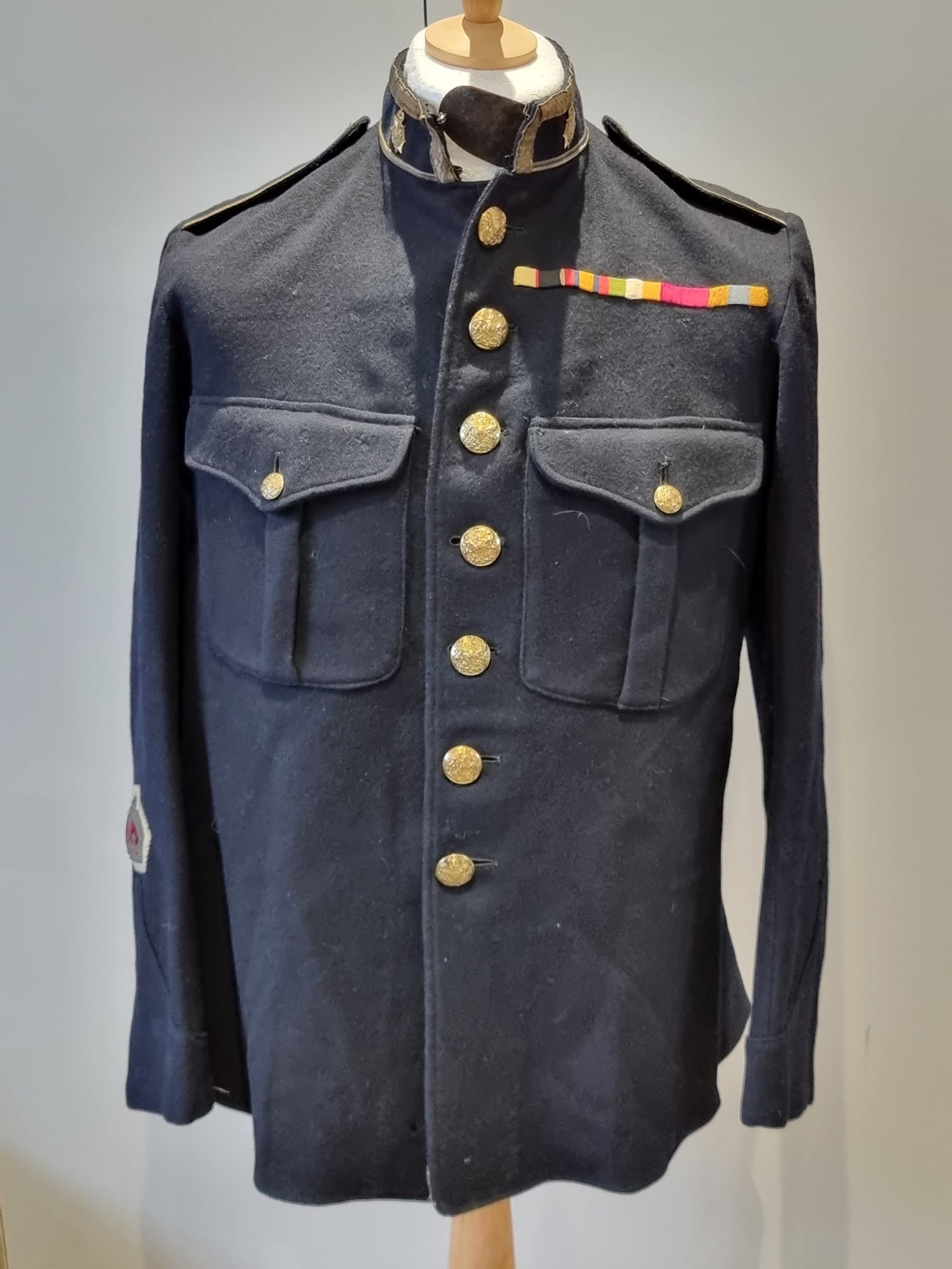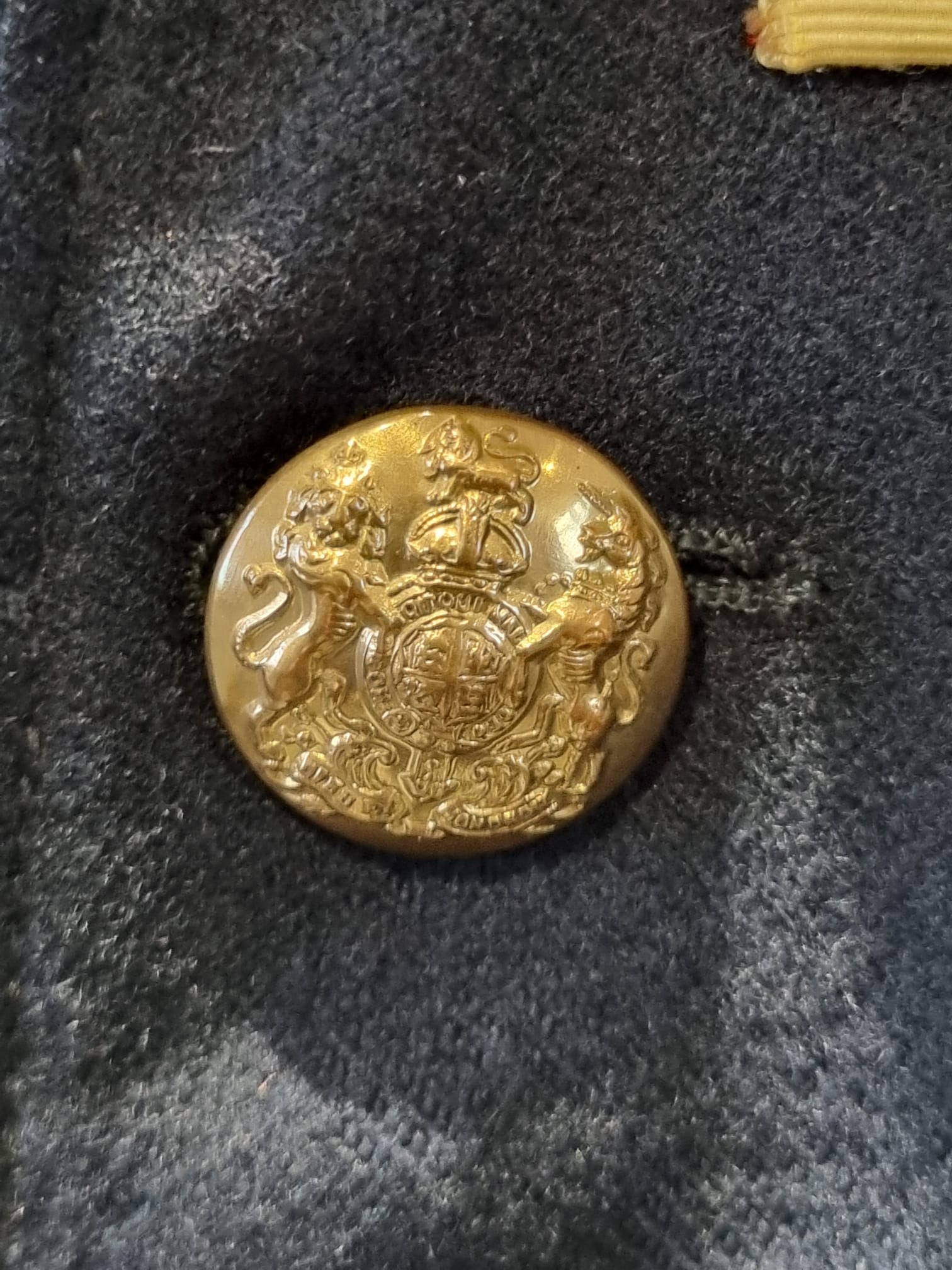 In great condition for its age with only 2 small moth holes towards the bottom of the jacket. All King’s crown gilt general service buttons present.