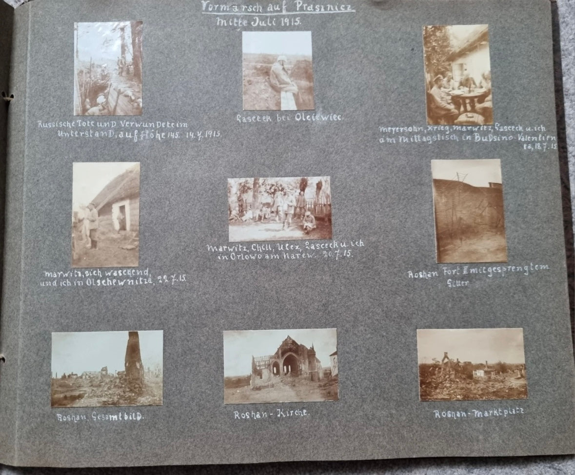 A rare WW1 German Army Eastern Front Soldier's Photo Album - 146 Photos, including 8 loose + the Ausweis of the owner - Max Fraenkel