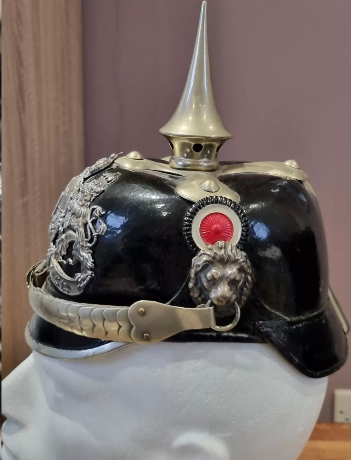 A restored WW1 Imperial German (Bavarian) Police pickelhaube.