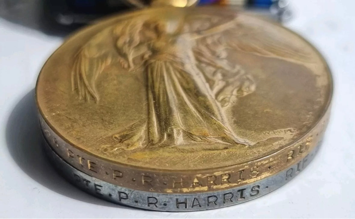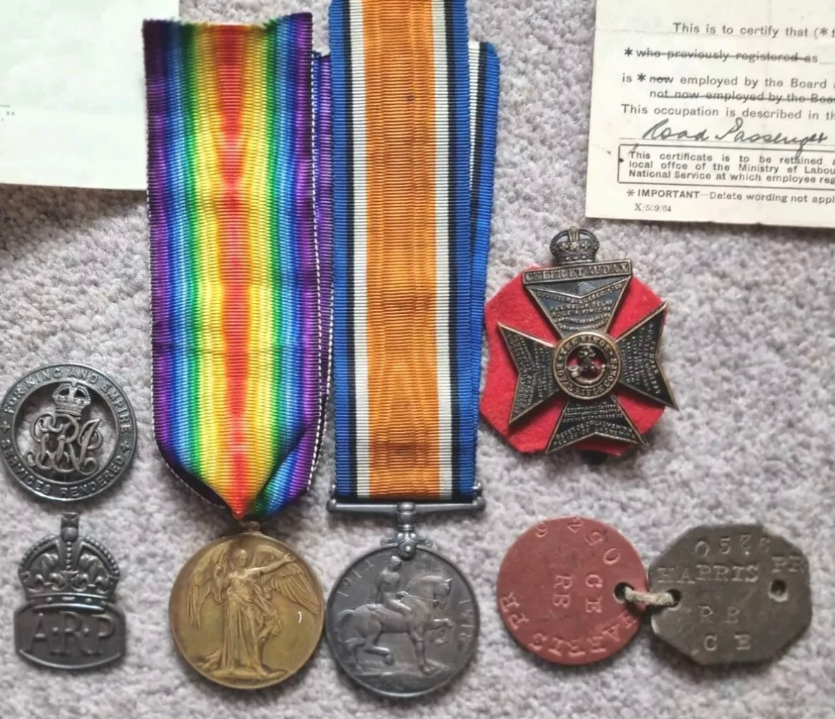 A fantastic WW1 and WW2 set to Percy Robert Harris who served in the 2nd Battalion, Rifle Brigade WW1 and in the Home Guard/London Transport division of the ARP in WW2.