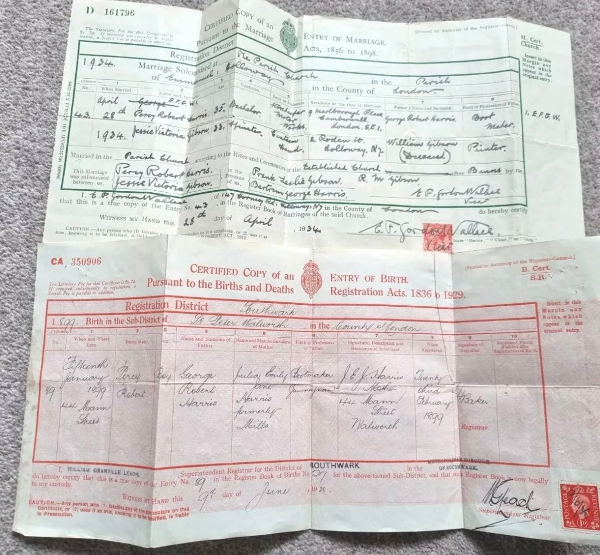 - Birth and Marriage certificates
