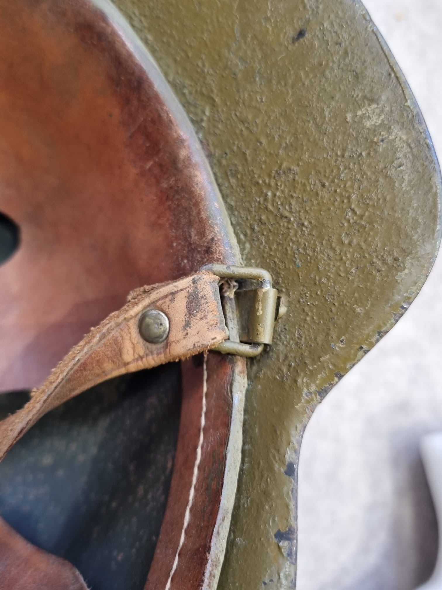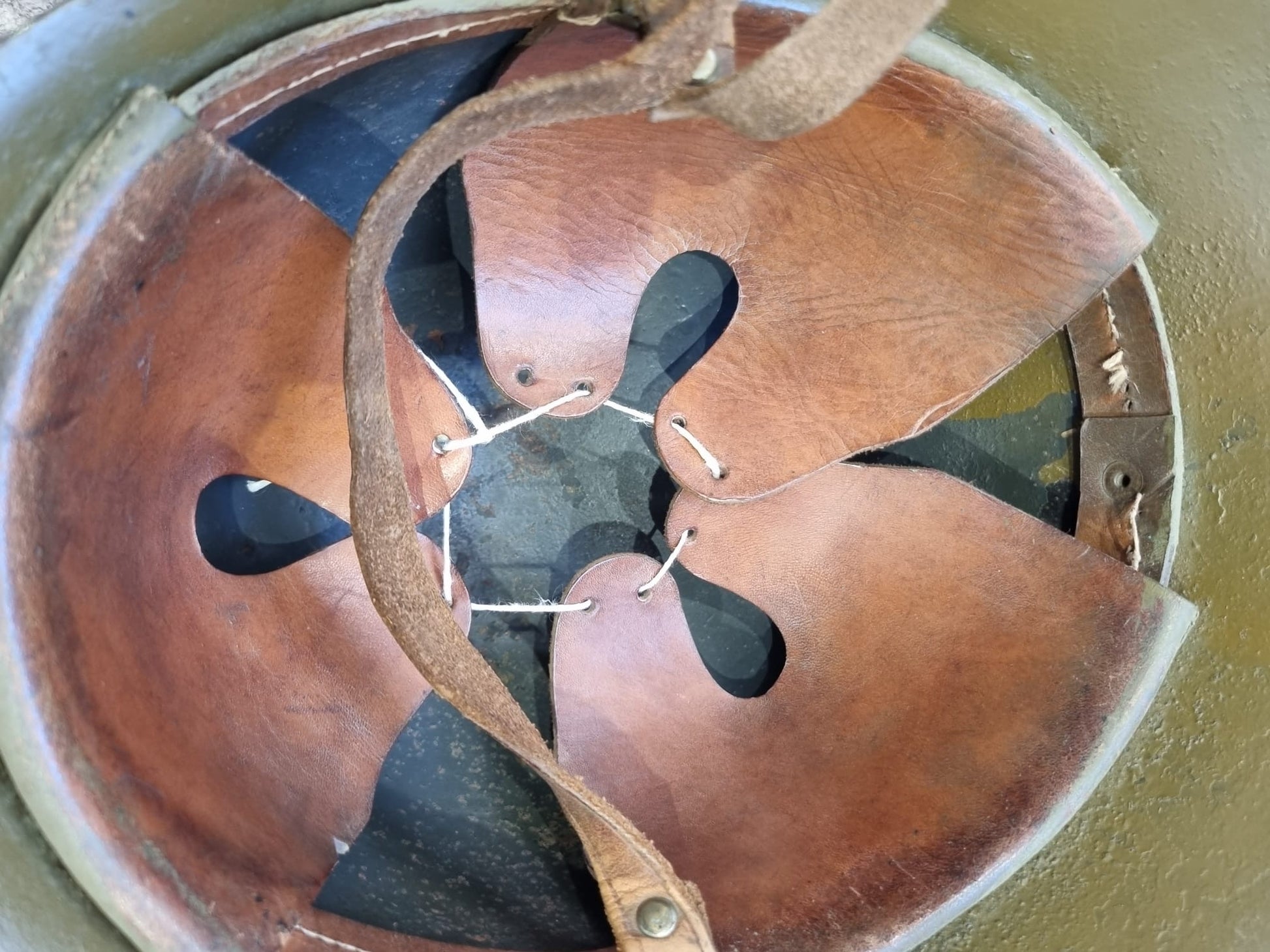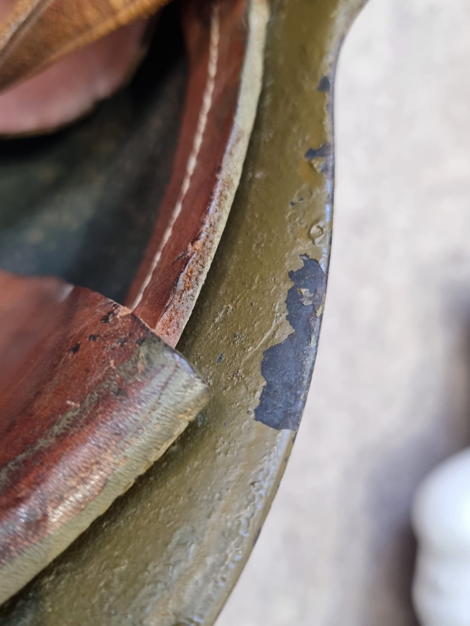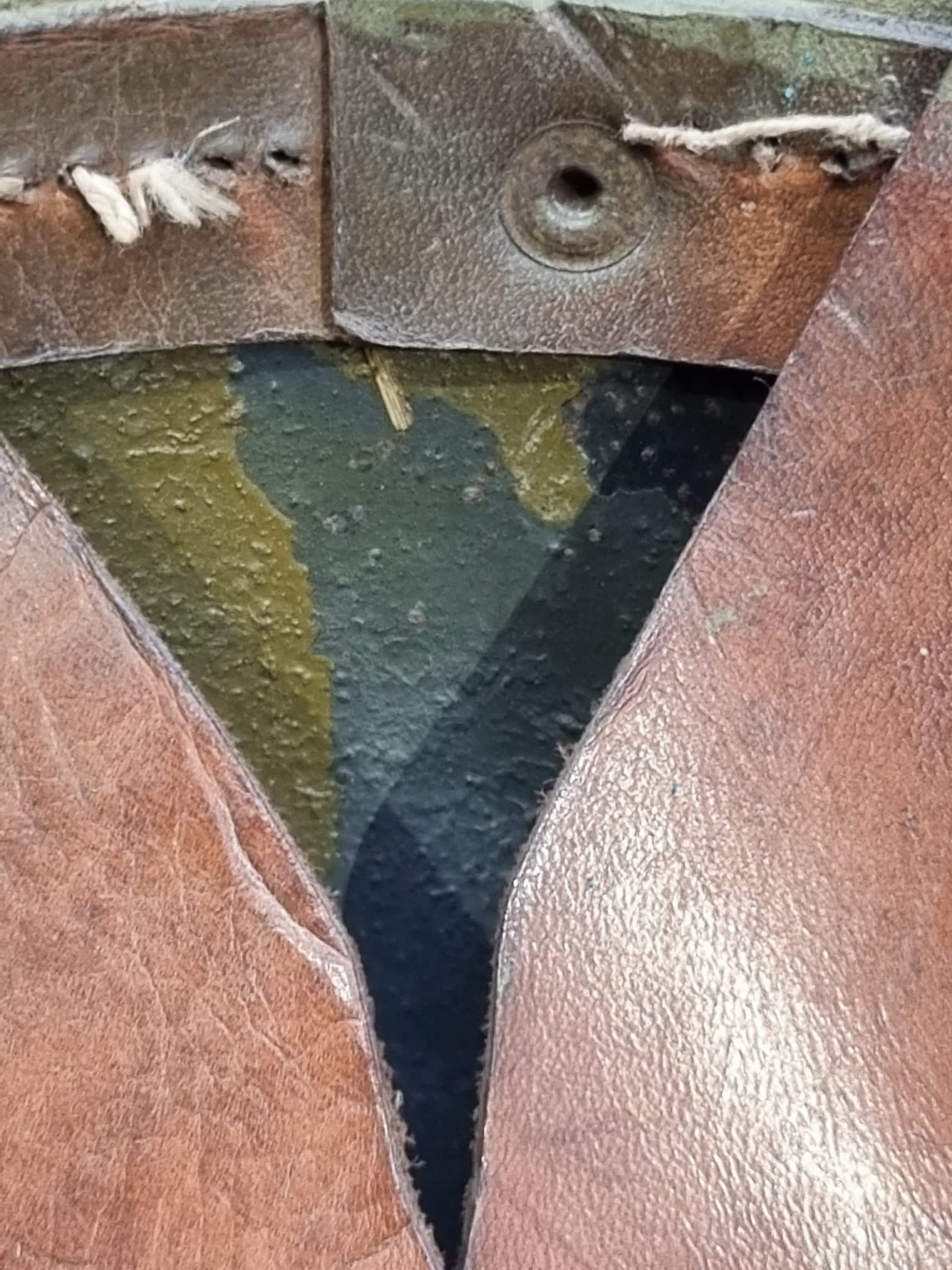 The liner appears to have been refitted in 1943, with civil war period 1st pattern rivets having been filled in and a 2nd pattern liner put in. Although it seems it did not receive new paint or a badge holder at the same time.