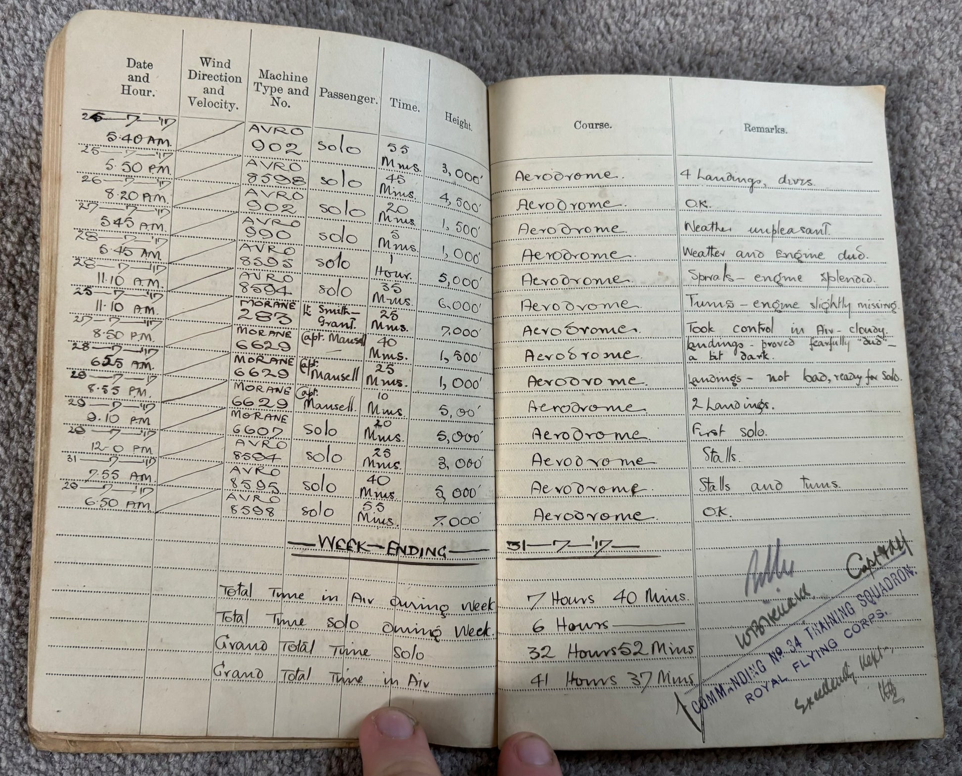 SOLD! Historically significant RFC Logbook Group to South African Pilot, Lieutenant John Arnold Spilhaus (KIA), 70 Squadron