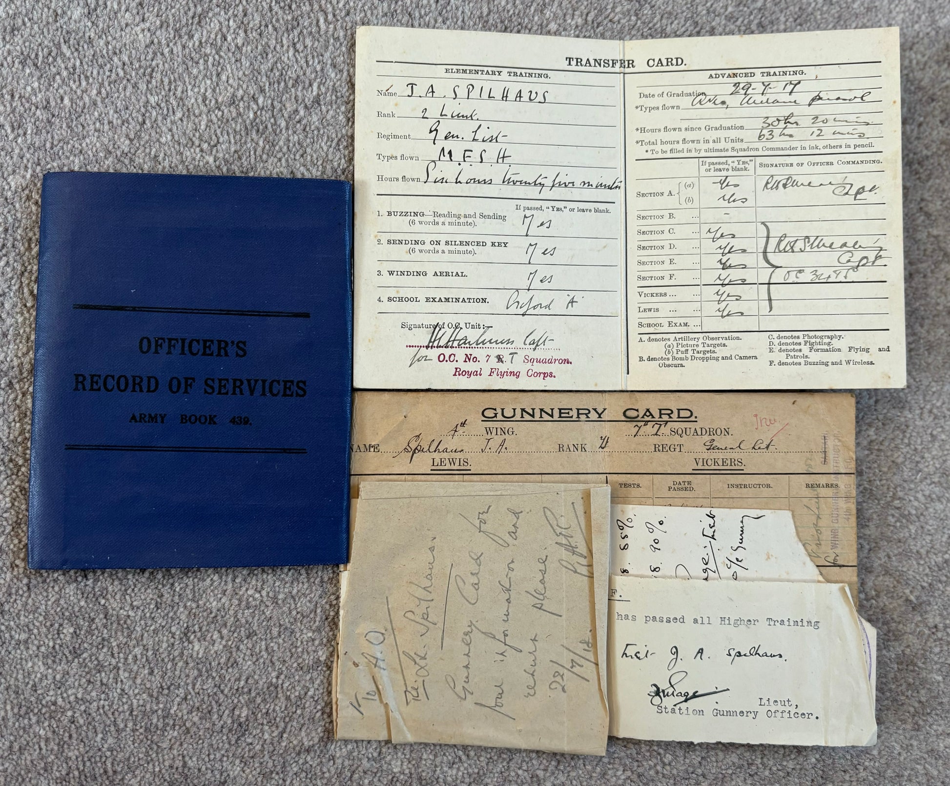 · Jack’s RFC Officer’s Record of Service Book, RFC Training Brigade Transfer Card and Gunnery Card, all of which are complete, and written in.