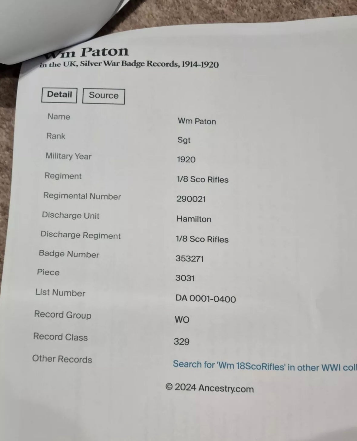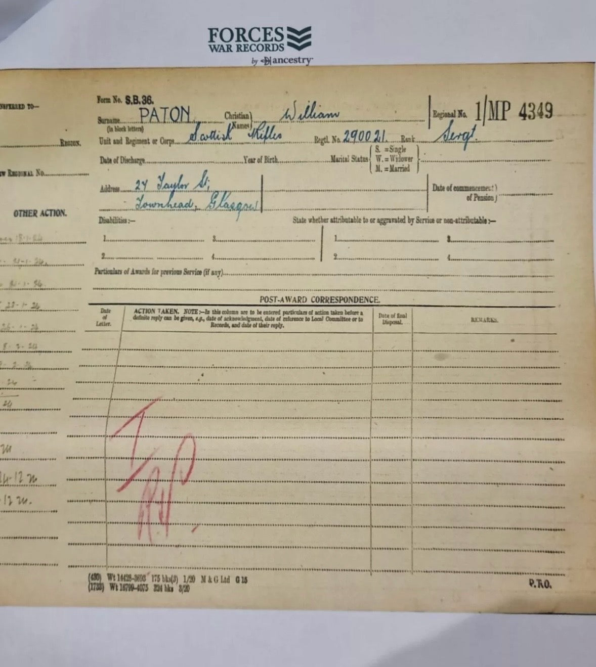 Sgt William Paton (7923, 290021)