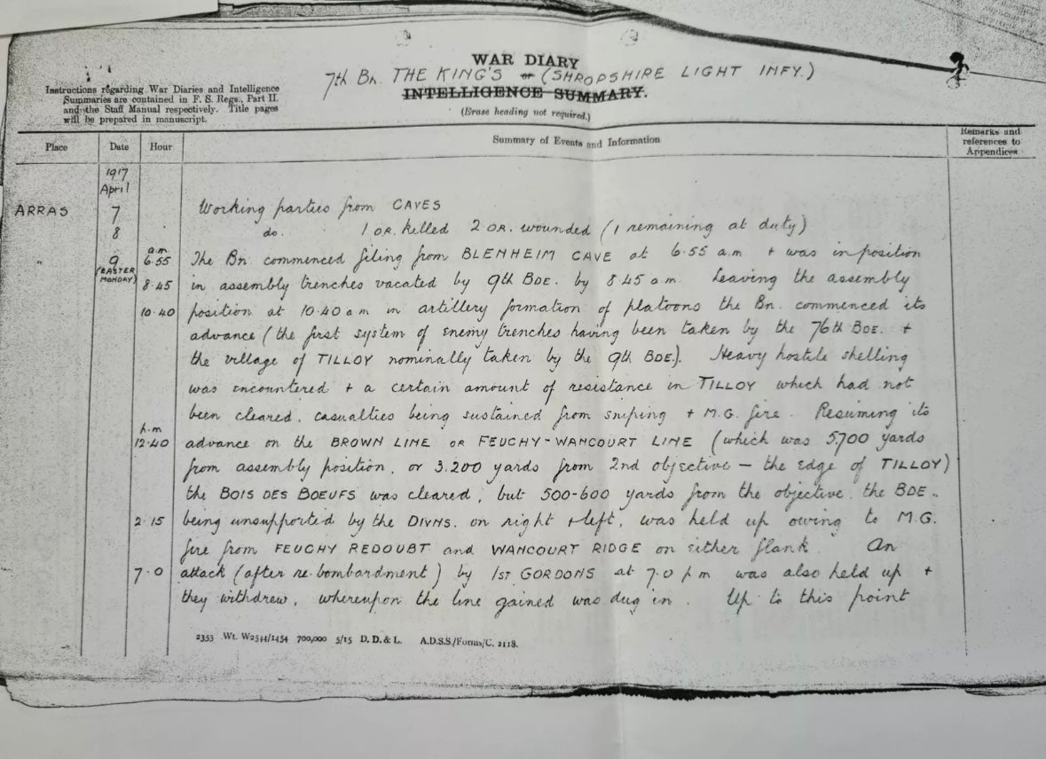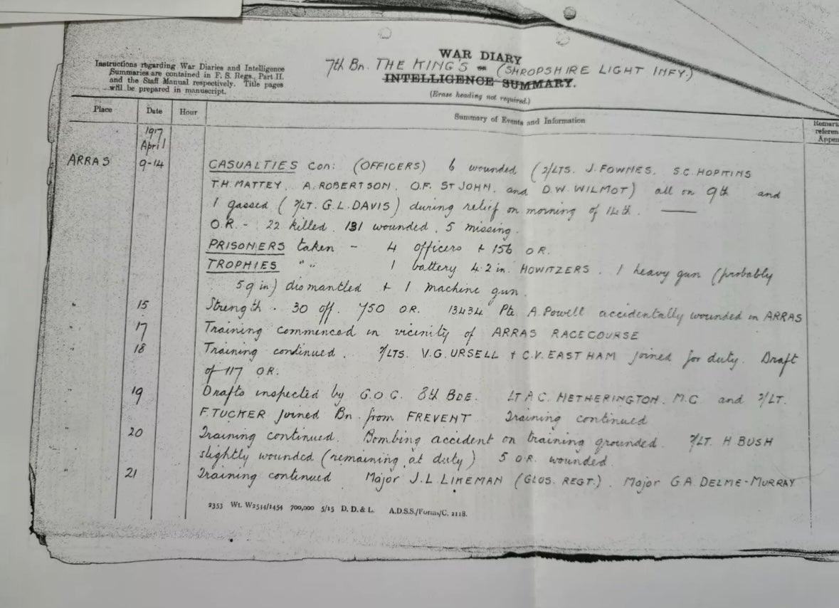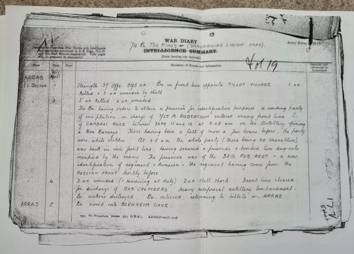 - 24561 Pte 7th Btn King's Shropshire Light Infantry during WW1 until 1917