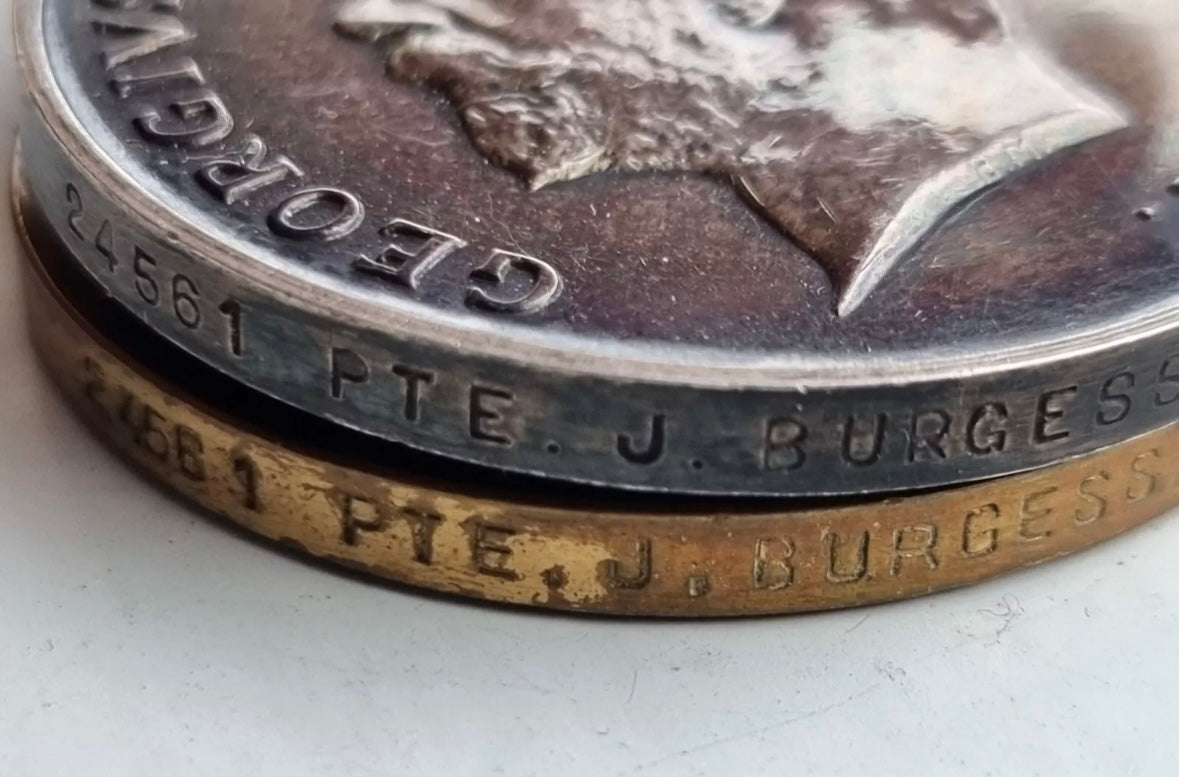 A 2-bar Queen’s South Africa Medal & WW1 Medal Group to Joseph Burgess, Younghusbands Horse & Kings Shropshire Light Infantry- wounded at Arras in WW1.