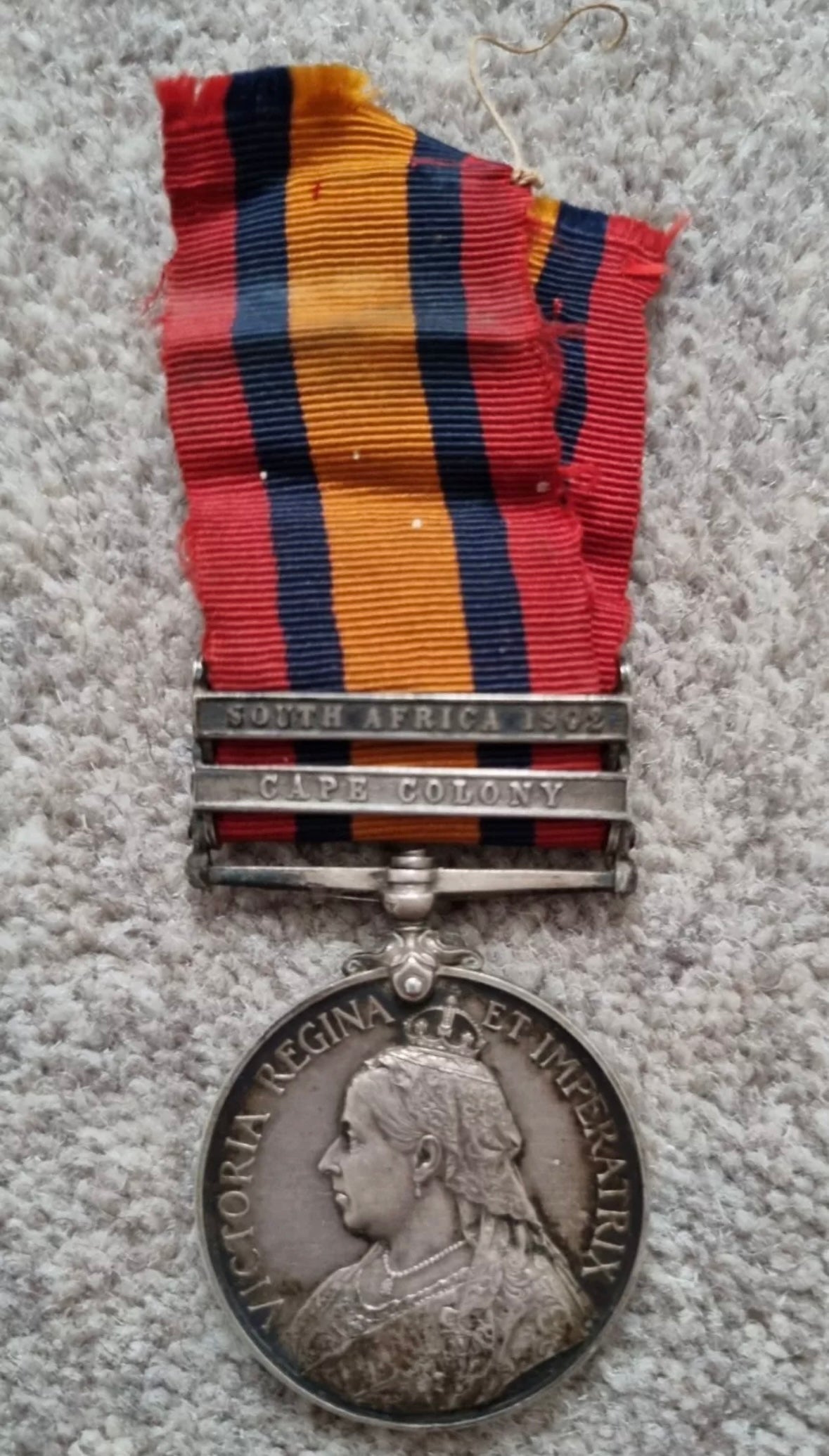 - Queen's South Africa Medal with Cape Colony and South Africa 1902 clasps