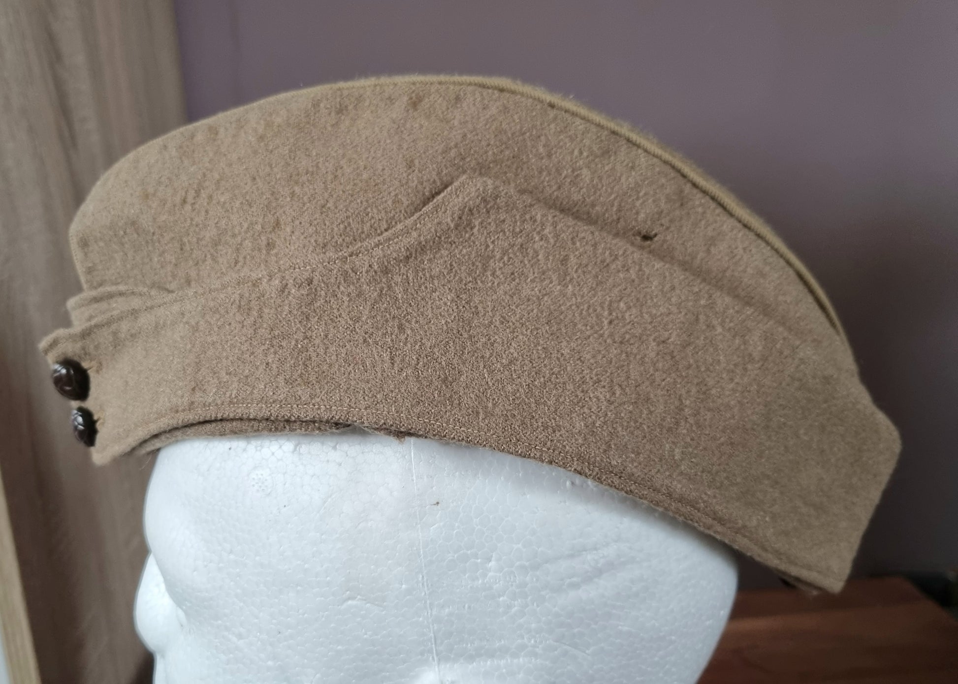 The sidecap appears private purchase and made from a similar heavy wool fabric to the trousers. With leather football buttons.
